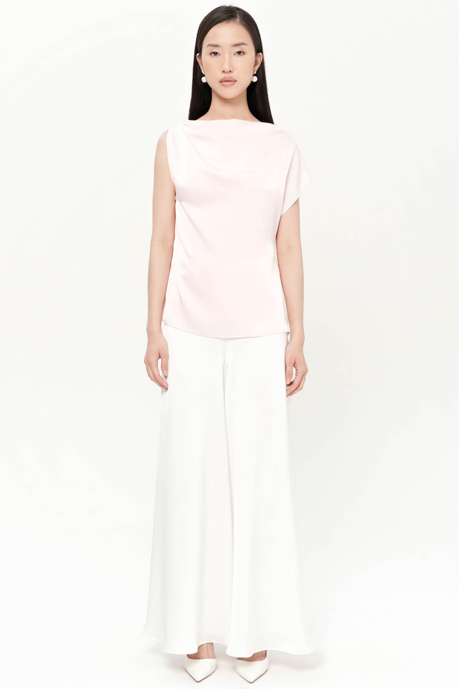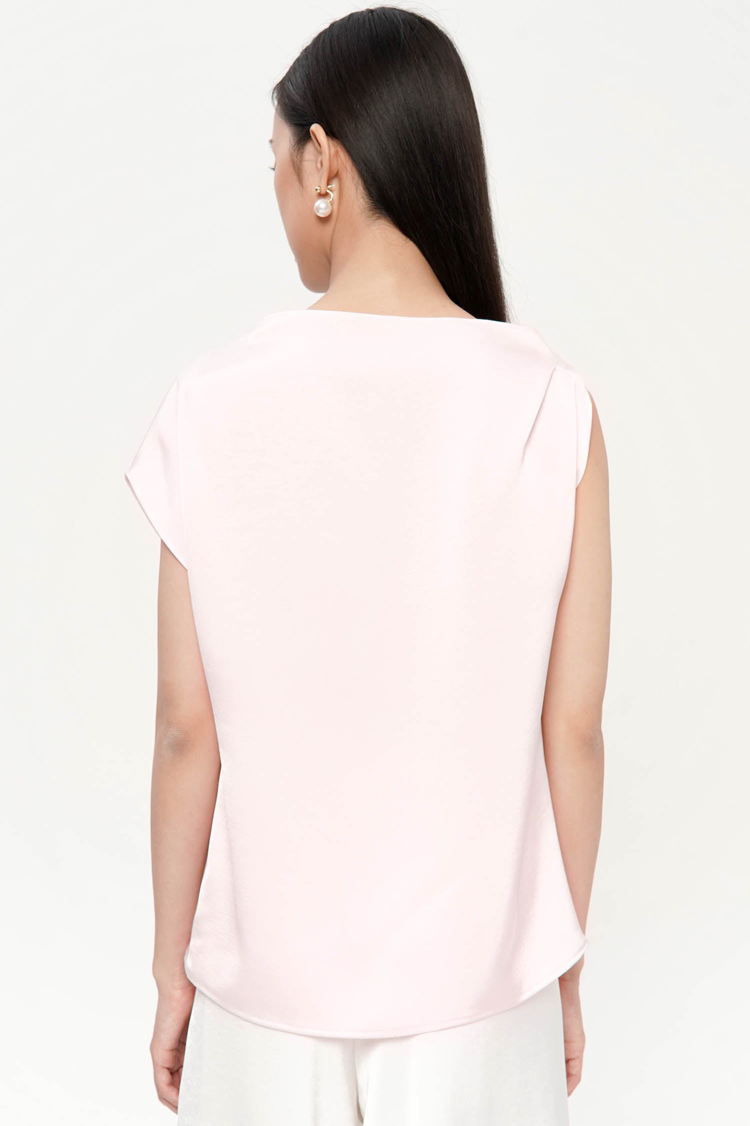 The Ambrosia Drape Top embodies understated elegance with its fluid silhouette and refined draping, designed to elevate both day and evening ensembles. Crafted from luxurious satin silk, the fabric glides effortlessly over the body, offering a soft sheen and a graceful, flattering fall. The asymmetrical drape detail along the neckline creates a sculptural yet feminine look, while the relaxed cap sleeves add a touch of modern sophistication. Available in delicate pink, serene blue, and rich cocoa, each shade enhances the top’s timeless appeal, making it a versatile statement piece for those who appreciate quiet luxury and polished style.