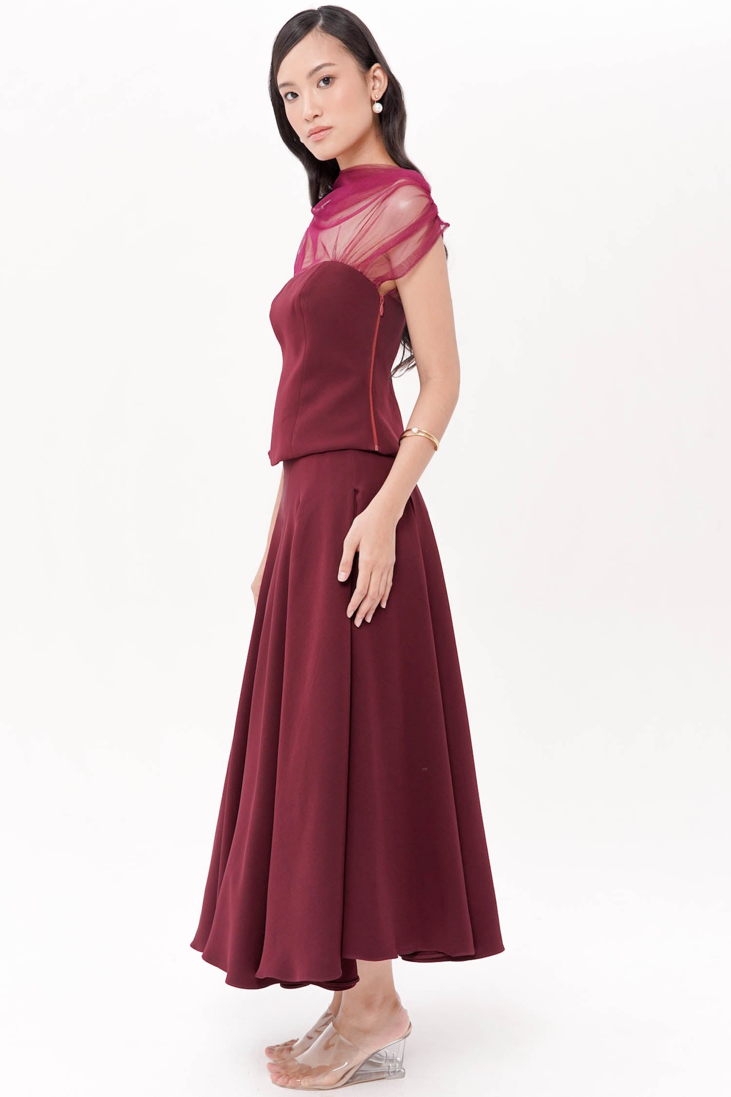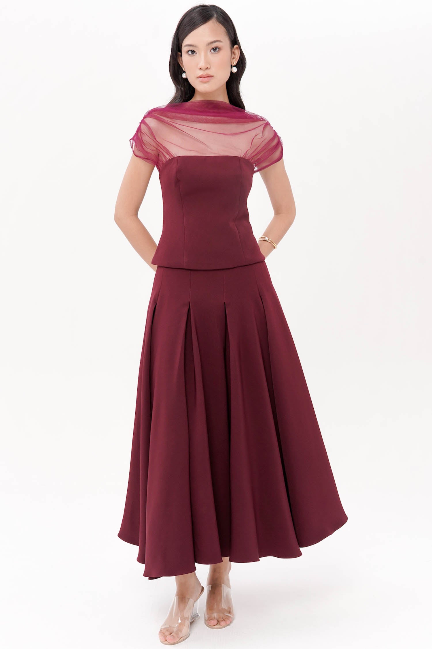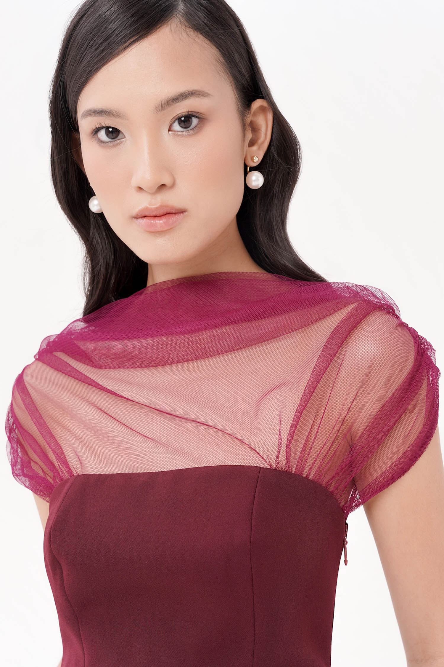 AMELLE MIX TULLE TOP The Amelle Mix Tulle Top captivates with quiet drama, blending soft structure and ethereal charm...