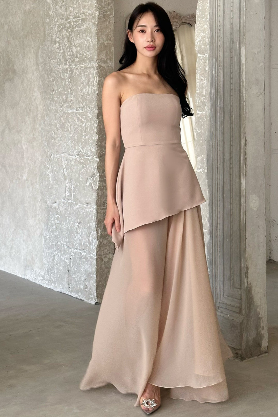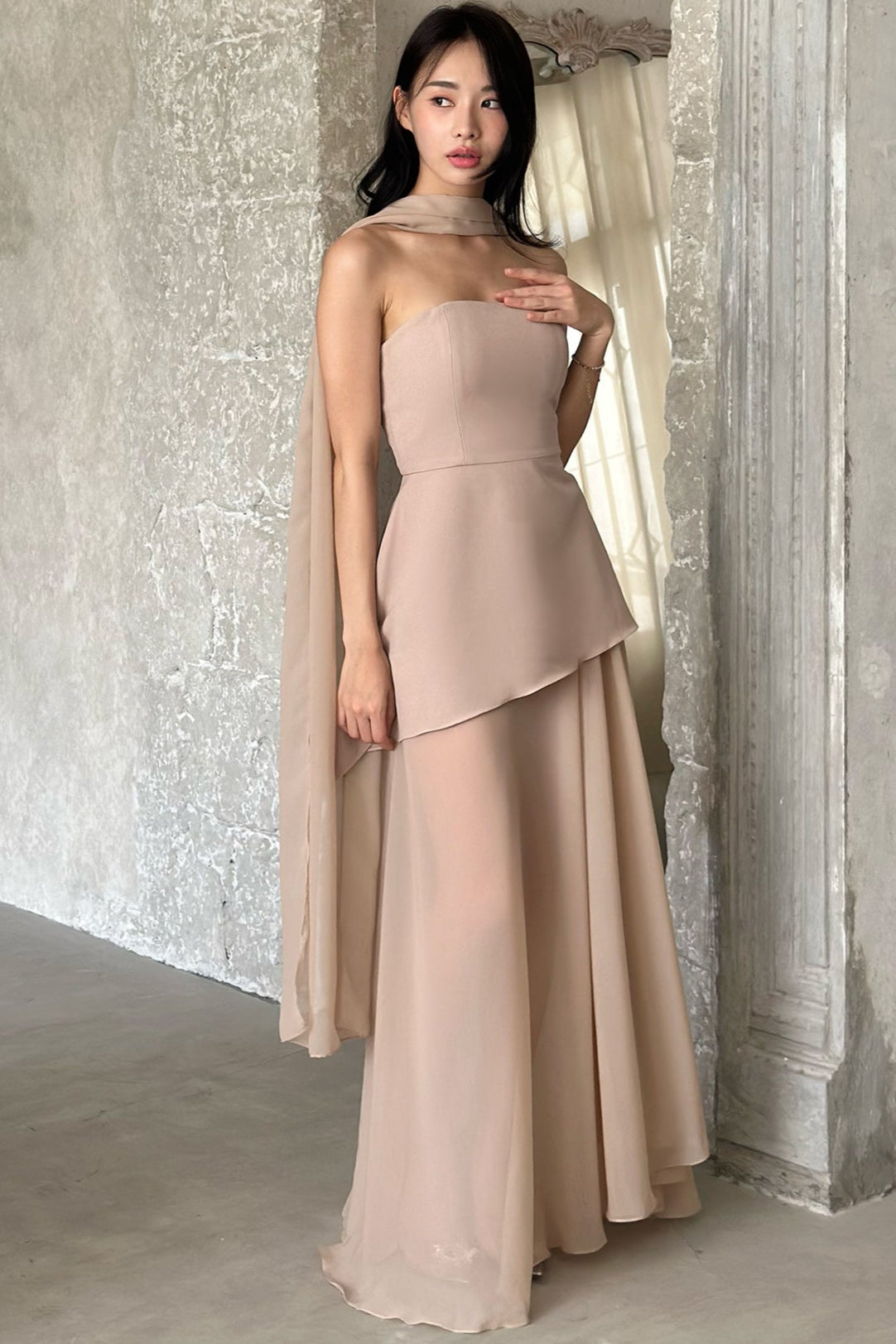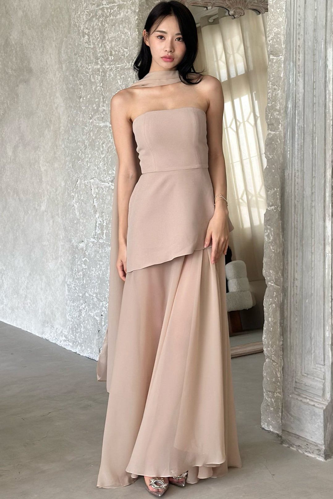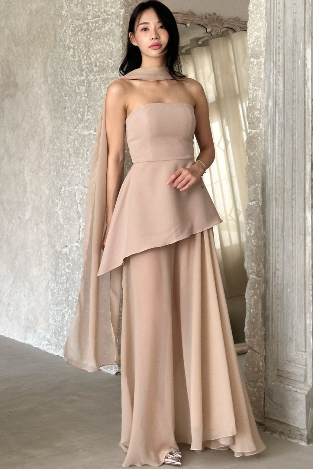 The Bea Set With Scarf in Nude offers a refined and effortless look perfect for weddings and special occasions. This elegant set includes a matching scarf that adds a subtle, graceful detail, making it an ideal choice for those seeking simple sophistication on their memorable day.
