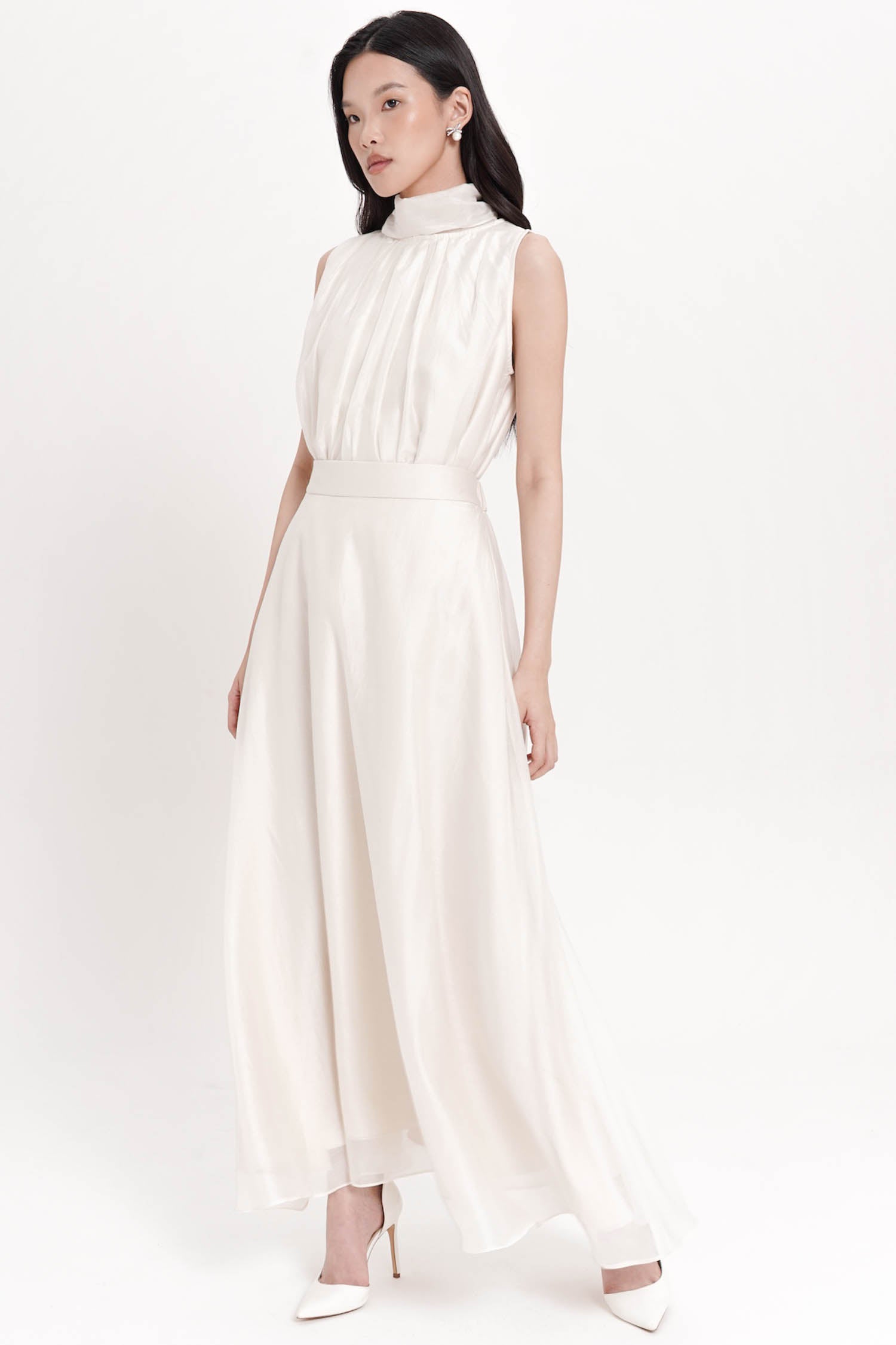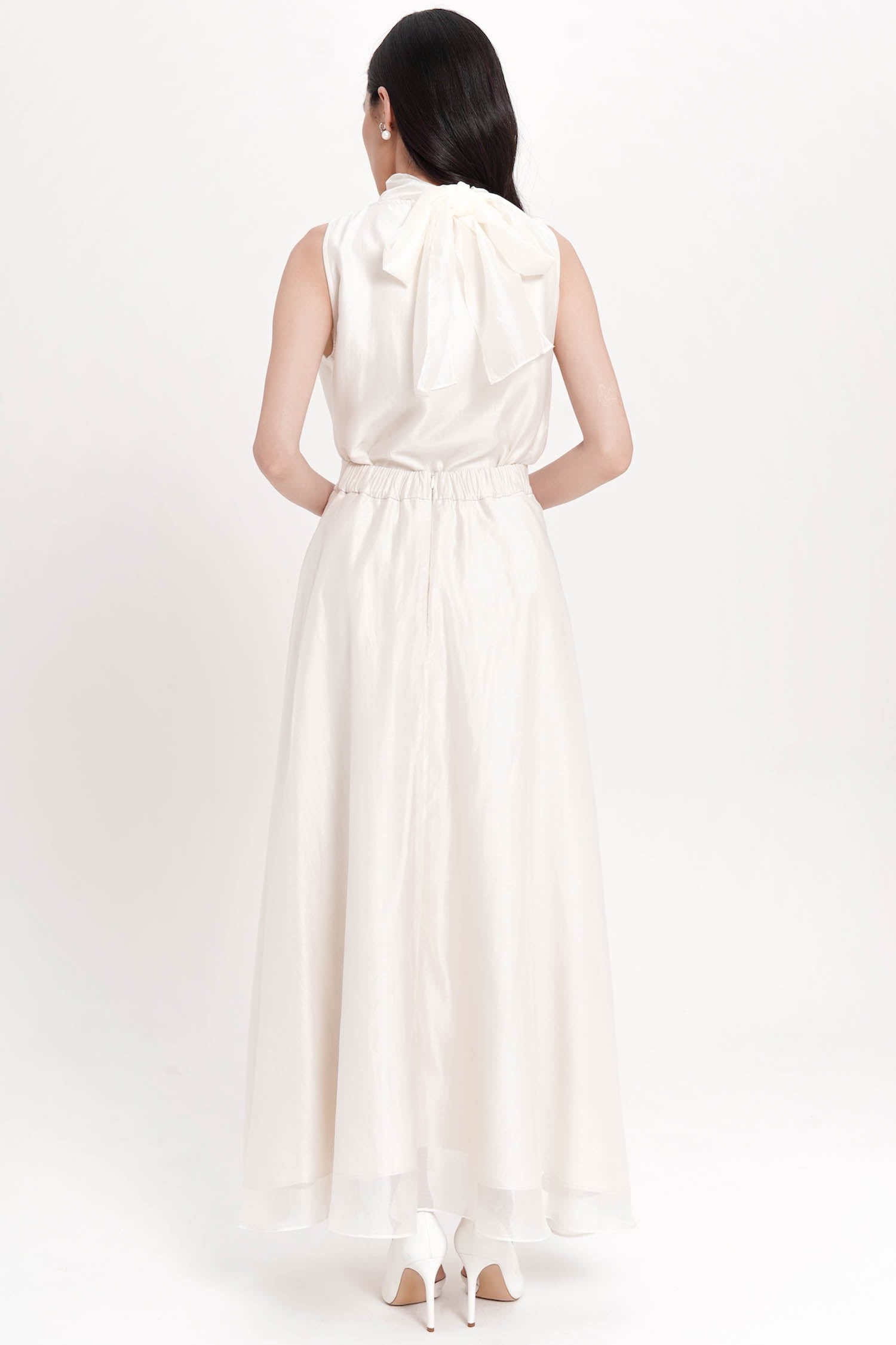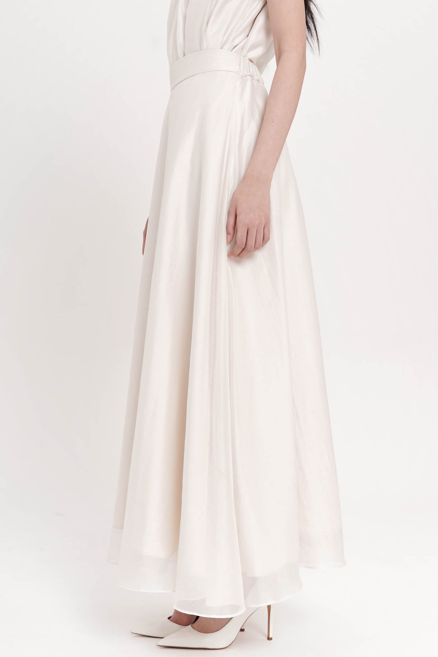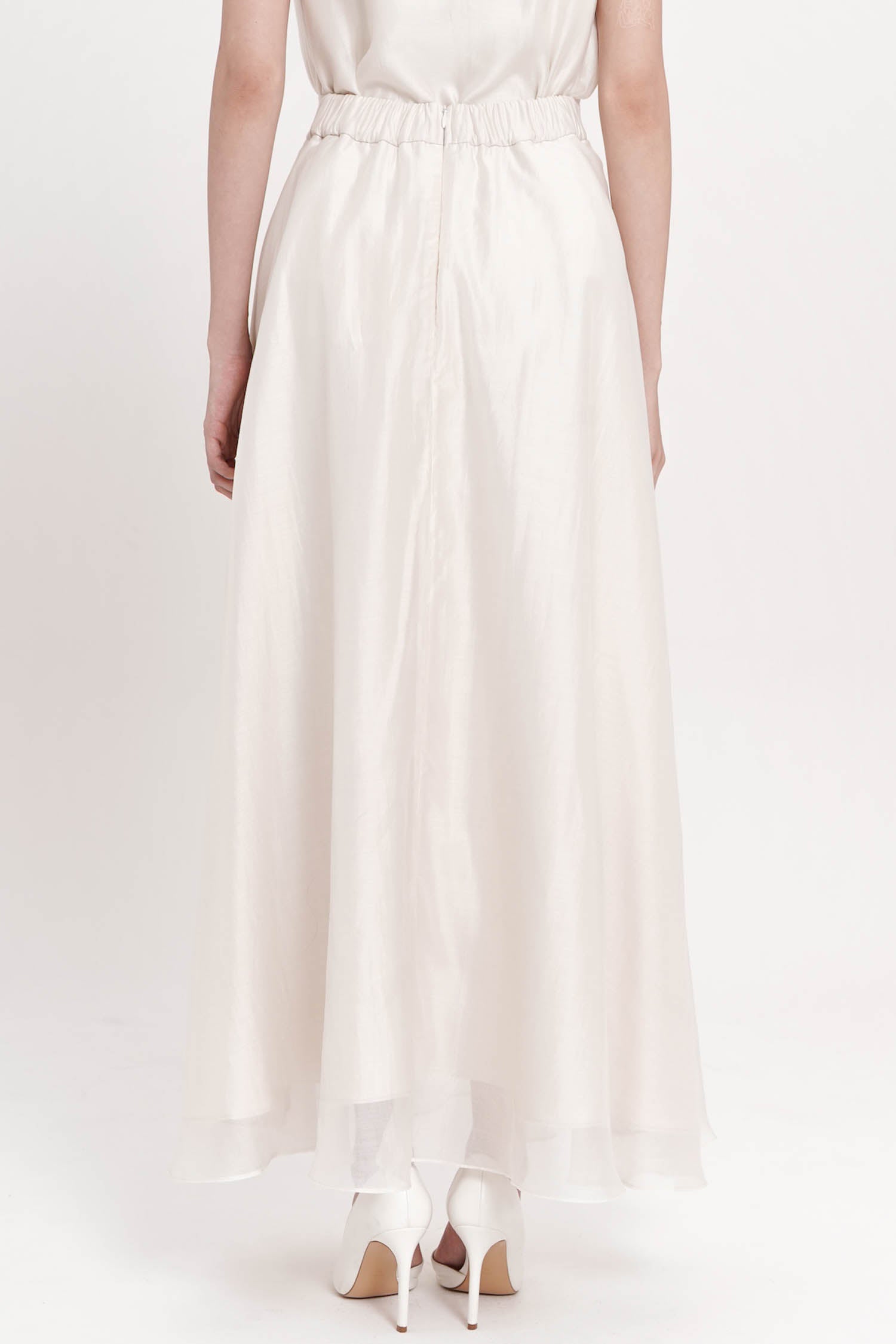 The Beaufort Skirt is a study in graceful fluidity, tailored from delicate polyester that glides with every step. Its full-length silhouette flows softly to the floor, creating an elegant, elongated line that moves effortlessly between formal and relaxed refinement. The waistband offers subtle structure, while the fabric’s natural sheen enhances its romantic drape. Poised and timeless, the Beaufort Skirt pairs seamlessly with its matching top or stands alone as a sophisticated statement piece. Available in Porcelain and Navy.