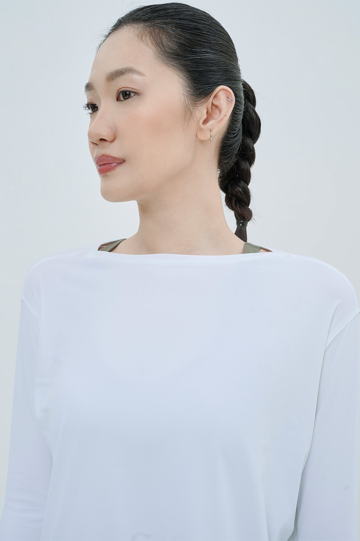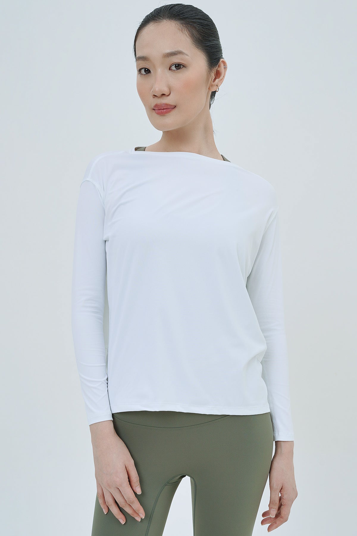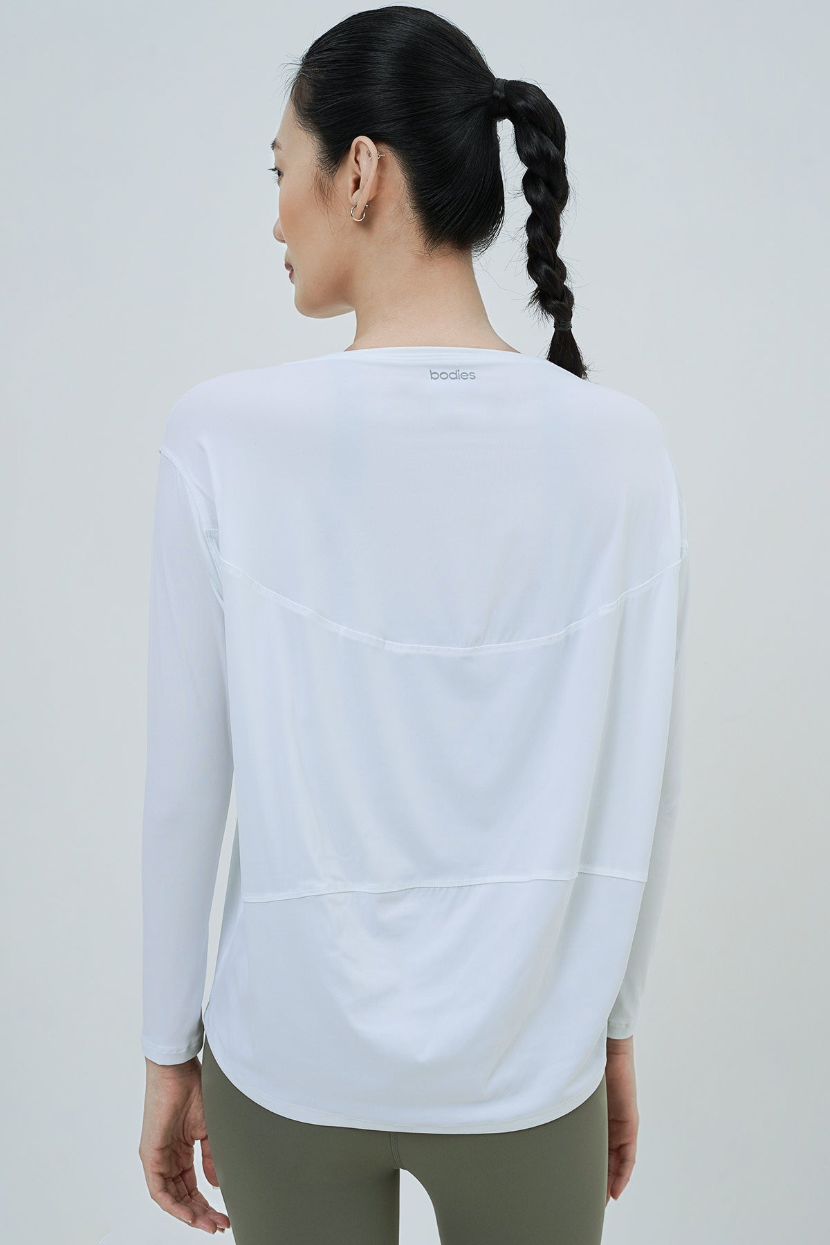 Introducing the Cove Long Sleeve Top in White, a versatile and stylish addition to your wardrobe that effortlessly combines comfort with contemporary fashion. Crafted from high-quality, buttery soft fabric, this top is designed to keep you feeling fresh and looking chic throughout the day.