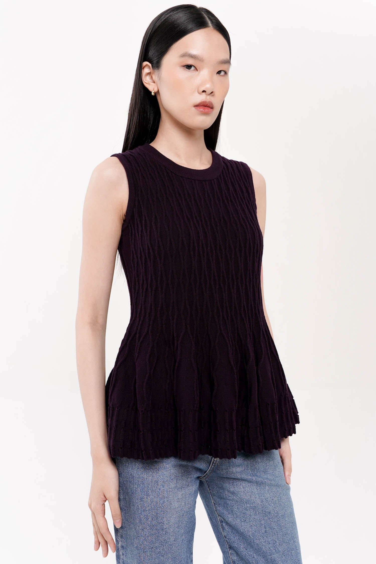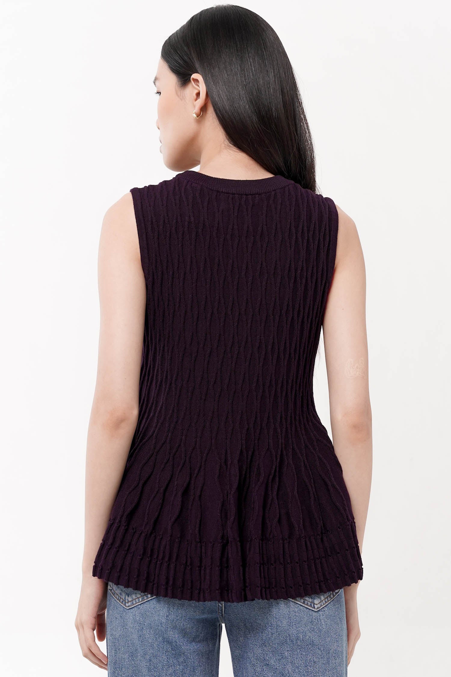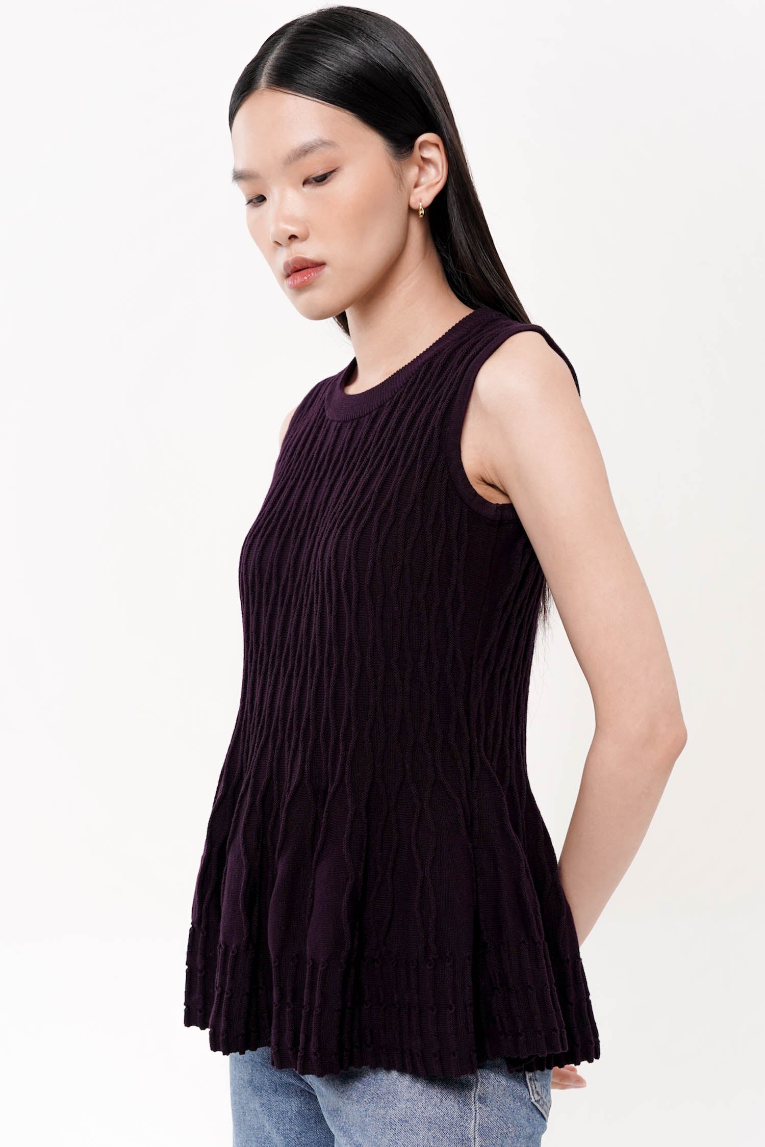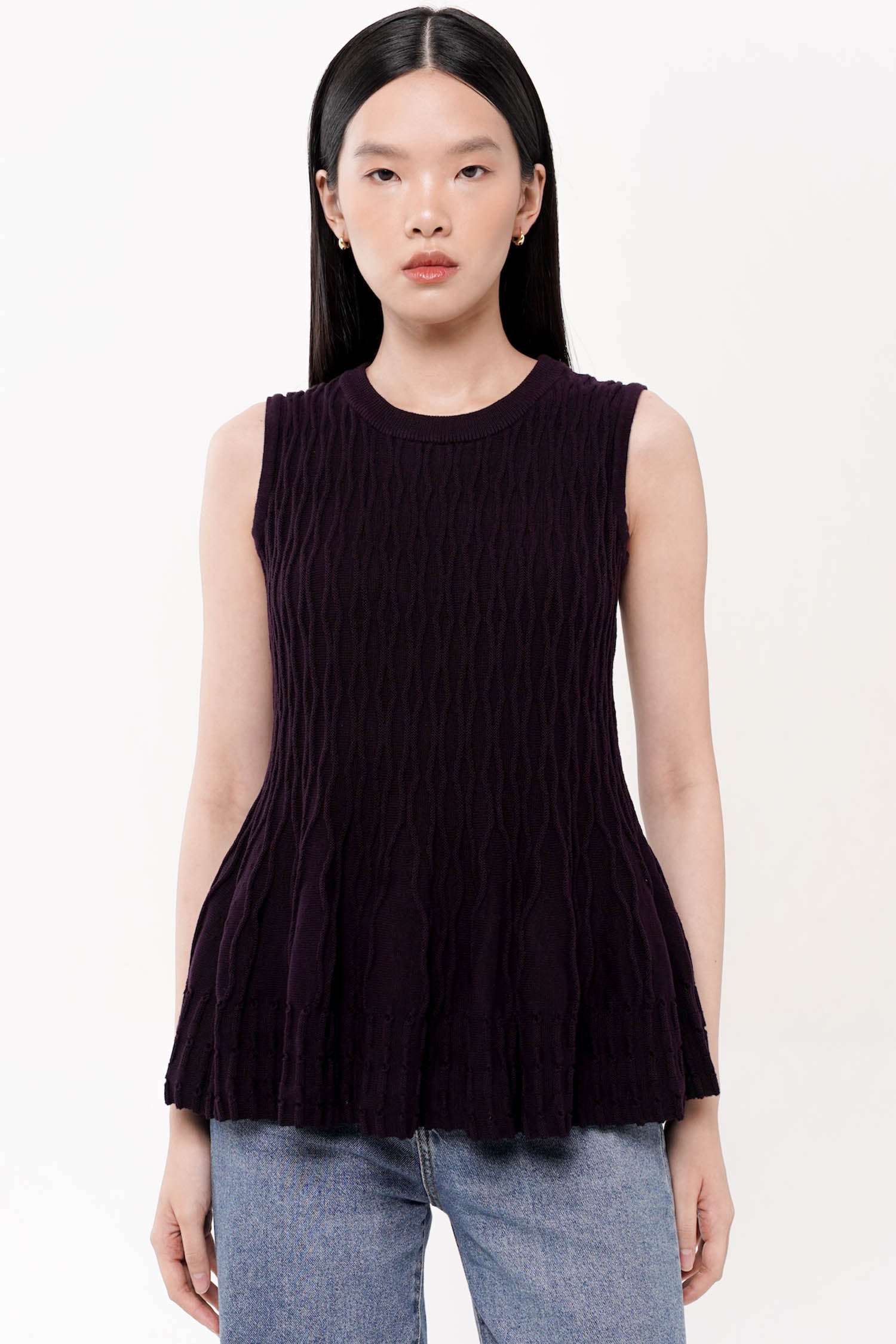 The Dakota Peplum Knit Top exudes refined femininity through its delicate silhouette and textured knit detailing. Crafted from soft cotton knit, this sleeveless top features an intricate cable pattern that flows seamlessly into a gently flared peplum hem, creating an elegant play of structure and movement. Its round neckline and clean finish make it a versatile piece that pairs effortlessly with tailored separates or casual denim, embodying both comfort and sophistication. Available in Crème, Dusty Pink, and Navy, the Dakota Peplum Knit Top offers timeless charm with a contemporary ease.