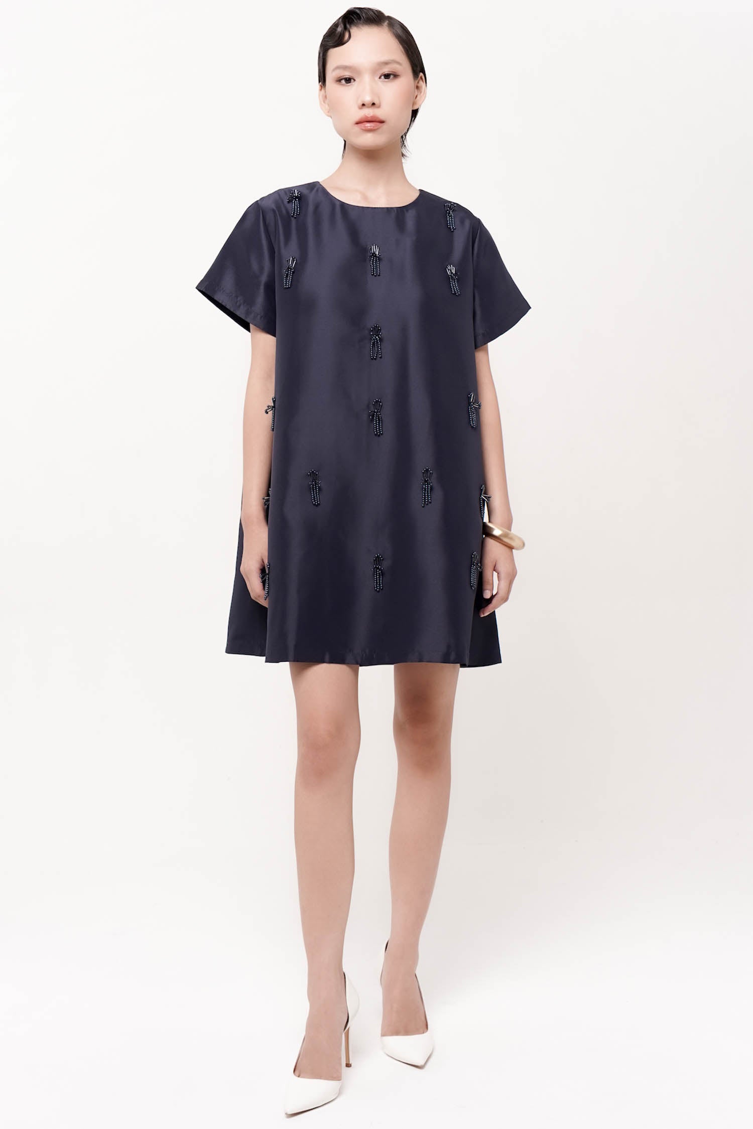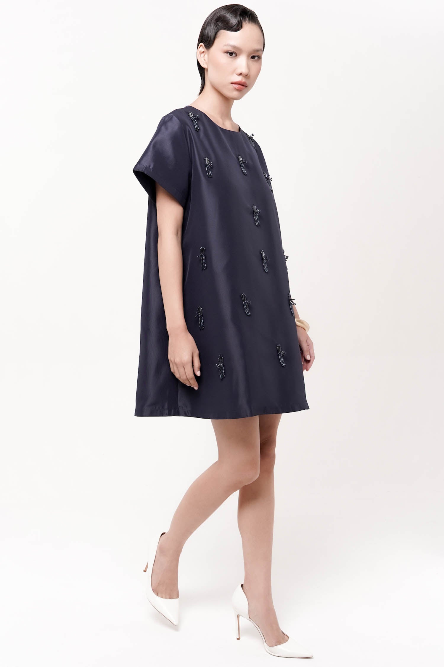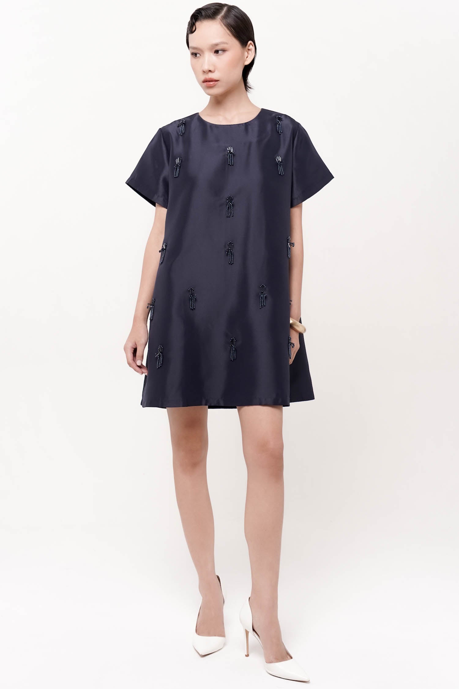 Step into the spotlight with our stunning Embellished Mini Dress. This Navy A-line mini dress is designed to make a memorable impression wherever you go.