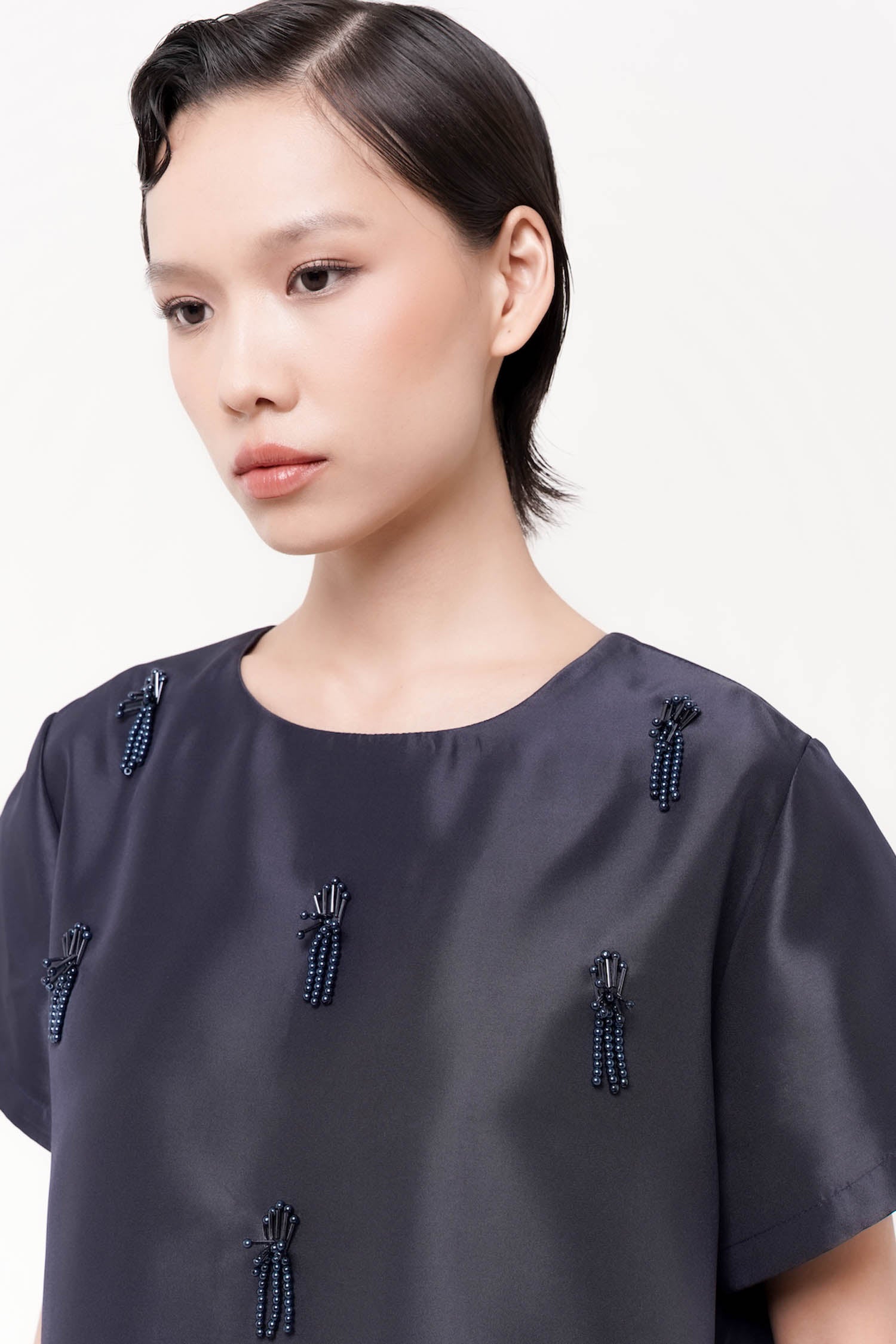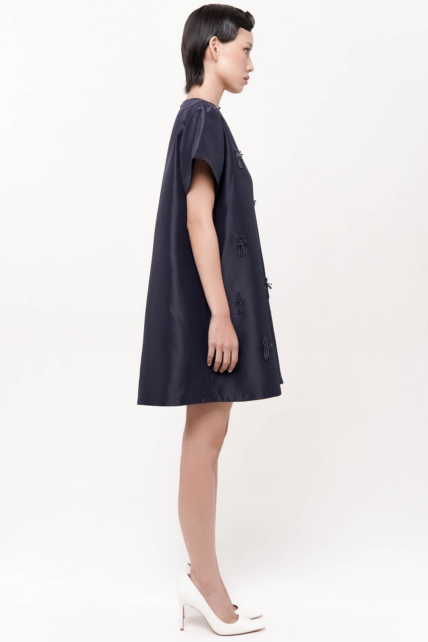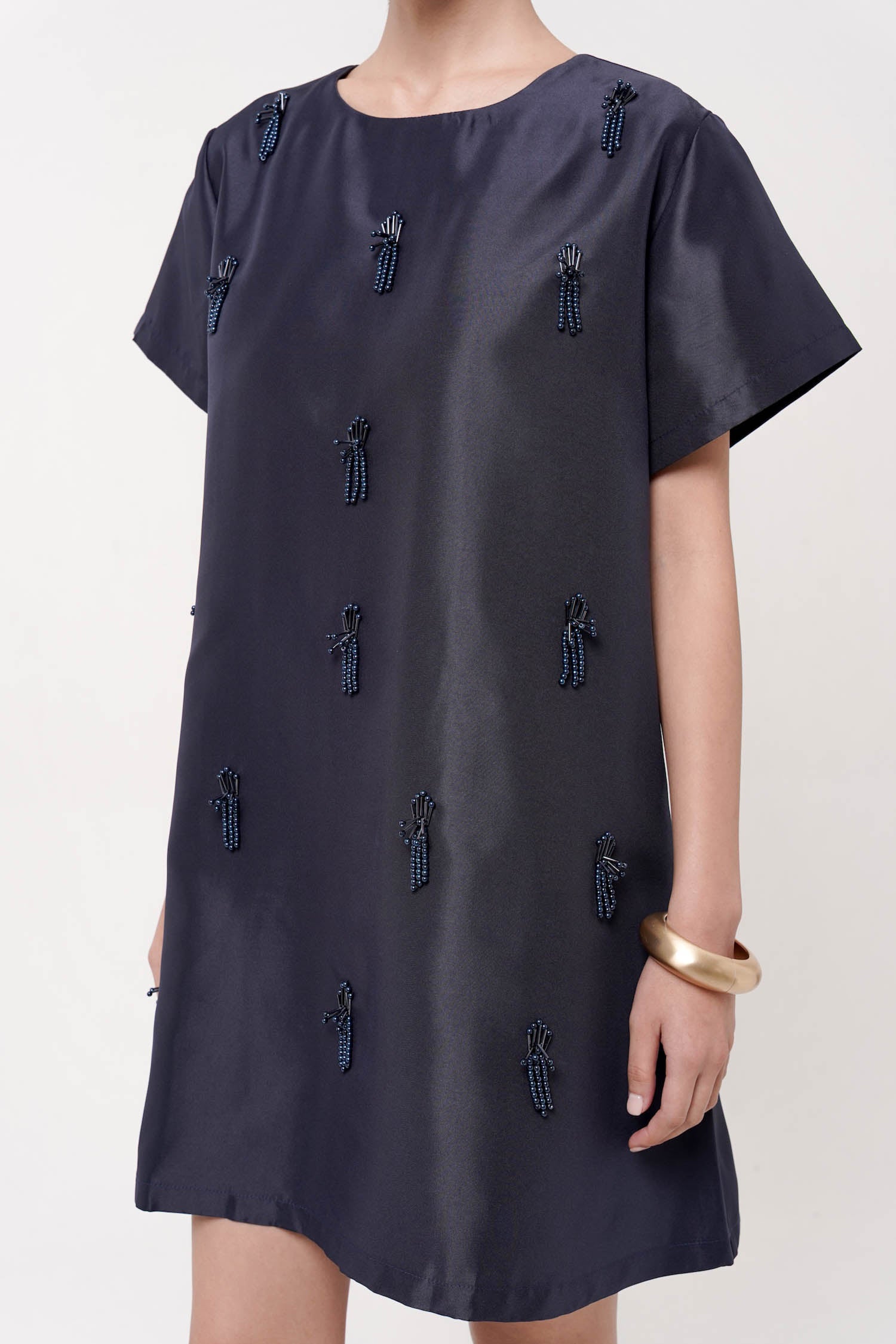 Step into the spotlight with our stunning Embellished Mini Dress. This Navy A-line mini dress is designed to make a memorable impression wherever you go.