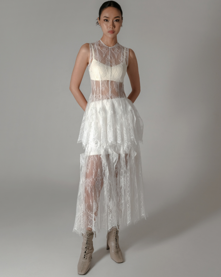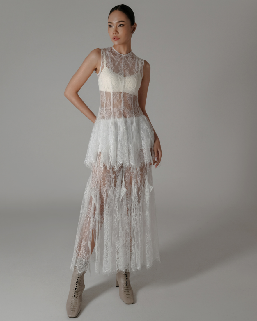 See-through medium-length top cut from Chantilly lace. Wear it over a tube- or bodycon top to create a perfect combo.