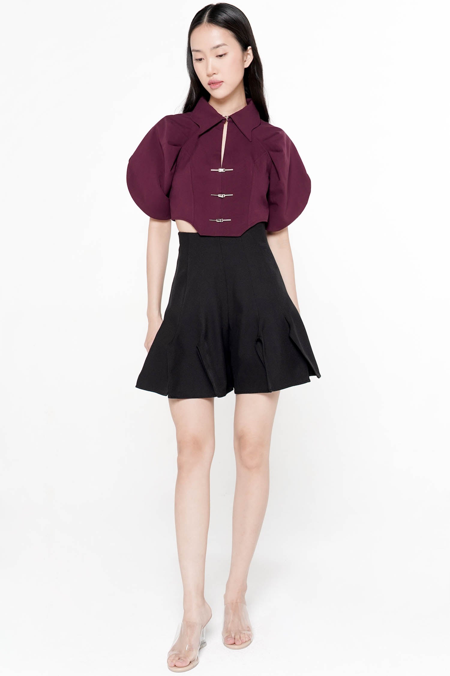 Krilo shorts are made from wool blend in a floaty, voluminous shape enhanced by the 3D panels from hips to hem and is designed with a high waist for comfort. Wear yours with a crop- or fitted top.