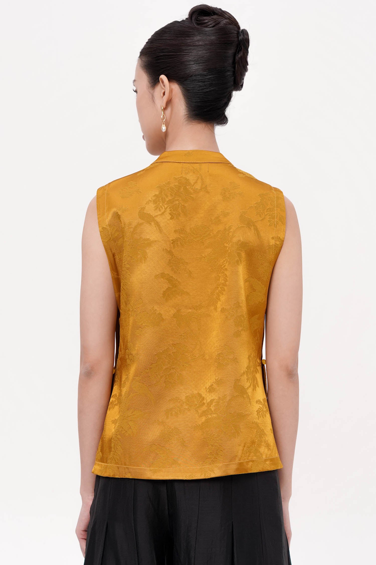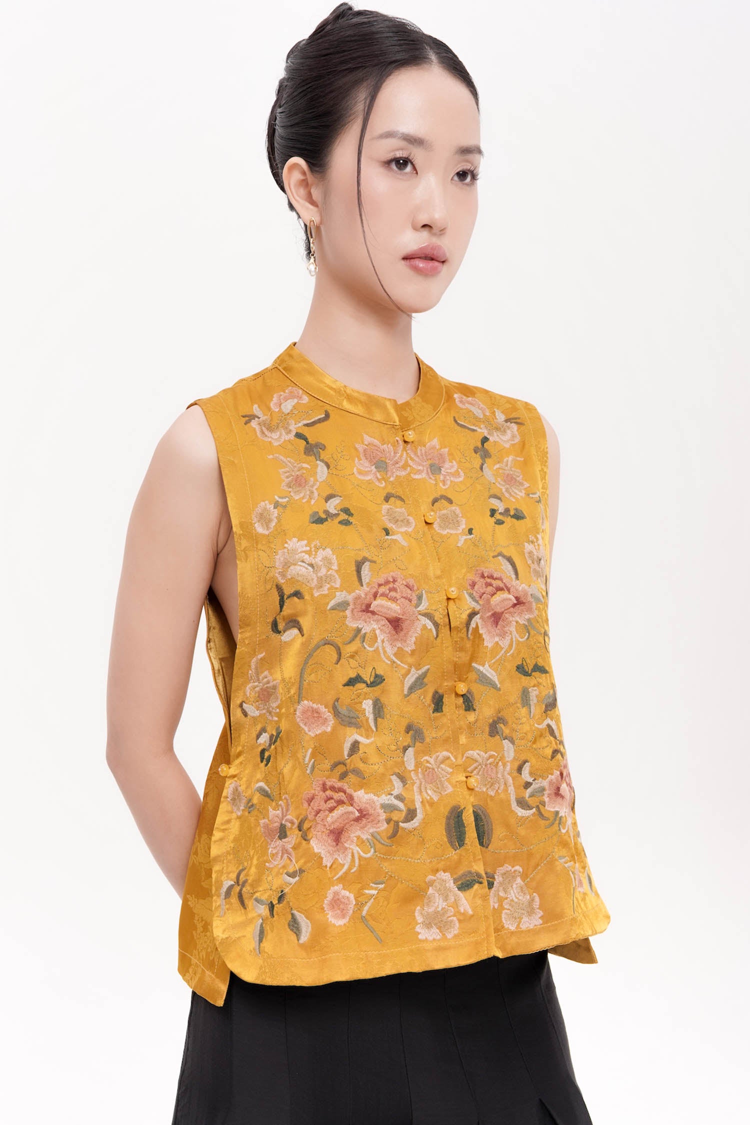 The Lihua Qipao Vest is a refined celebration of classic artistry and modern elegance, featuring a sleeveless silhouette adorned with delicate floral motifs that evoke timeless femininity. Crafted from a smooth blend of rayon and nylon, it offers a soft, fluid drape with a subtle sheen that enhances its polished finish. The mandarin collar and clean front closure lend a poised structure, while the gently flared hem and side slits create effortless movement. Available in green and golden brown, this sophisticated piece brings a graceful balance of tradition and contemporary charm to elevated everyday wear or formal occasions.