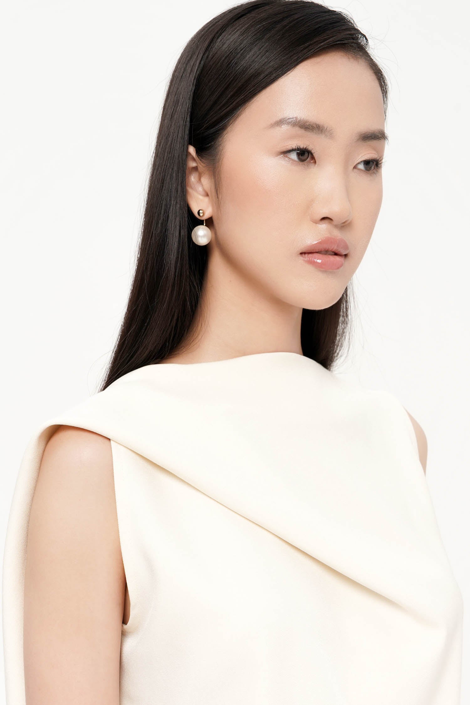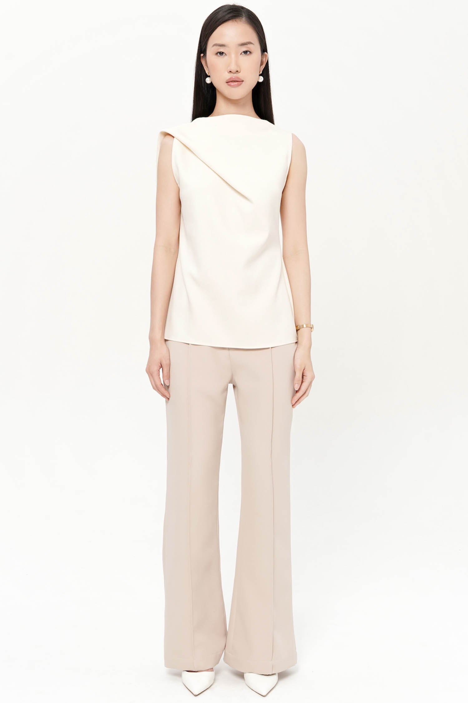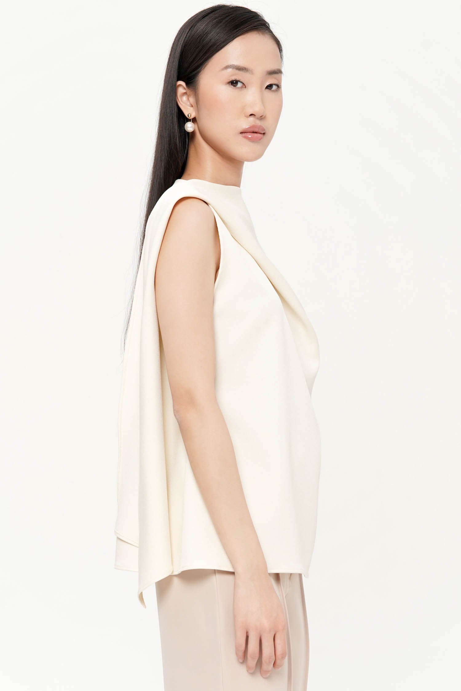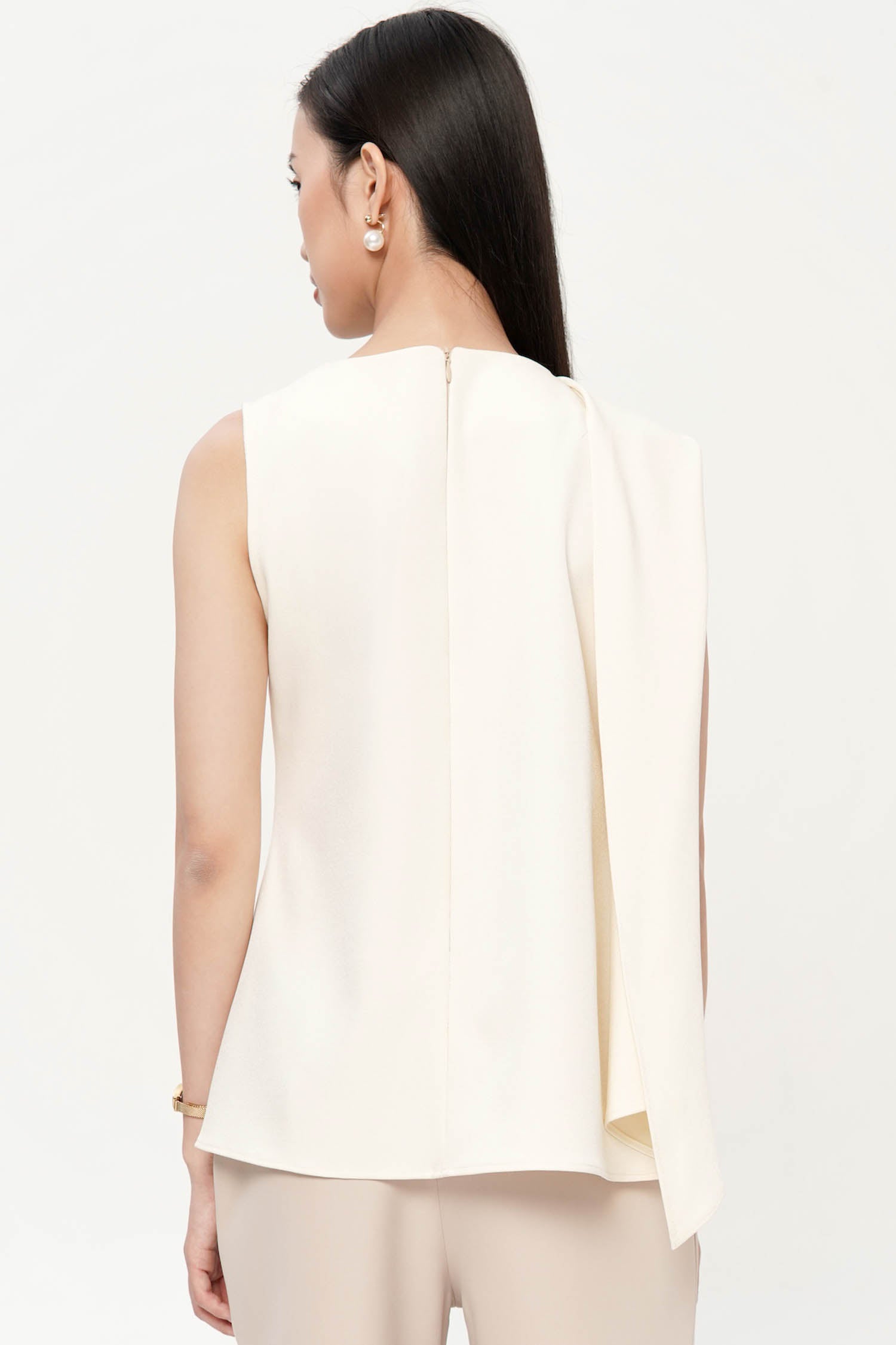 The Oaken Drape Top is a study in modern elegance, crafted from refined semi-wool that offers a structured yet fluid drape. Its sculptural silhouette is defined by an artful asymmetrical overlay that cascades softly across the neckline and shoulder, creating a sense of quiet movement and architectural grace. The sleeveless cut enhances its clean, contemporary appeal, while the tailored fit ensures a polished finish that flatters effortlessly. Available in Ivory, Espresso, and Dark Grey, the Oaken Drape Top is a versatile statement piece, seamlessly elevating both tailored ensembles and understated separates with its timeless sophistication.