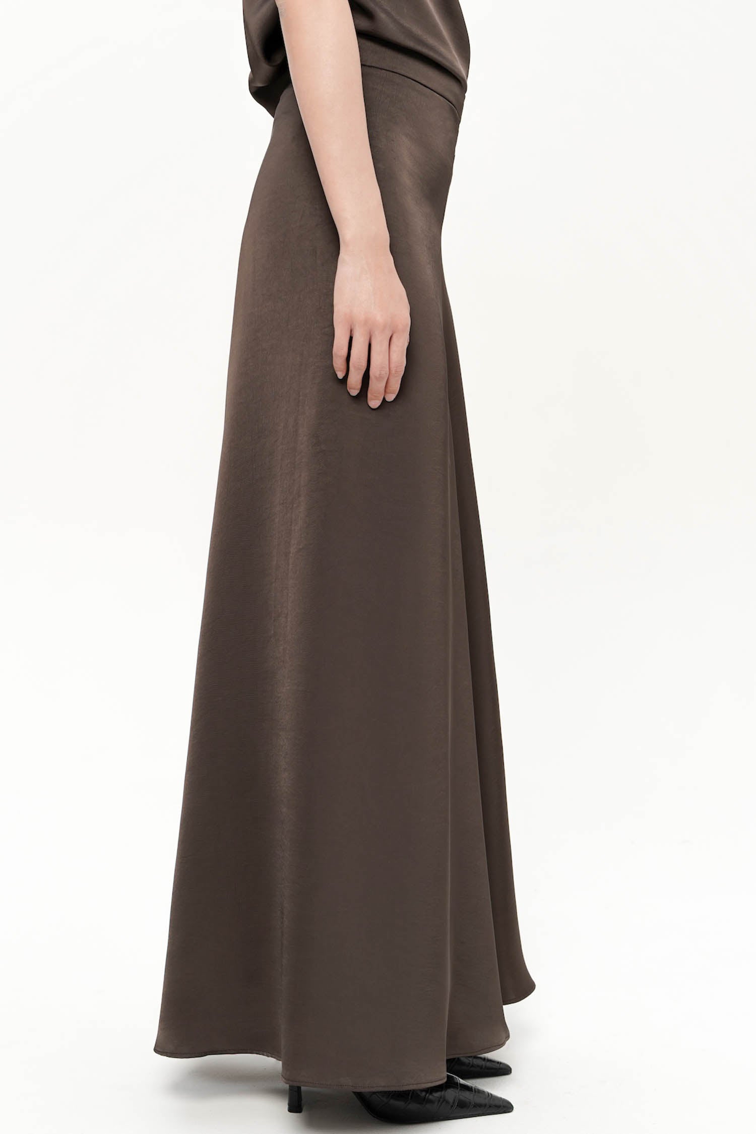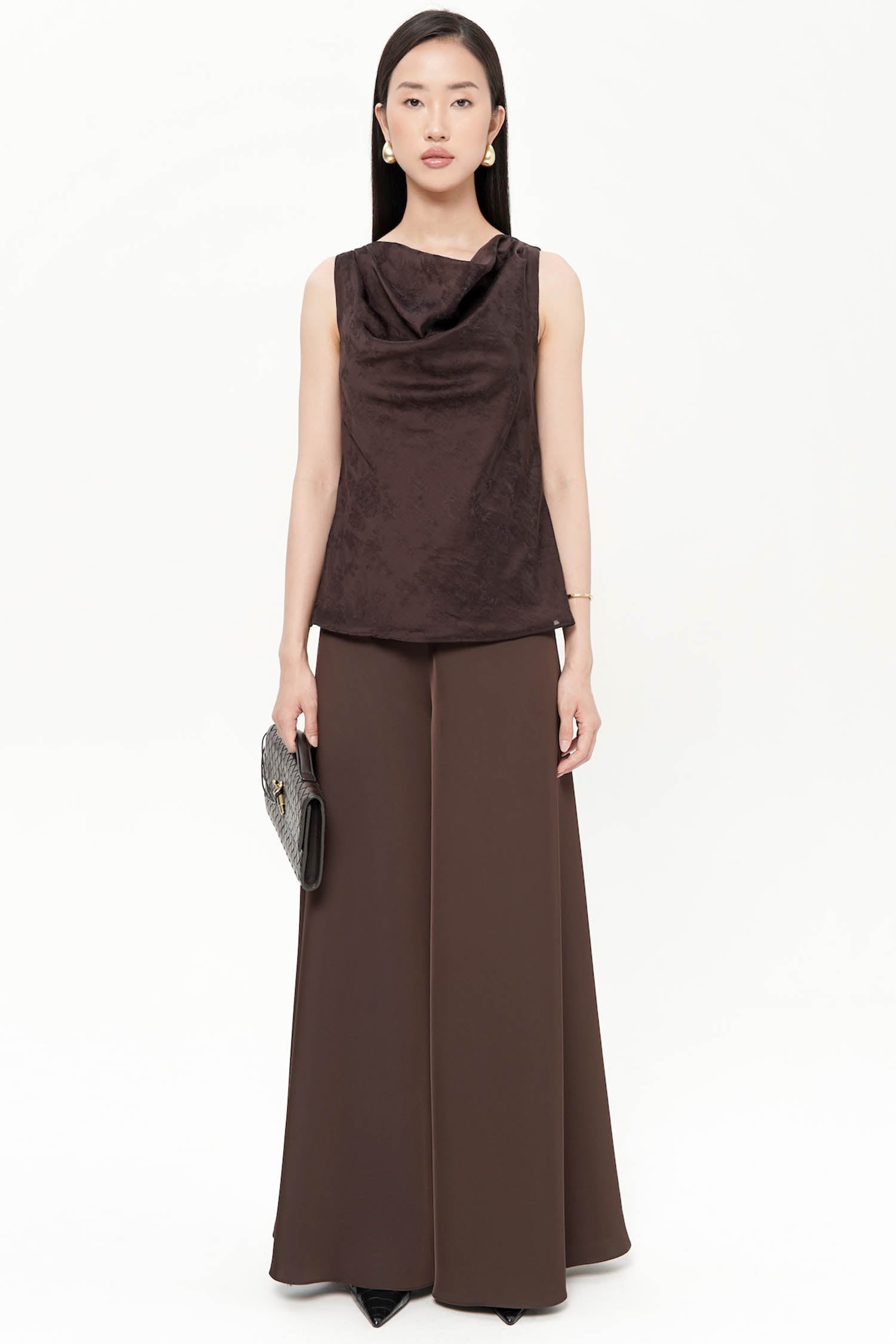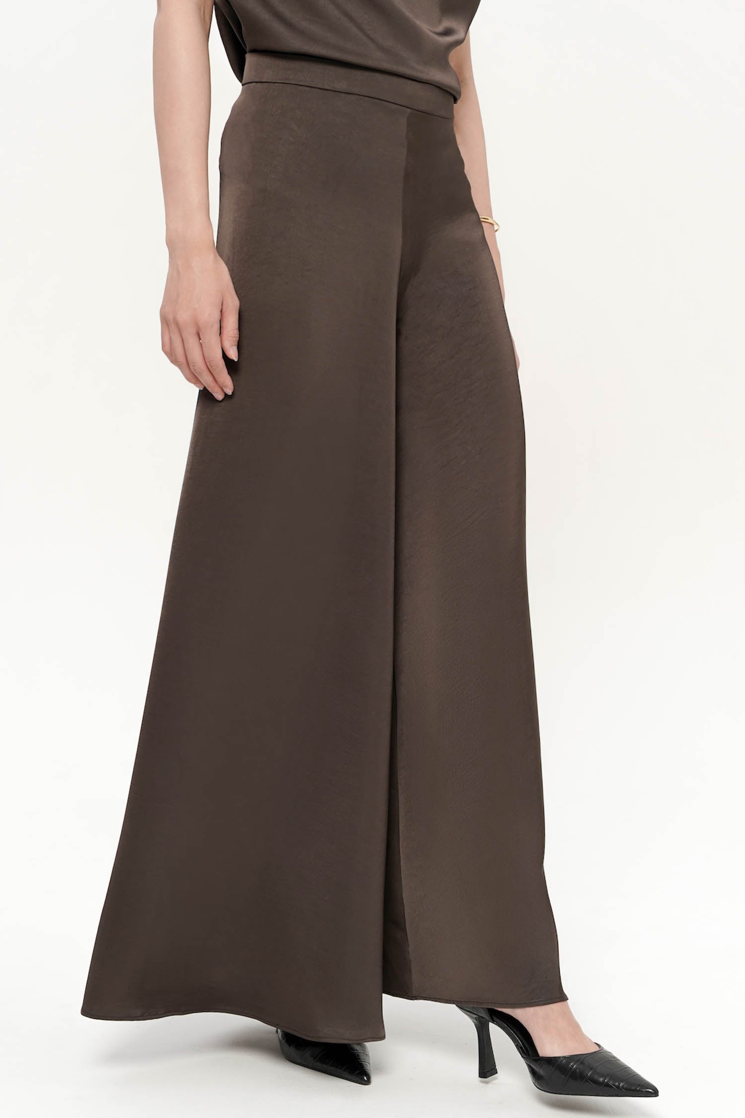 The Oriel Flare Pants embody understated luxury with their fluid silhouette and luminous satin silk finish. Designed to sit gracefully at the waist, they fall into a soft, elongated flare that moves with effortless elegance, creating a refined sense of motion with every step. The smooth, light-catching texture enhances their sophisticated appeal, while the clean, minimal construction ensures a timeless versatility suited for both formal and elevated everyday wear. Available in Cocoa and White, the Oriel Flare Pants are a statement of quiet refinement, perfect for pairing with tailored tops or delicate draped silhouettes.