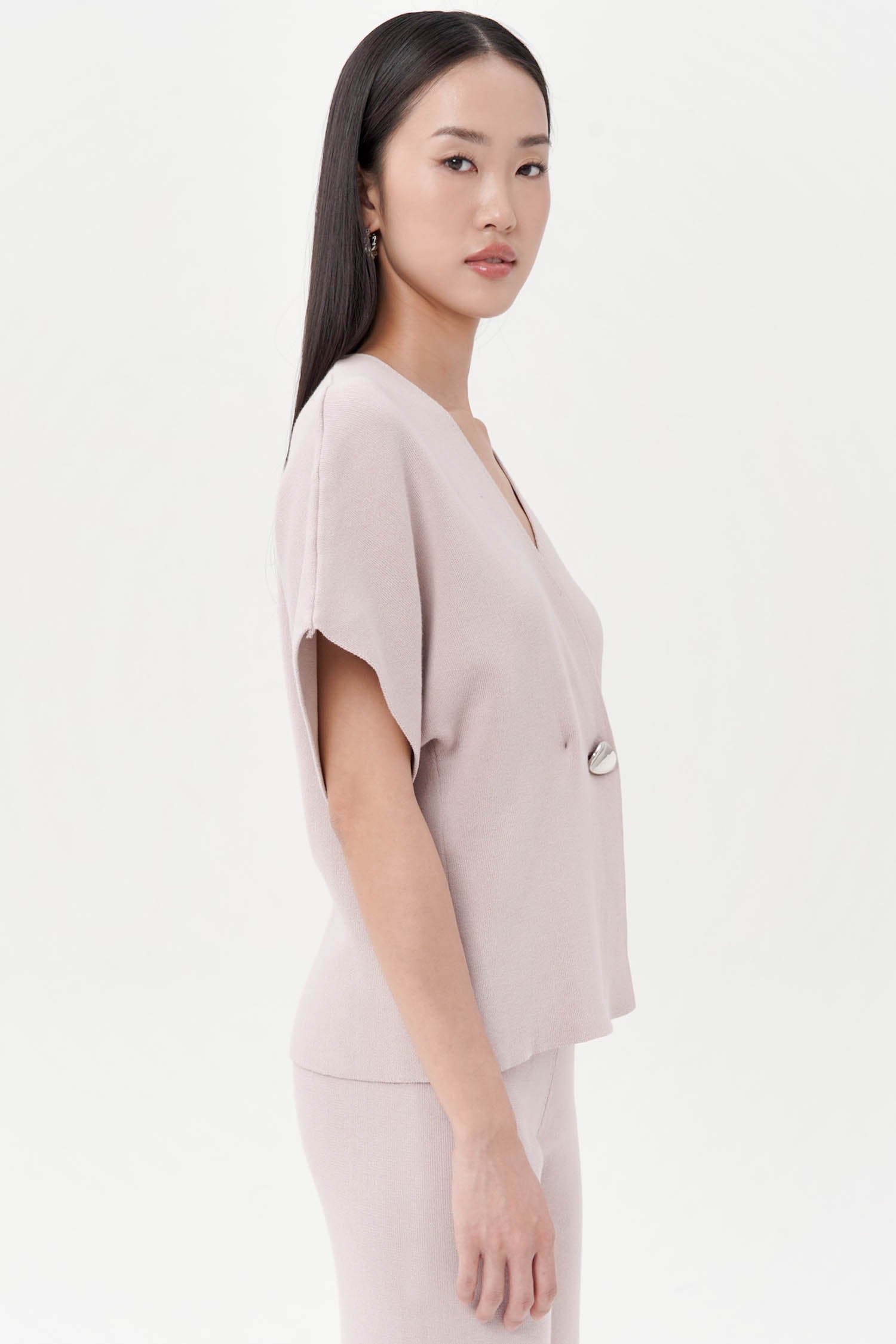 The Palomo Knit Wrap Top redefines effortless elegance with its sculptural silhouette and tactile cotton knit construction. Designed with a fluid wrap front secured by a statement metallic clasp, this piece blends architectural lines with comfort-driven styling. The extended shoulder and relaxed fit flatter a variety of body types, making it an essential layer for sophisticated daywear or elevated casual looks. Available in a classic palette of Grey, Broken White, Espresso, Navy, and Mocha, it’s a refined staple with timeless appeal.