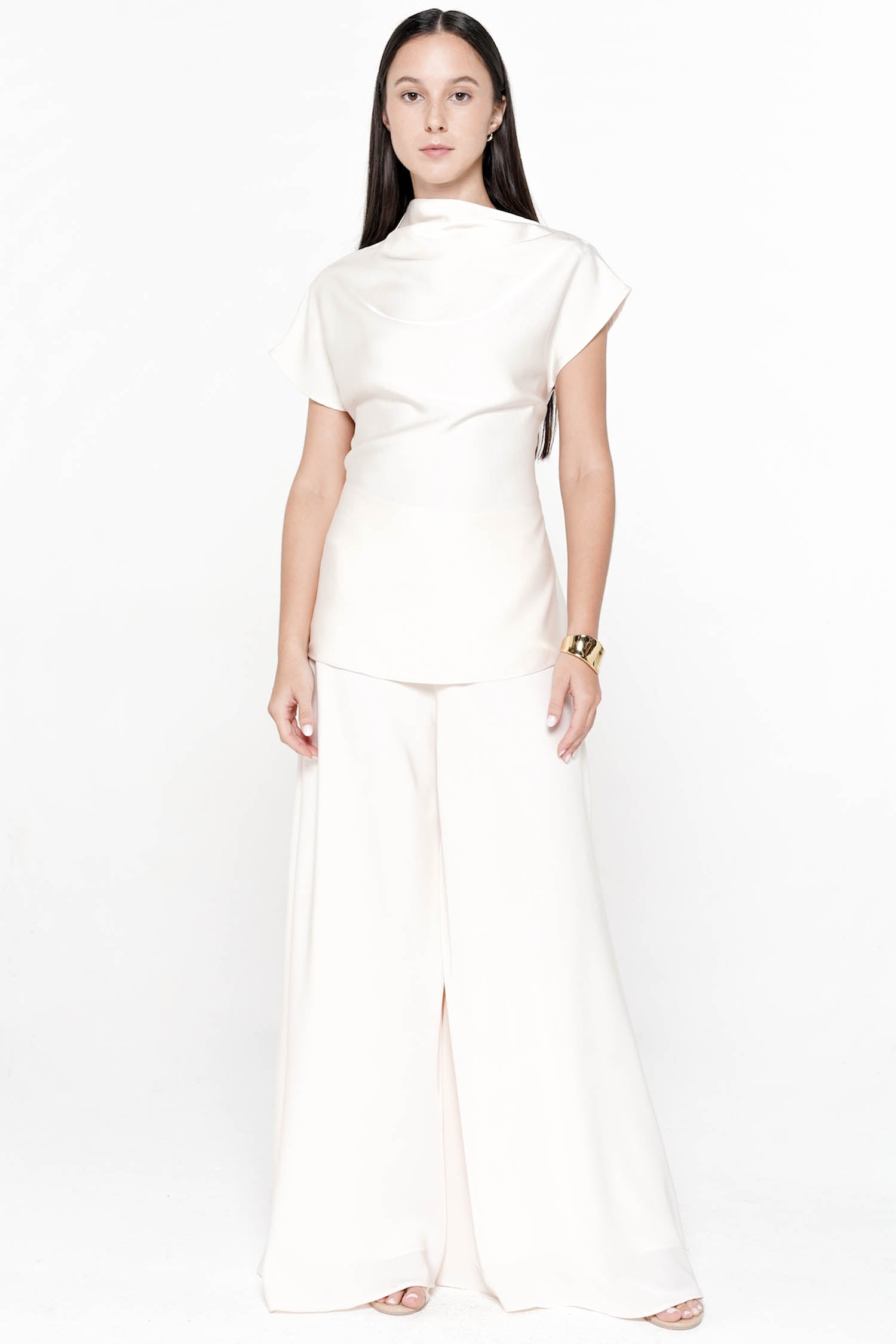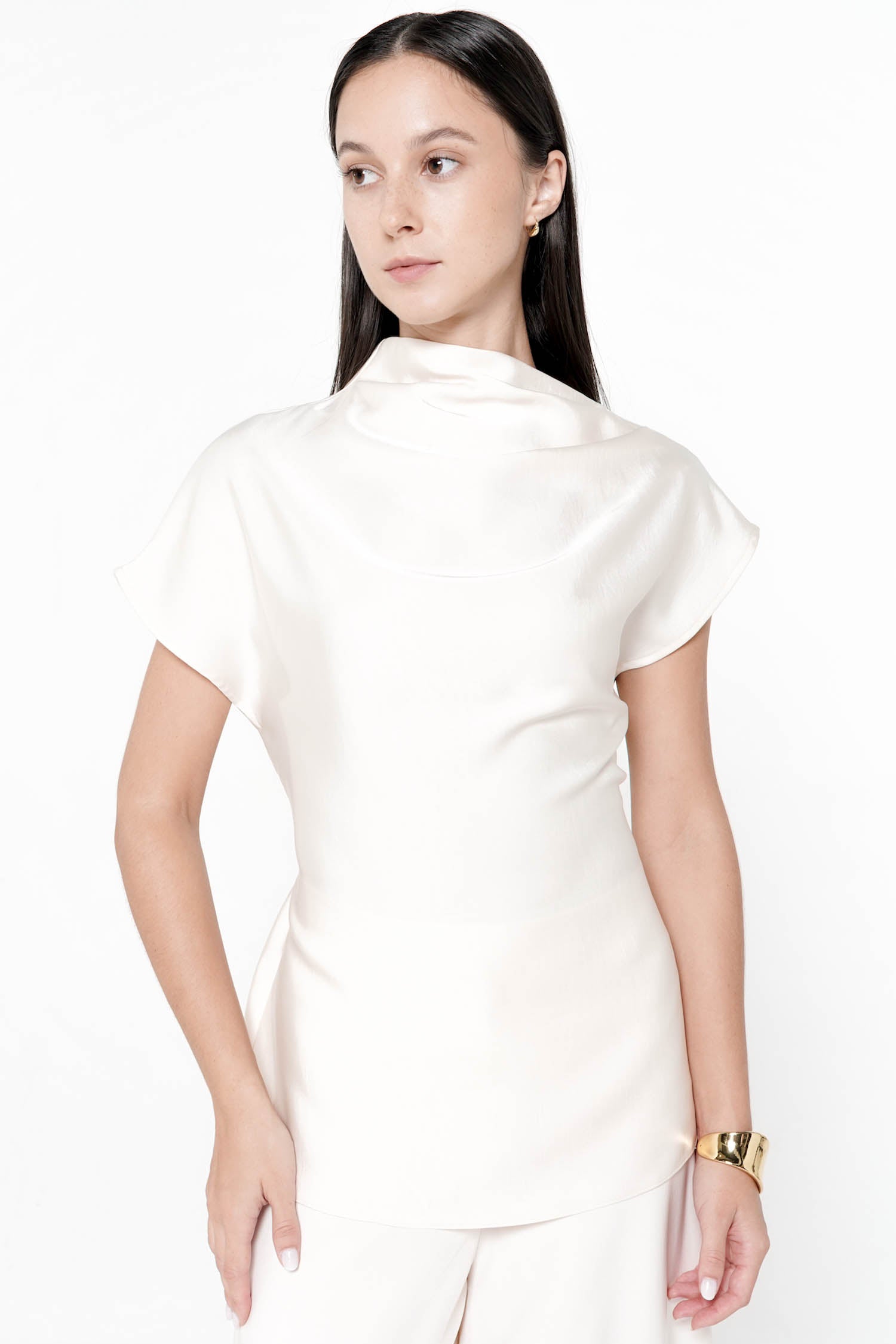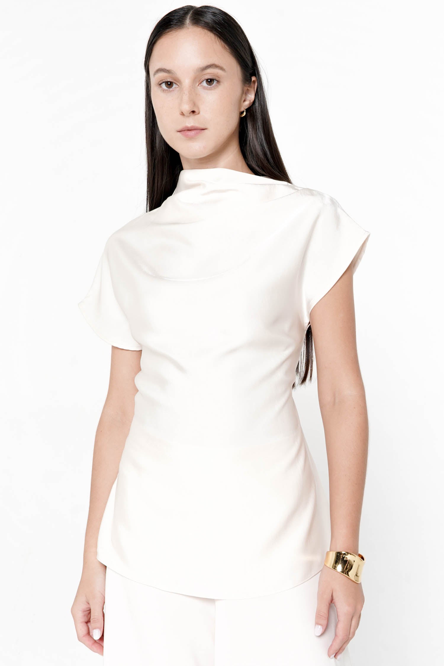 The Salomi Drape Blouse is a refined expression of soft elegance, crafted from luxurious satin th...