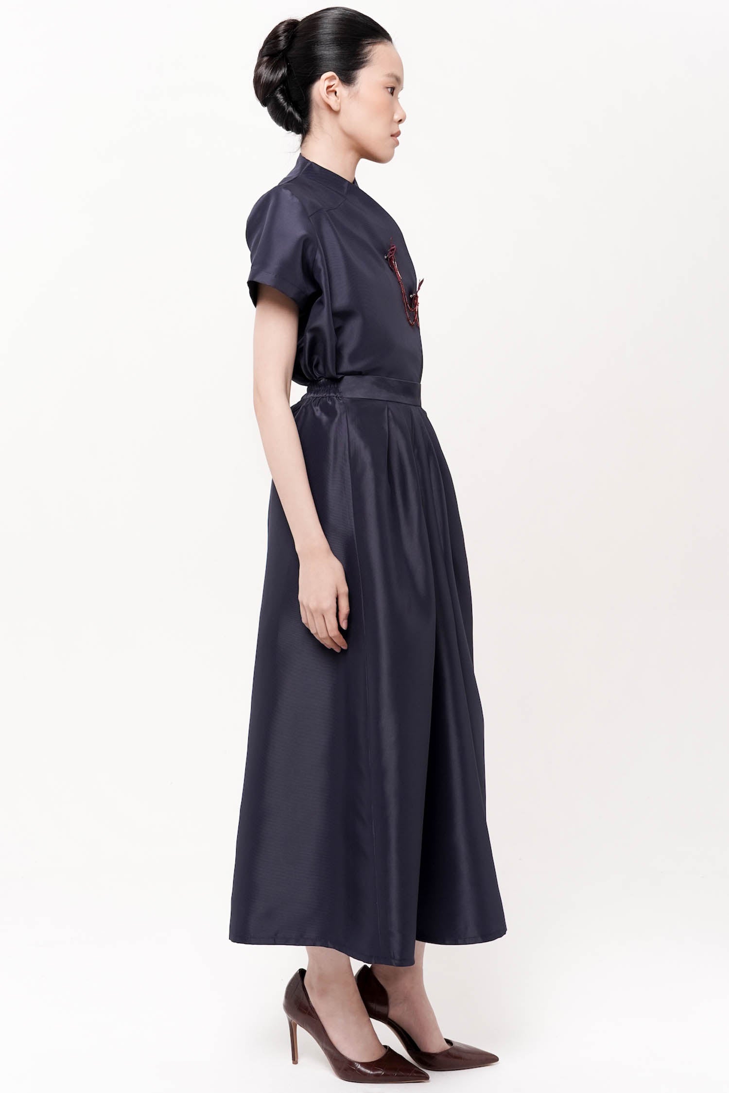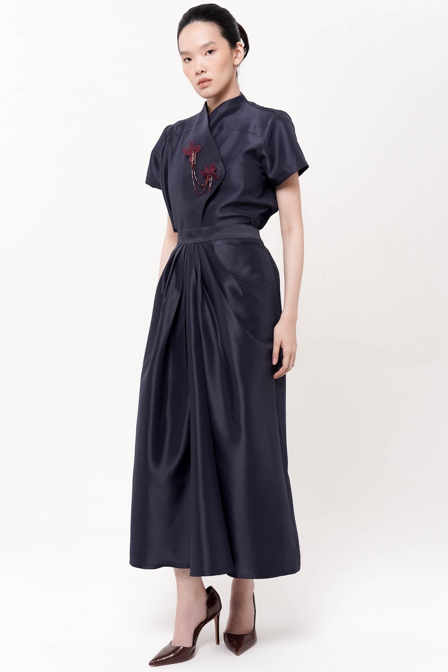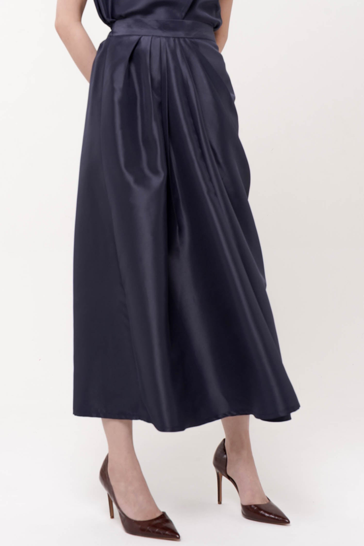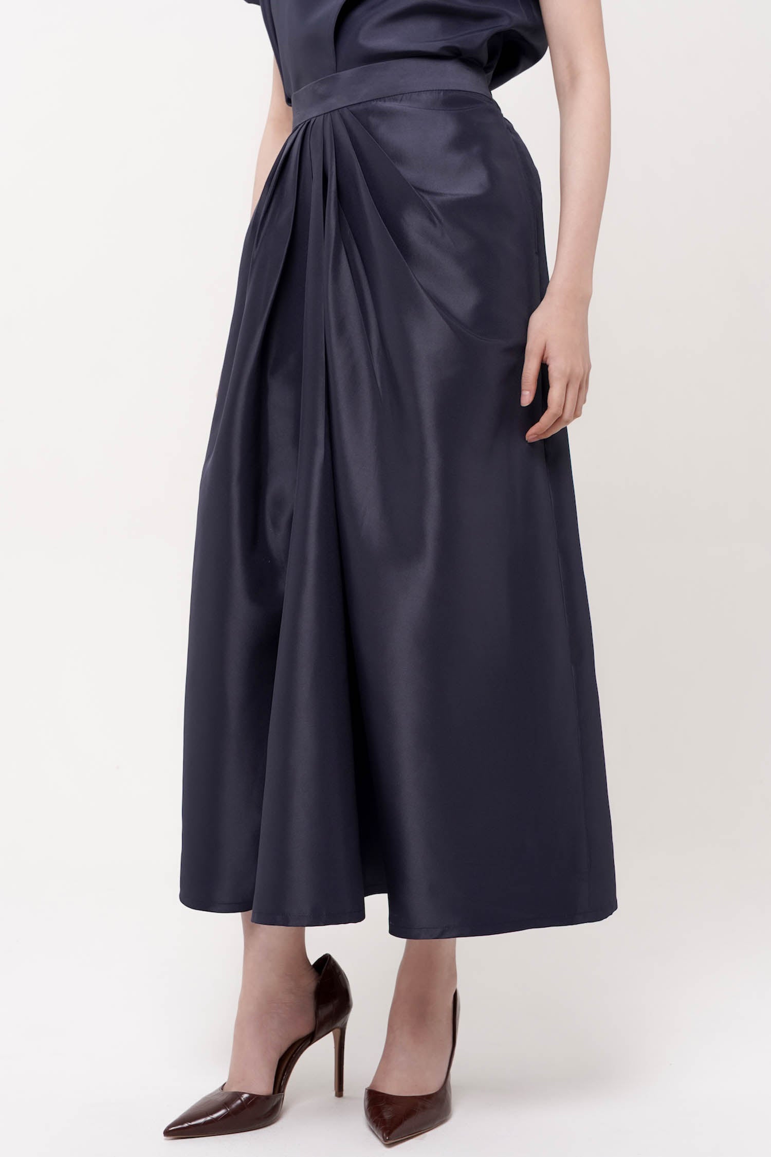 SENCHA SKIRT Maroon satin gather skirt.SIZE AND FIT INFORMATION