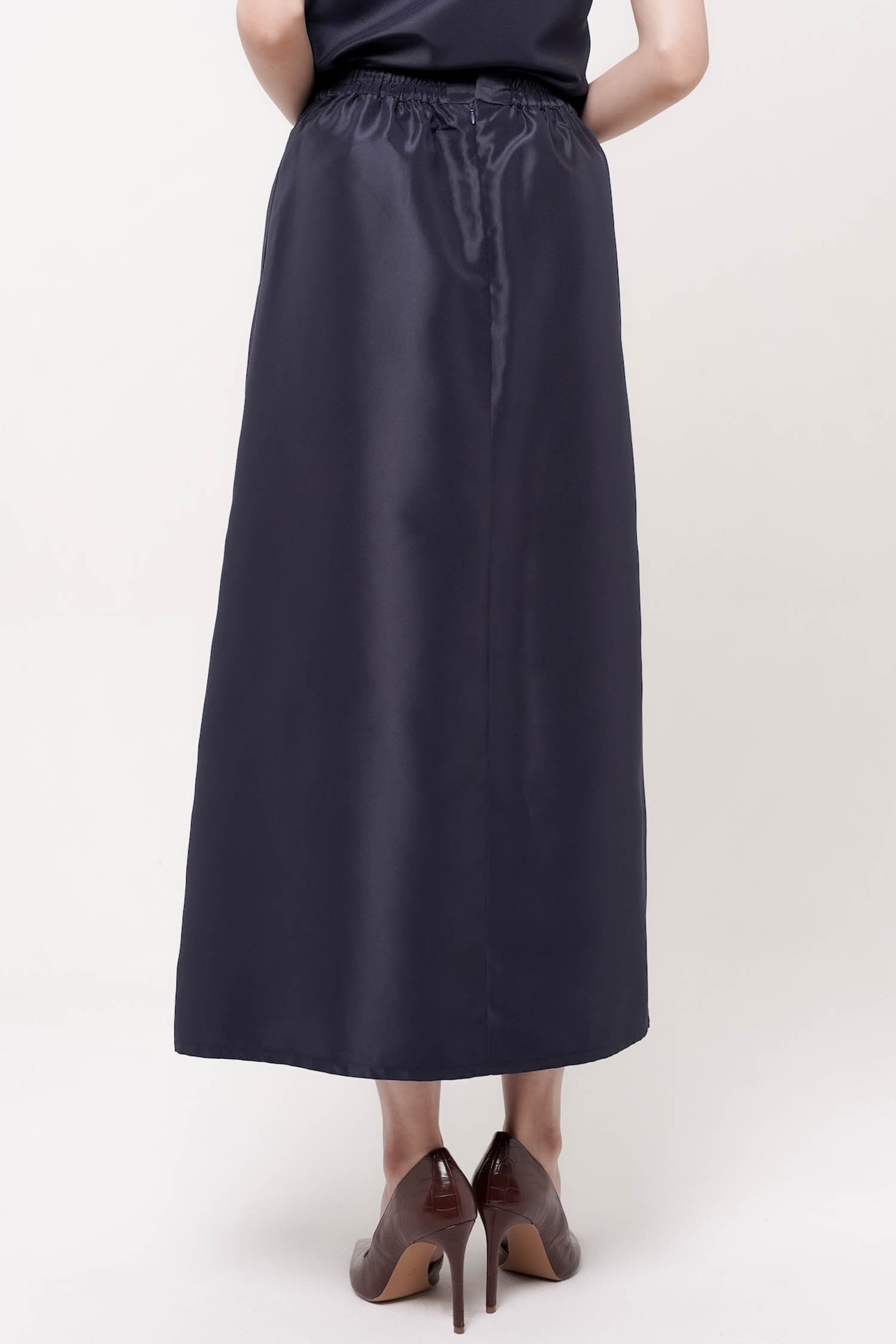 Maroon satin gather skirt.