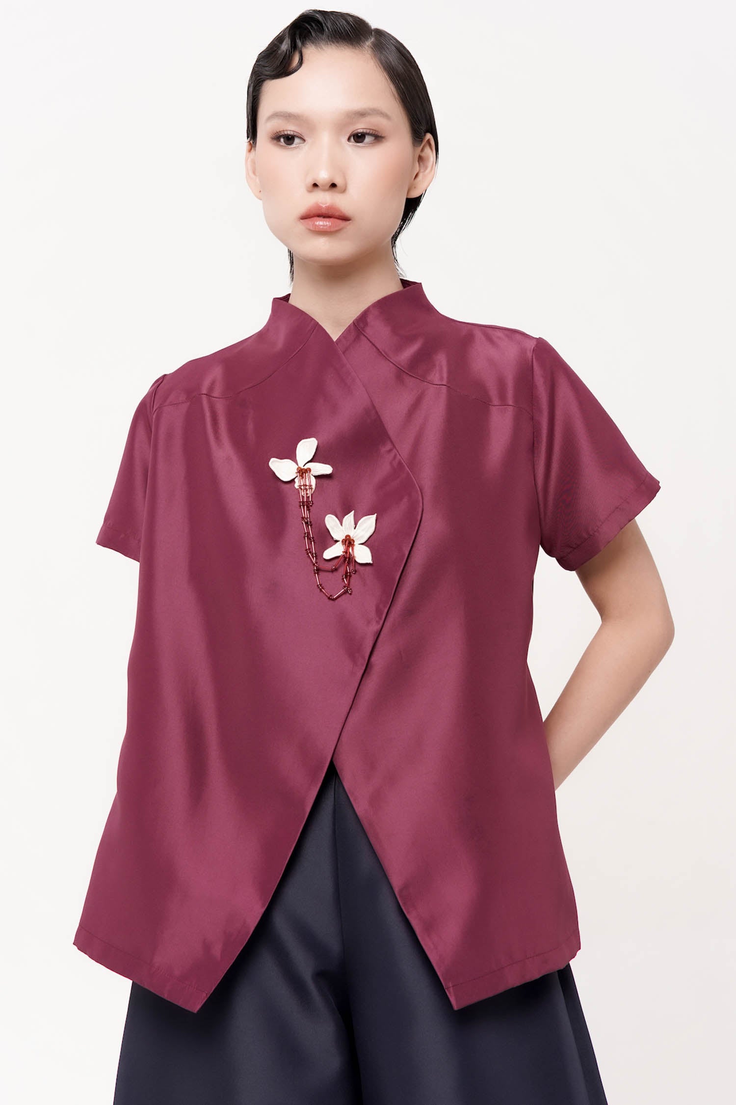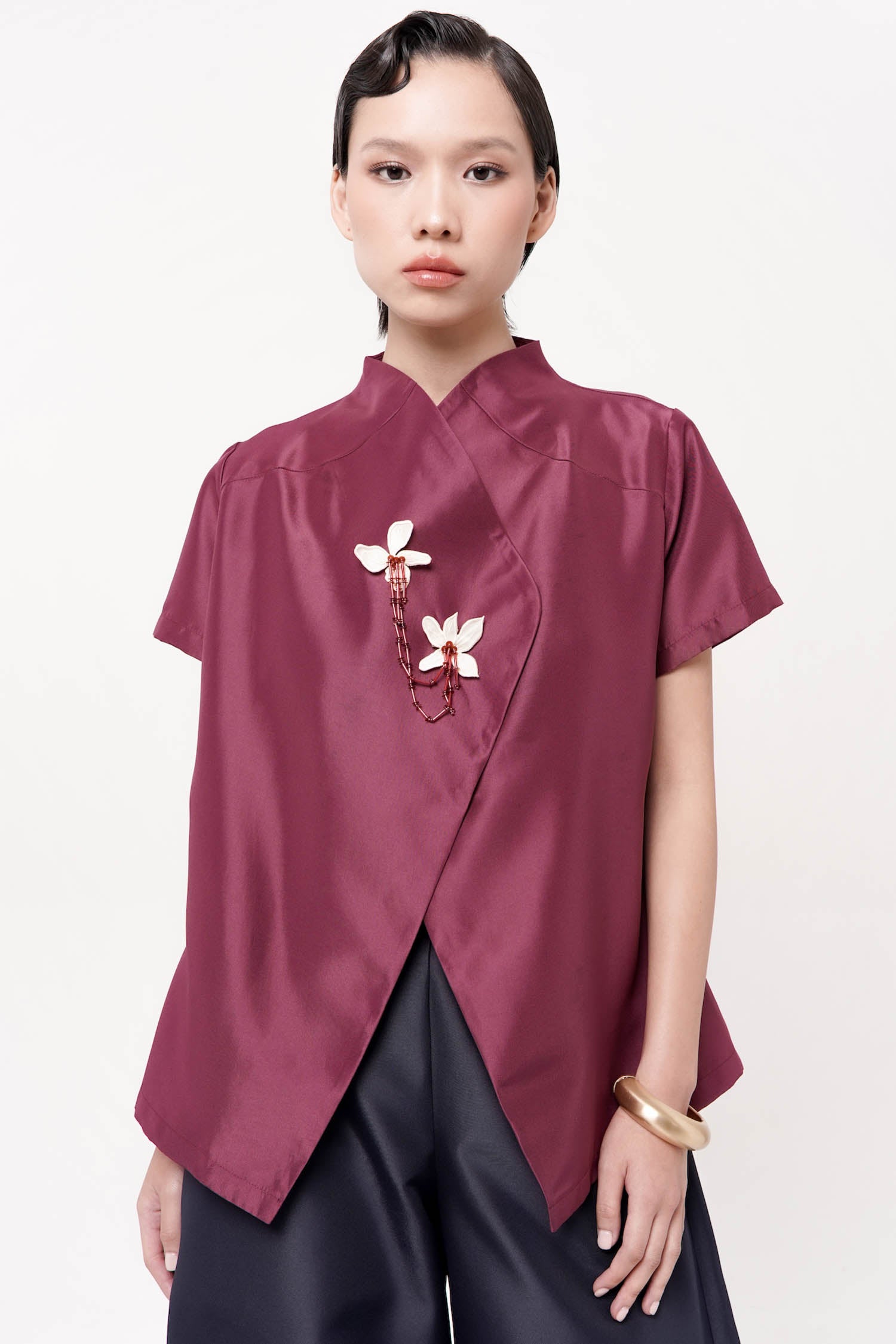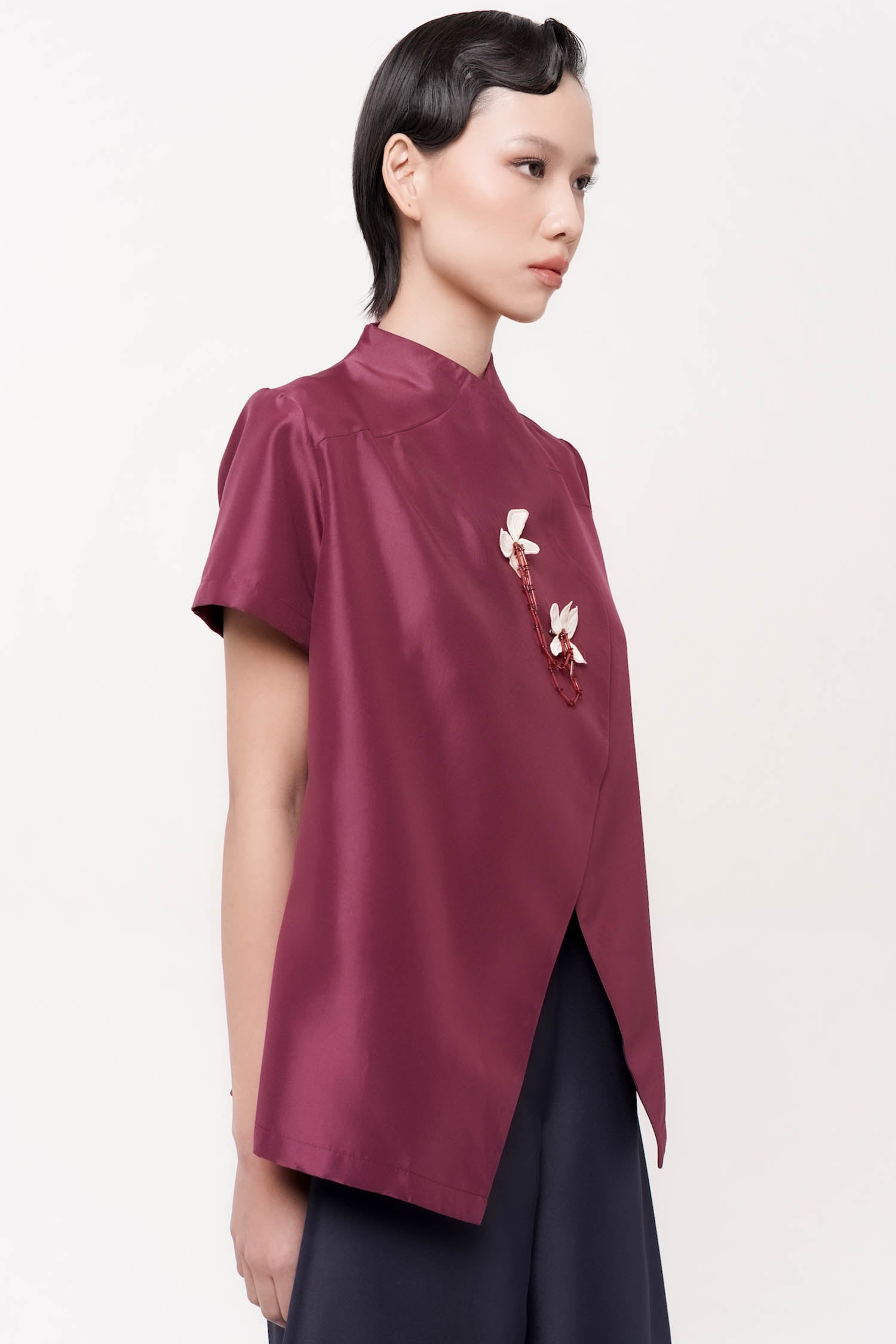 SENCHA TOP High neck top with overlap detail and brooch embroiderySIZE AND FIT INFORMATIONS-M : Bust : 102 cm | Waist...