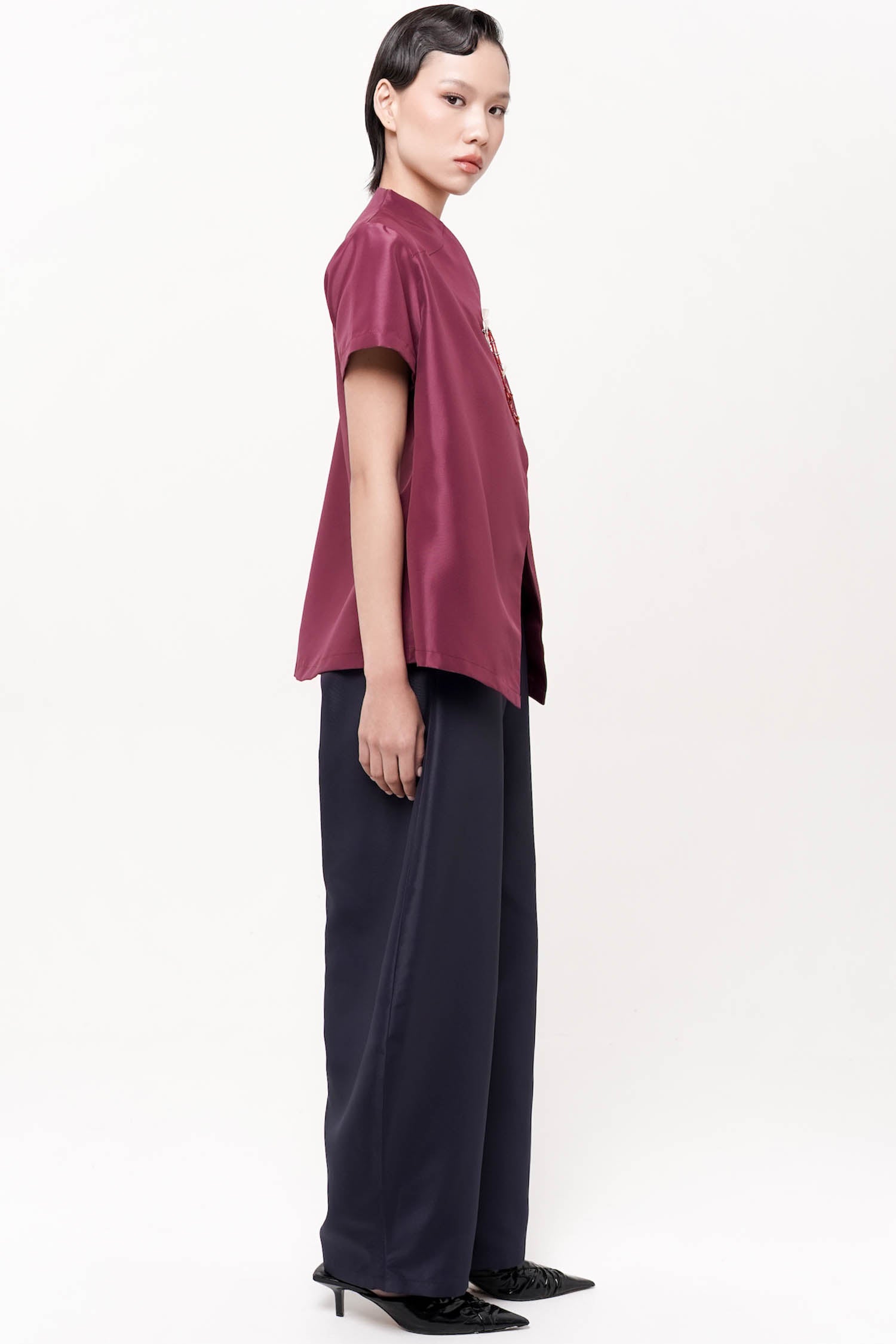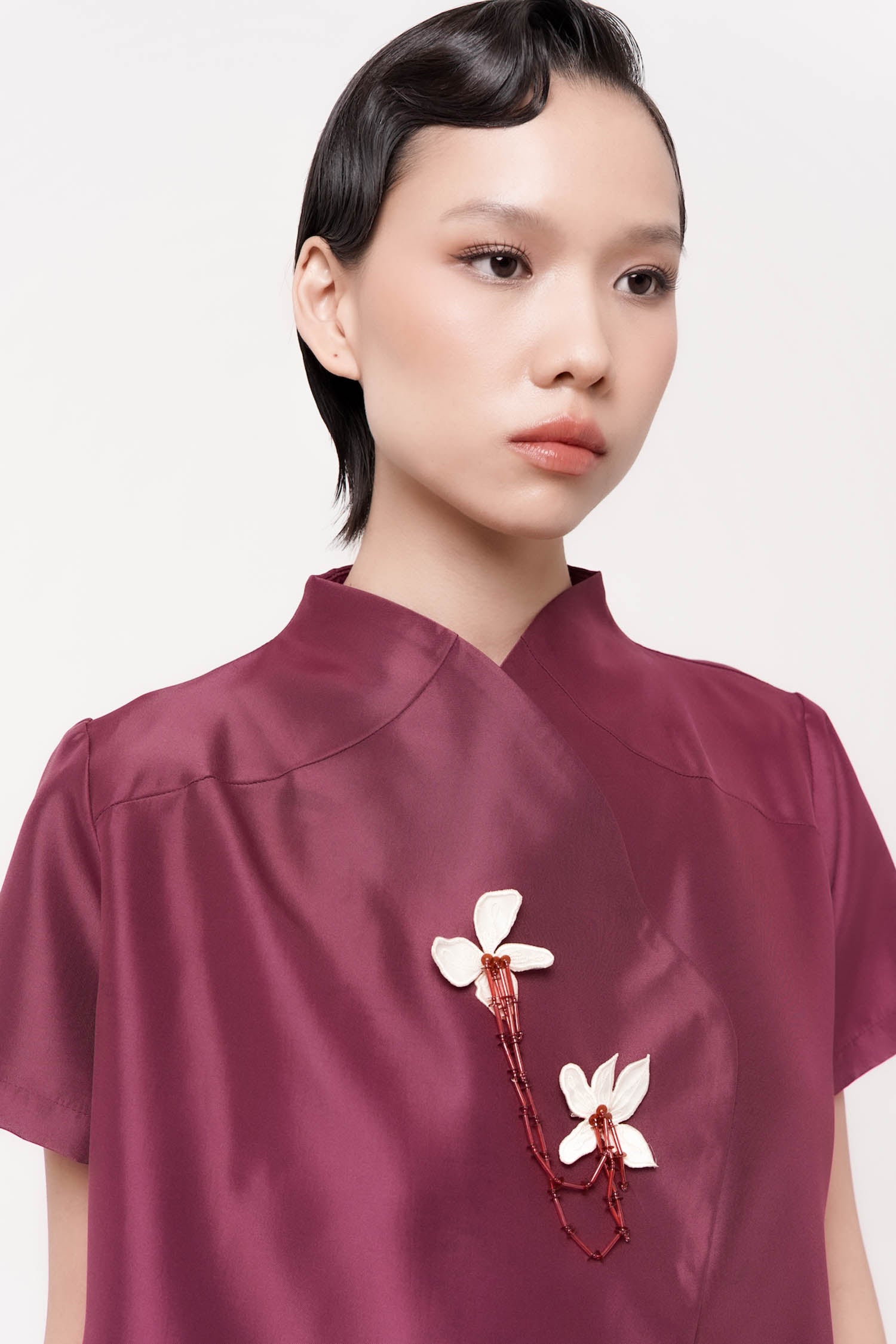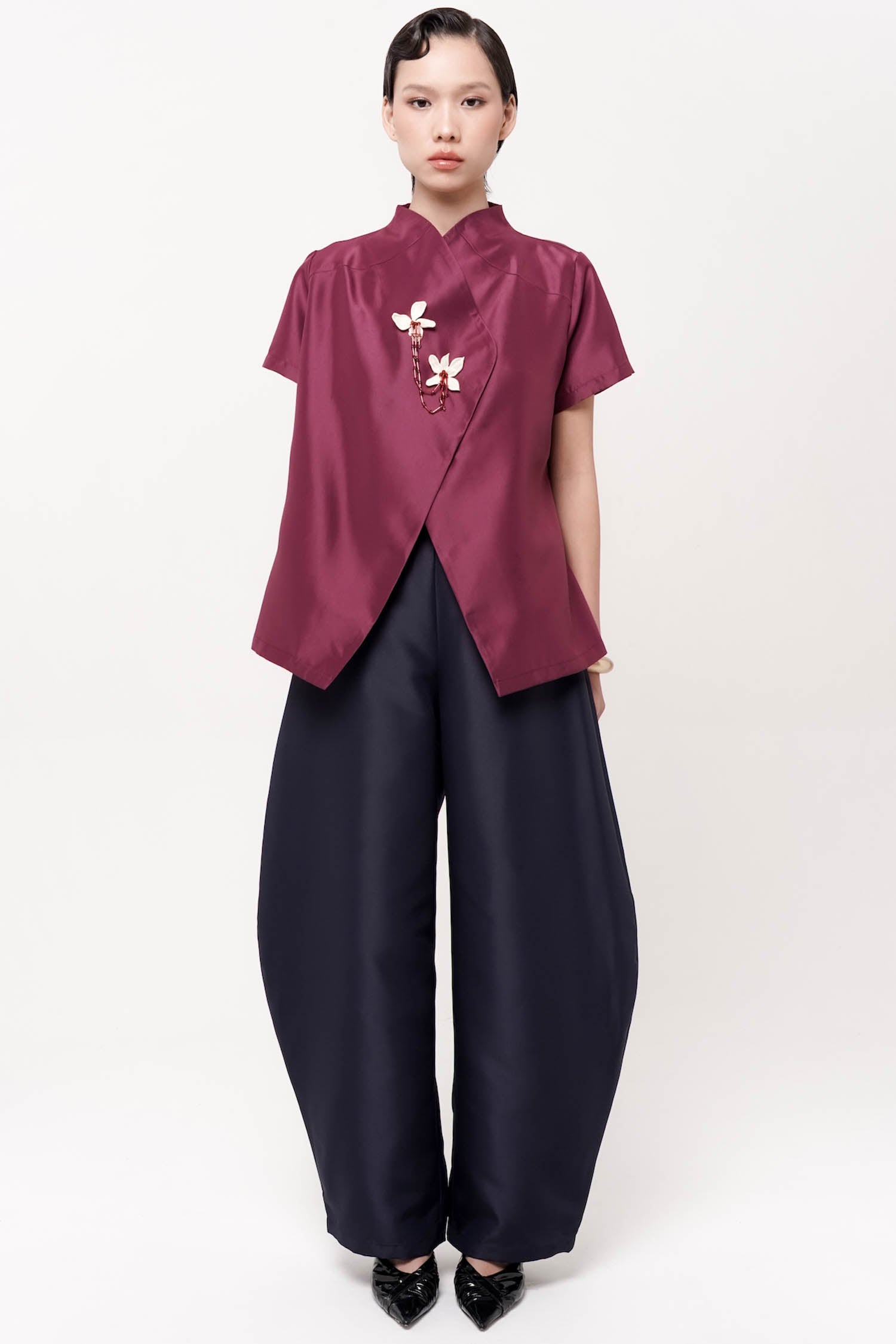 SENCHA TOP High neck top with overlap detail and brooch embroiderySIZE AND FIT INFORMATIONS-M : Bust : 102 cm | Waist...