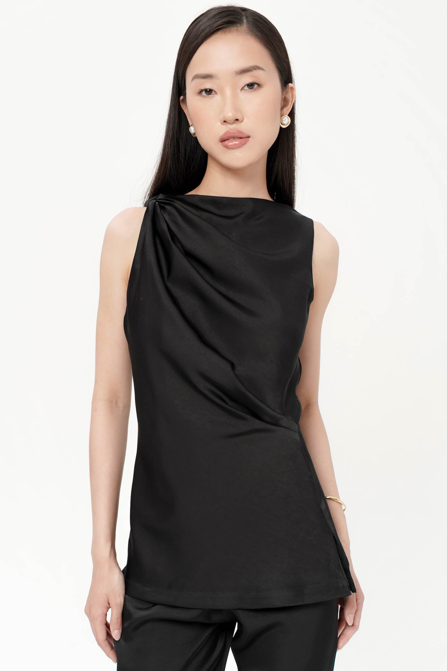 The Serena Drape Top embodies refined femininity with its fluid silhouette and artfully sculpted dra...