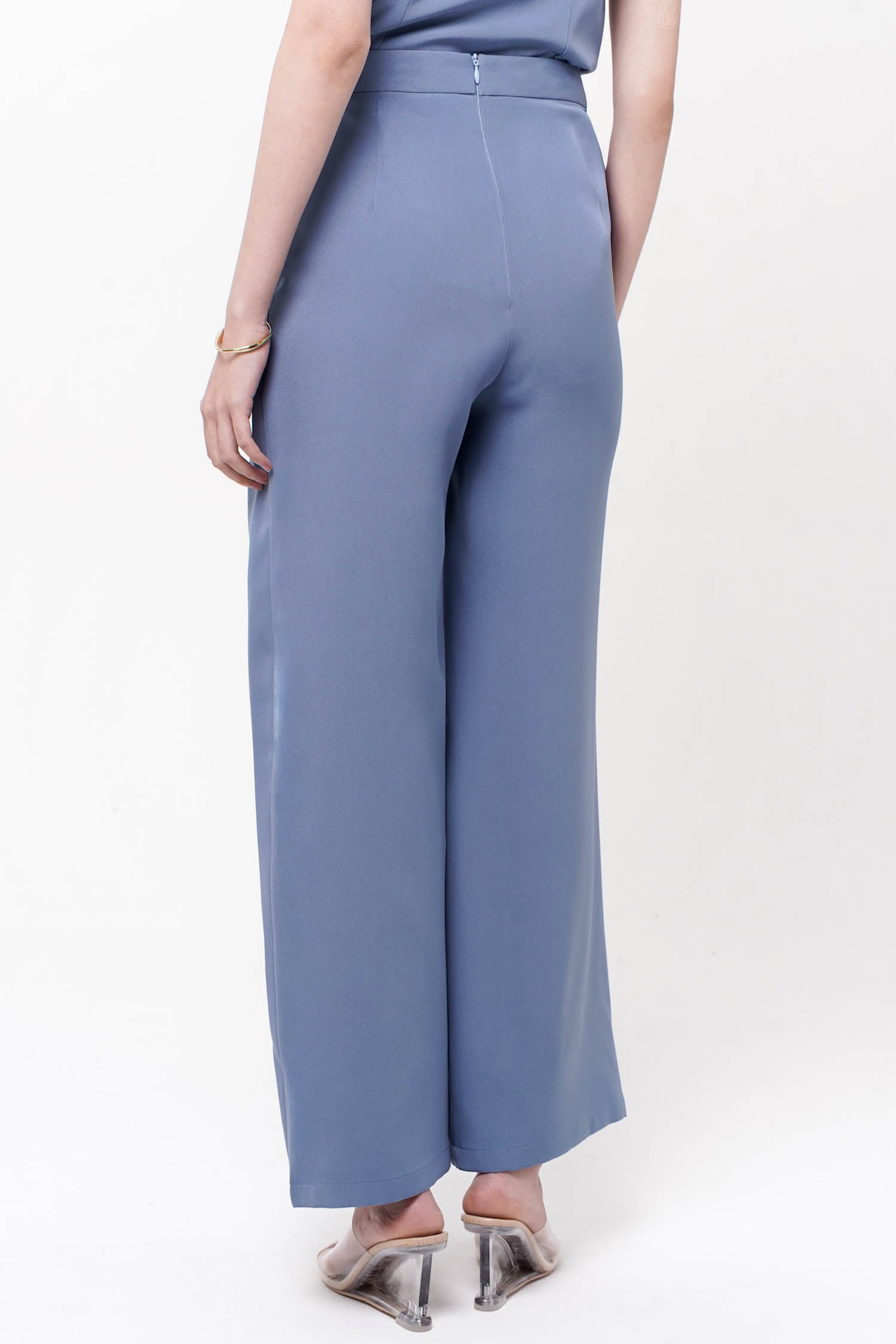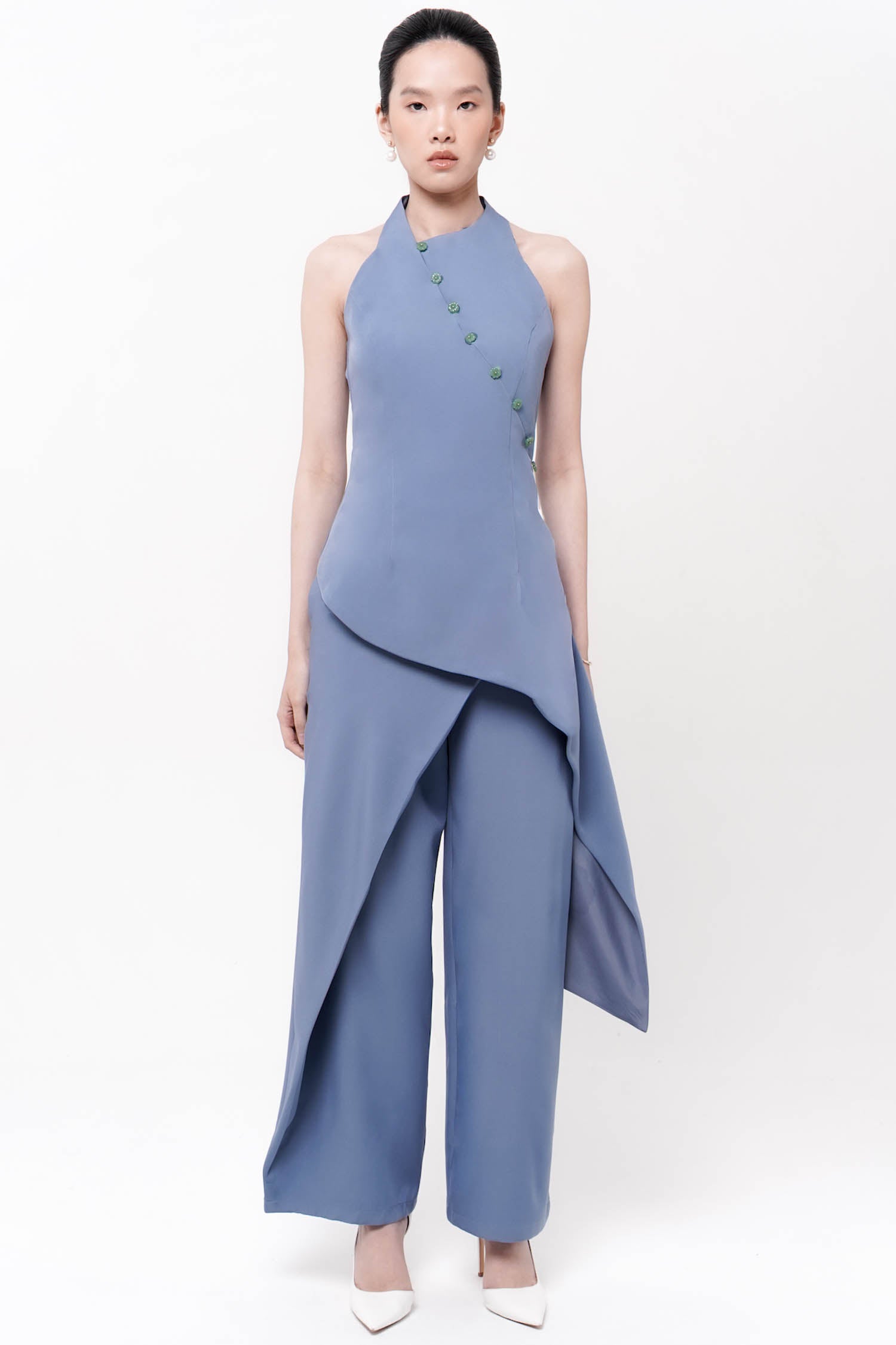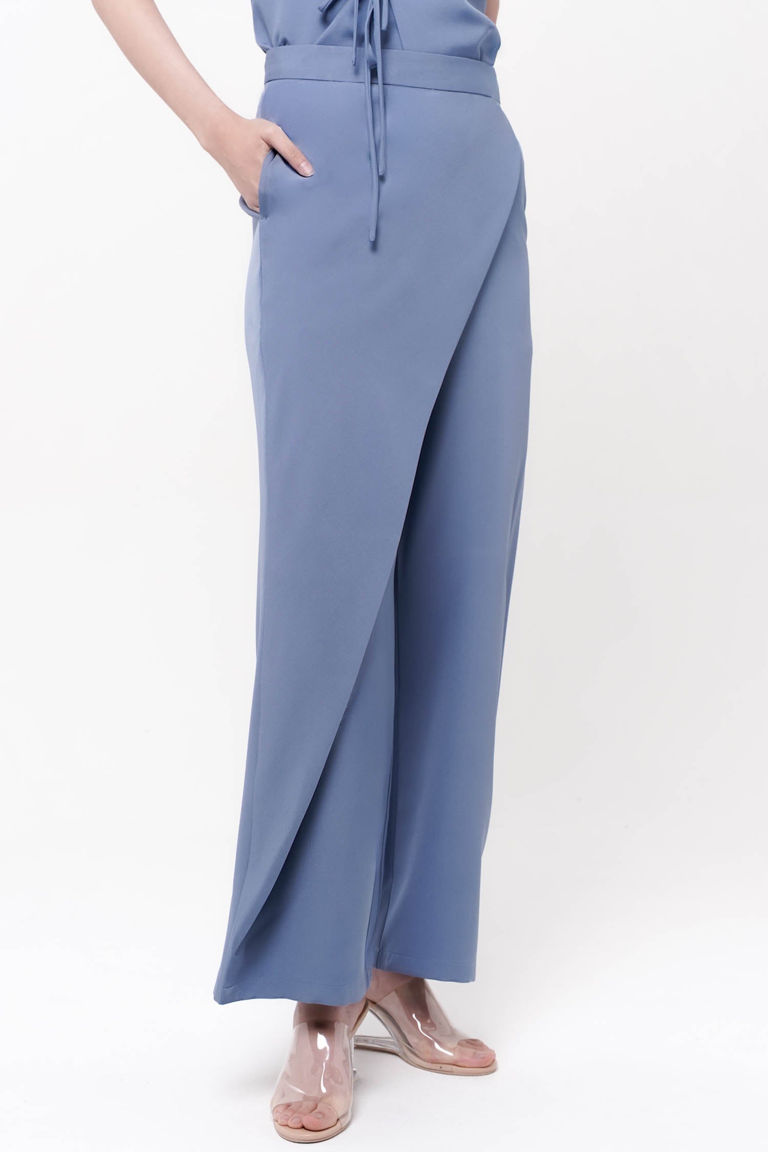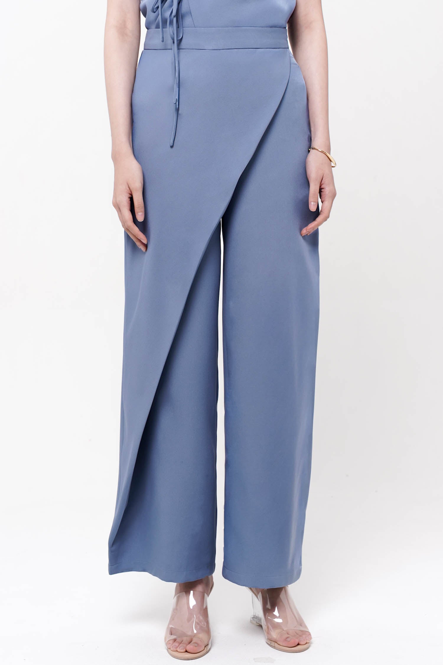 The Song Wrapped Trousers in Maroon embody modern tailoring with a refined sense of elegance, crafted from semi-wool fabric that offers a structured yet fluid drape. Designed with a distinctive wrap-front detail, these trousers create the illusion of a skirt while maintaining the ease and confidence of wide-leg pants. The high-waisted silhouette elongates the line of the body, complemented by clean seams, discreet pockets, and a polished back finish that ensures a sleek profile from every angle. Finished in a rich maroon hue, this sophisticated piece transitions seamlessly from refined daytime styling to elevated evening wear, making it a timeless addition to a curated wardrobe.