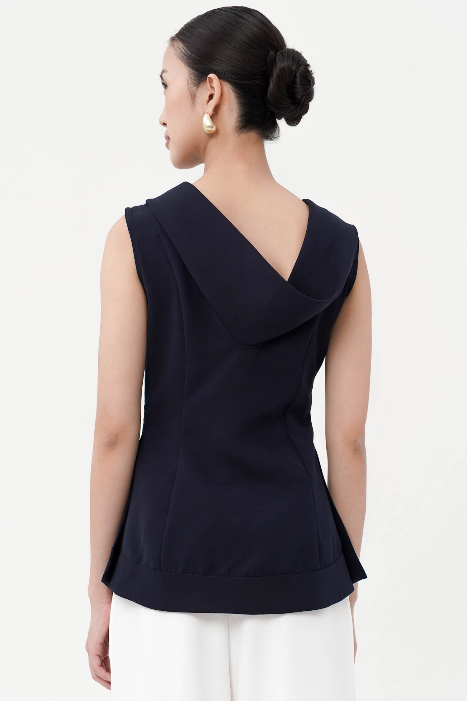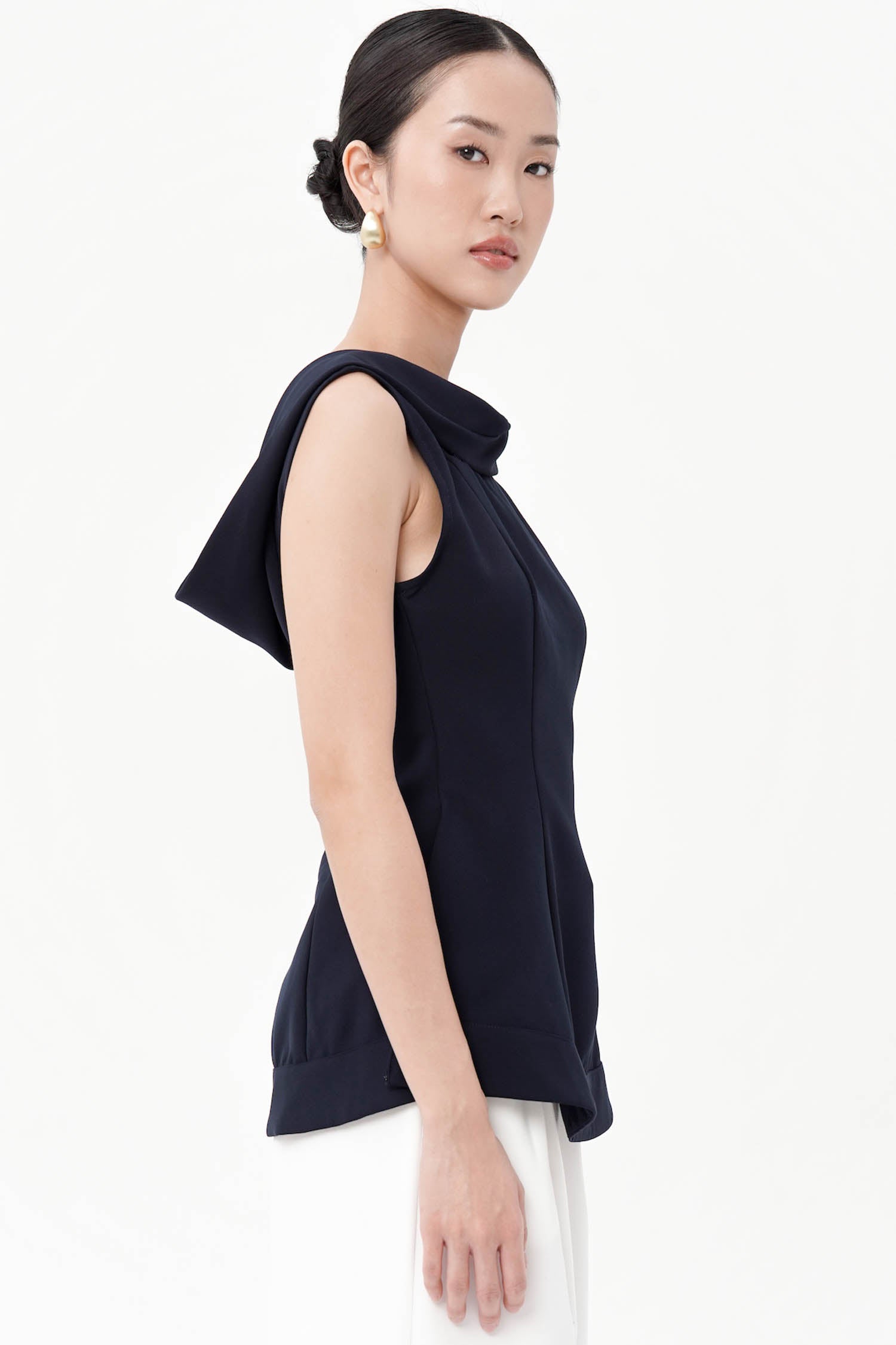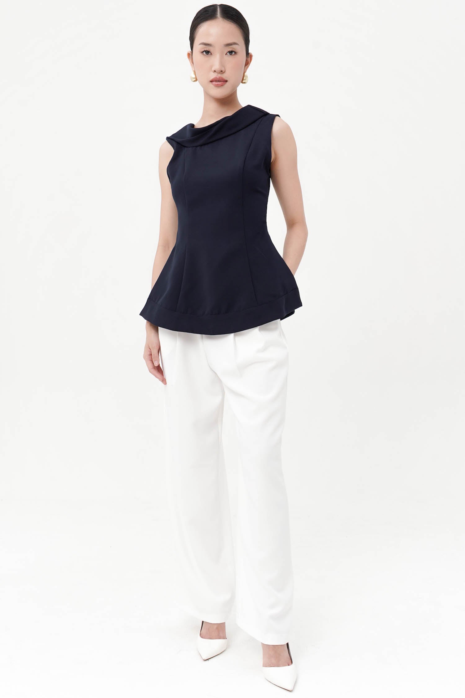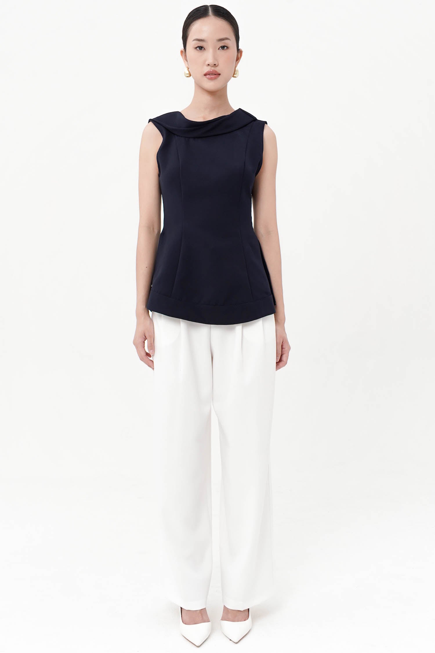 The Tacey Twist Shawl Neck Top is a refined statement piece that marries architectural elegance with modern minimalism. Tailored from premium semi wool, this sleeveless design features a sculpted silhouette with a softly flared hem that flatters the form while maintaining ease of movement. The distinctive twist shawl neckline drapes gracefully across the shoulders and back, adding depth and sophistication to its clean lines. Offered in timeless shades of charcoal and navy, this top is a versatile choice that transitions seamlessly from polished daytime ensembles to elevated evening looks.