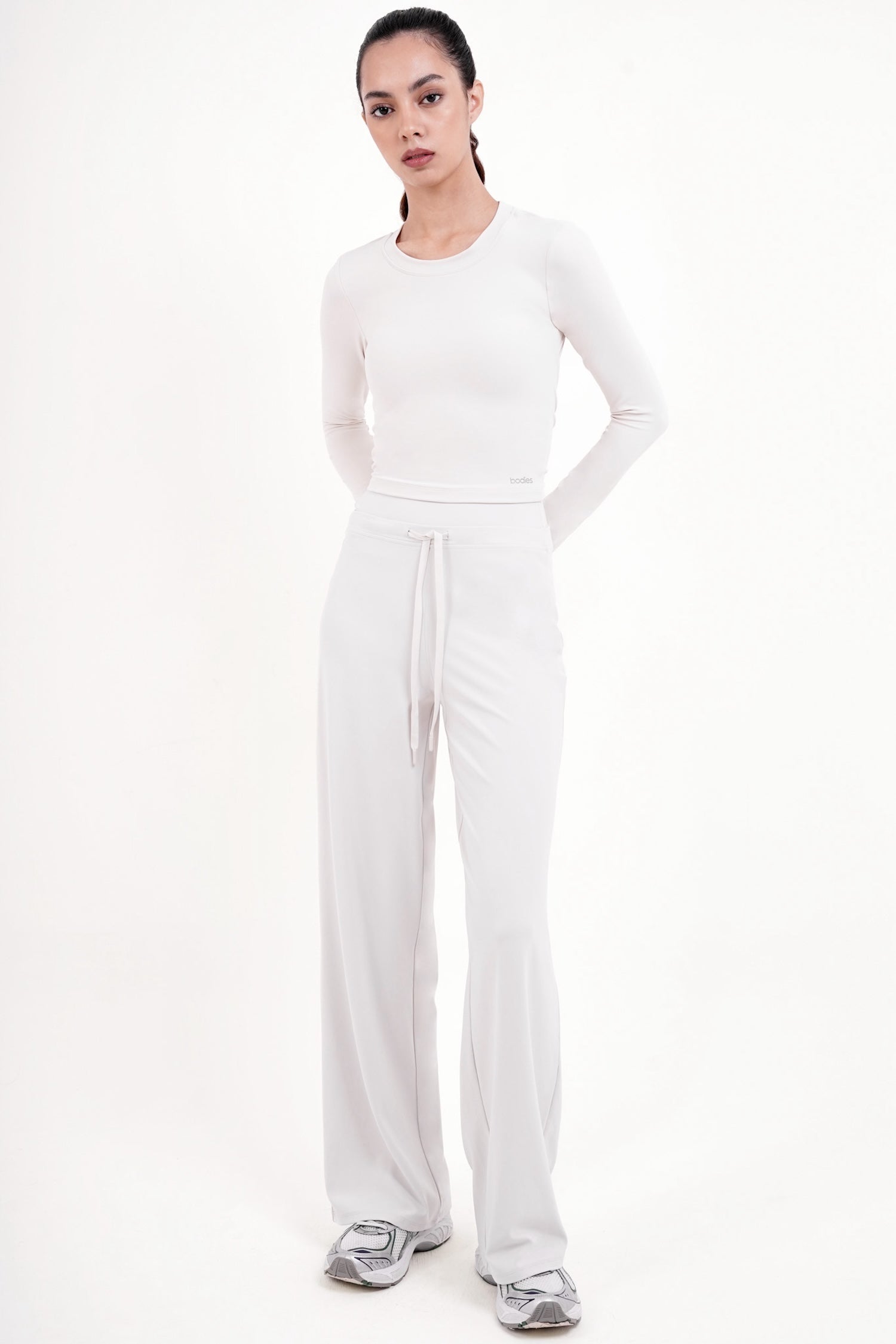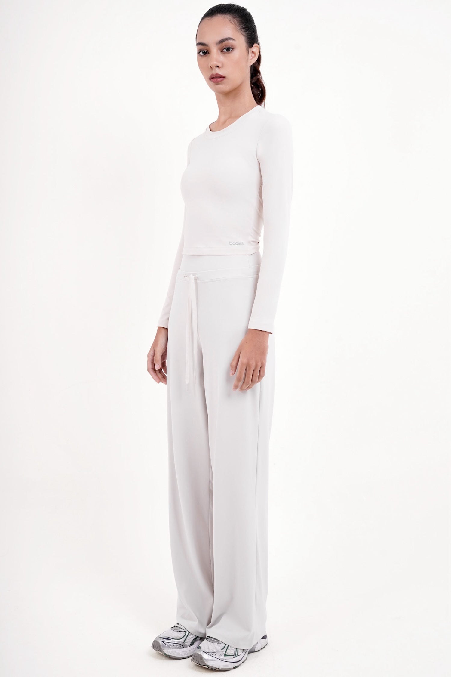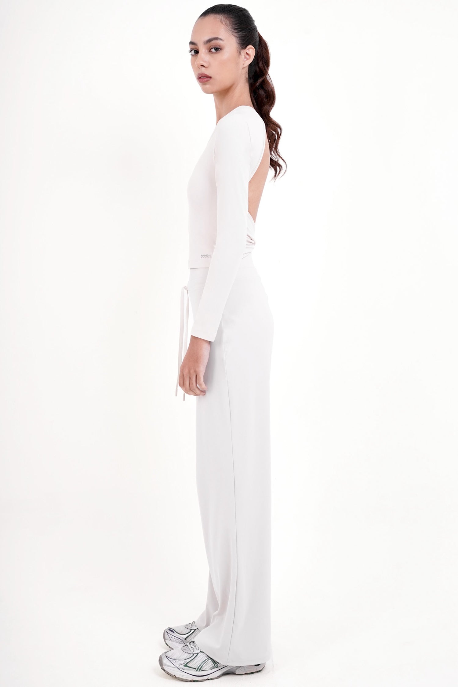 Elevate your activewear collection with the Twist-Back Long Sleeve Bra Top in Eggshell, a chic and functional addition designed for your exercise routine. This versatile bra top is perfect for workouts, lounging, or a casual day out.