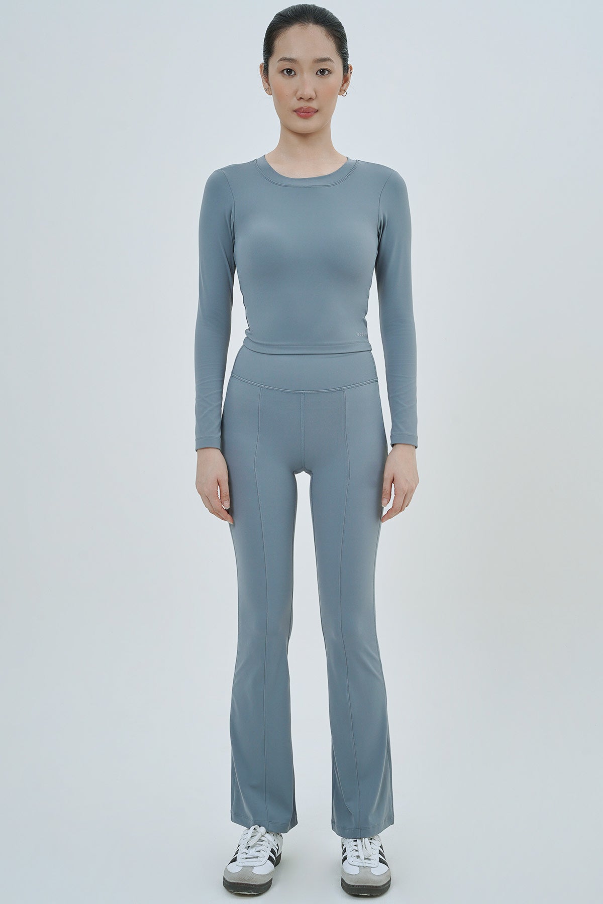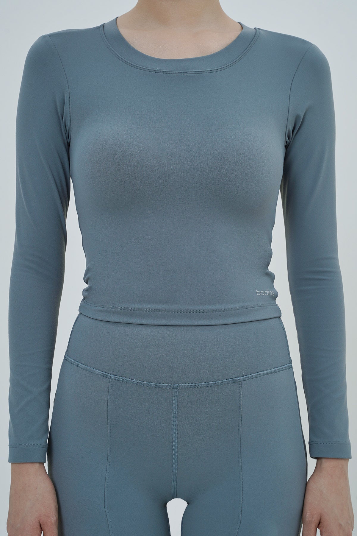 Elevate your activewear collection with the Twist-Back Long Sleeve Bra Top in Steel Blue, a chic and functional addition designed for your exercise routine. This versatile bra top is perfect for workouts, lounging, or a casual day out.