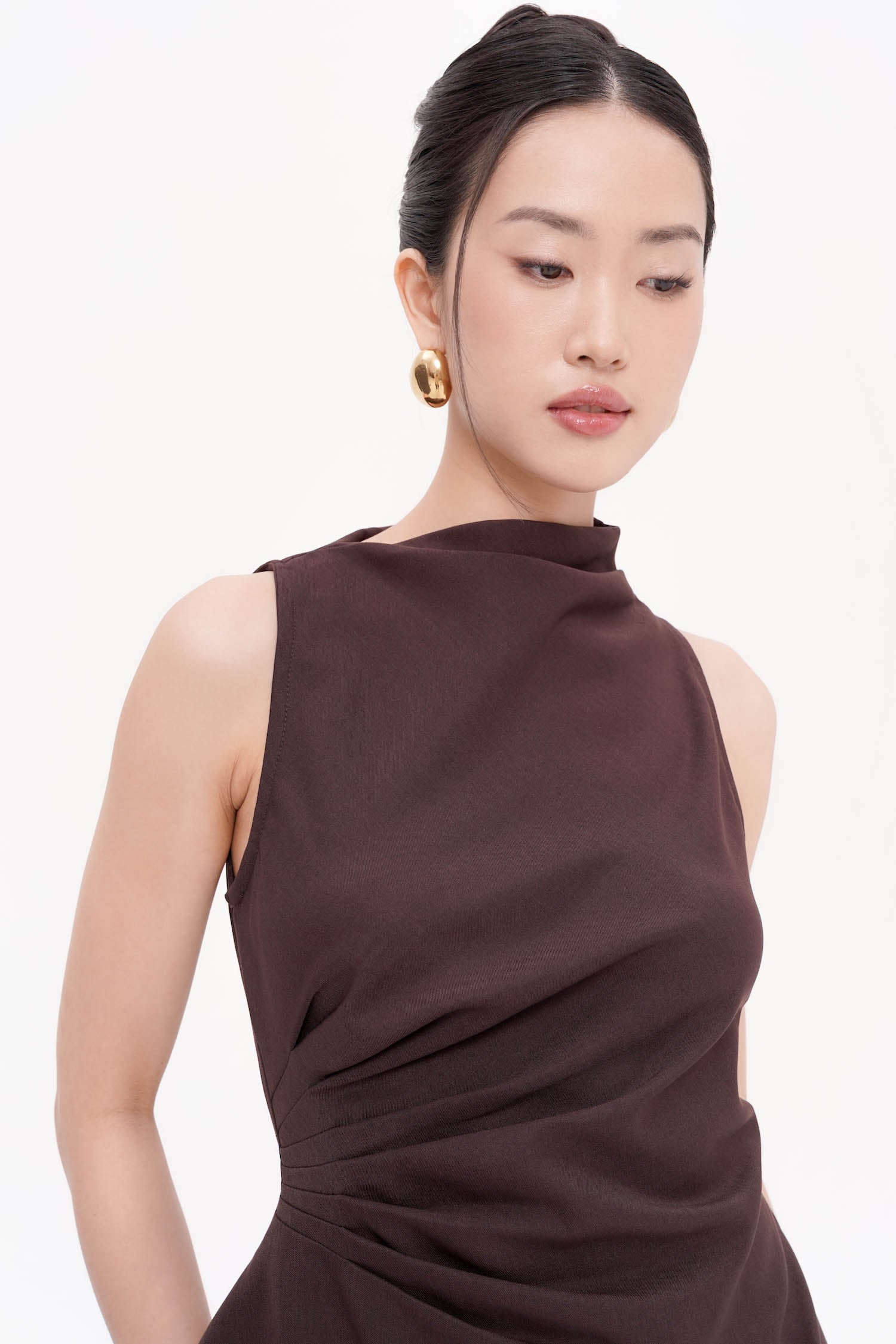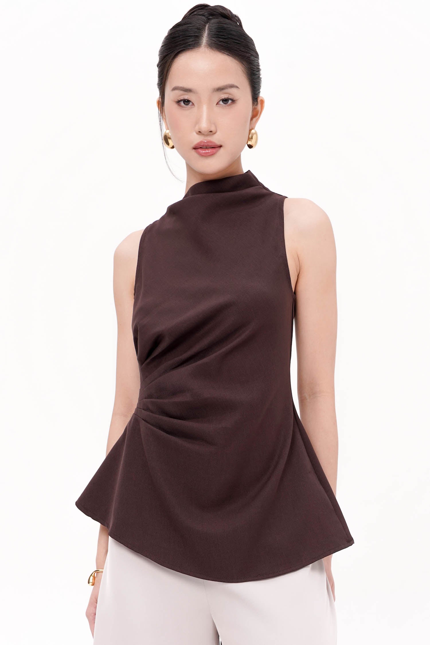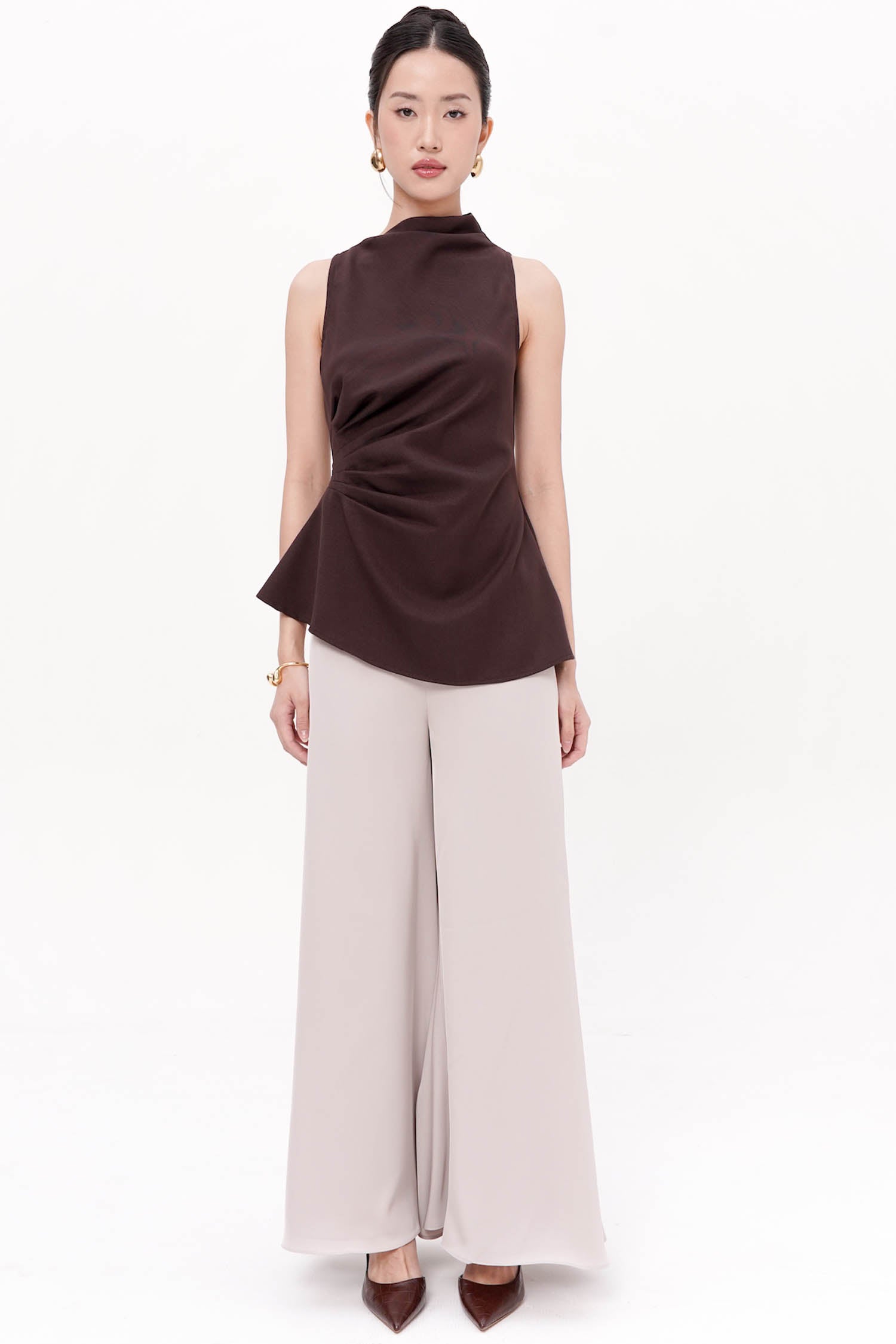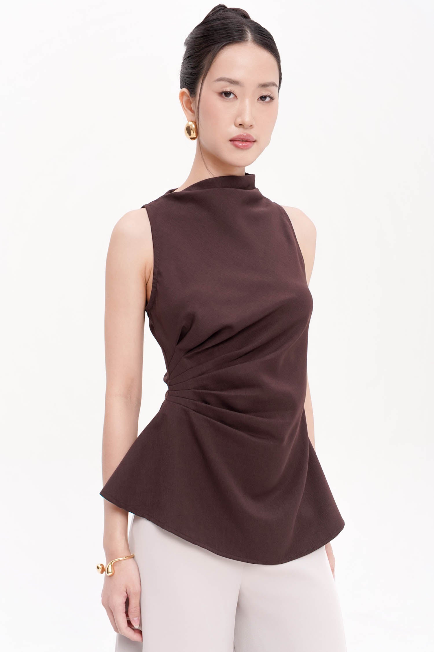 A seamless fusion of modernity and grace, the Vailla Cinched Top captivates with its sculptural draping and asymmetrical hem. Designed in luxurious semi-wool fabric, it features artful side ruching that accentuates the waist, creating a flattering, form-enhancing effect. Available in Grey and Ash Brown, this timeless piece adds an air of understated sophistication to any ensemble.