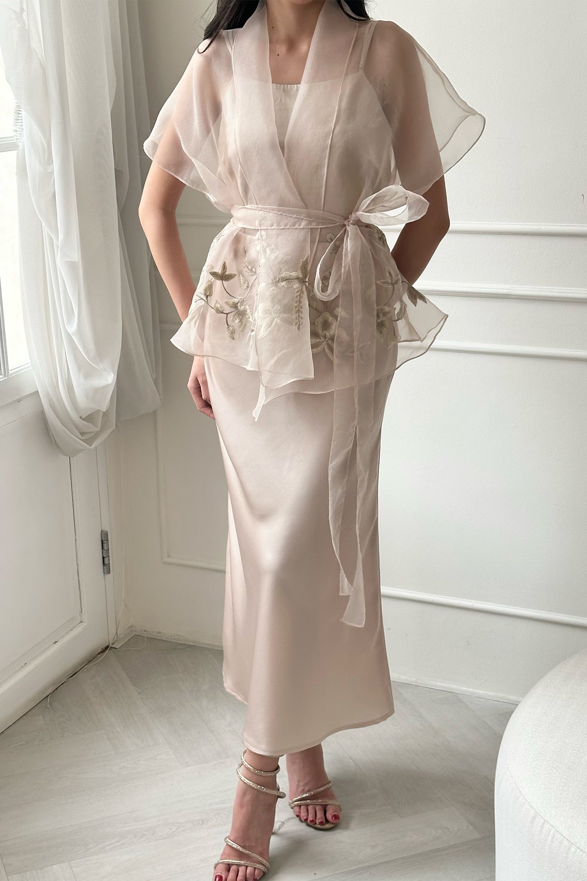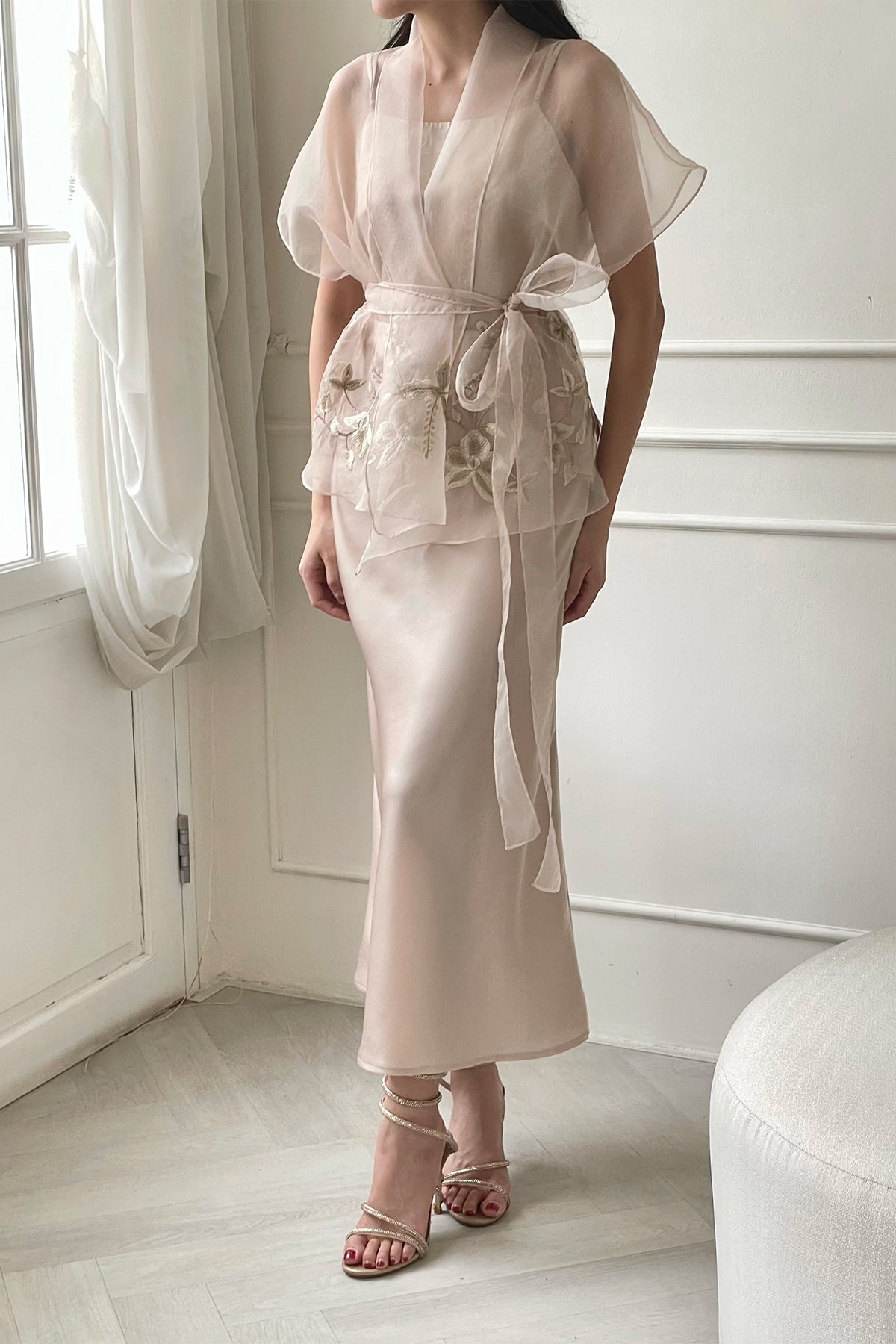 The Vina Top with Flare Skirt in Nude offers a sophisticated silhouette perfect for special occasions. The sleek top pairs seamlessly with the flowing skirt, creating an elegant ensemble that highlights refined style and grace. Its subtle nude shade adds a timeless touch, making it an ideal choice for events where understated elegance is essential.