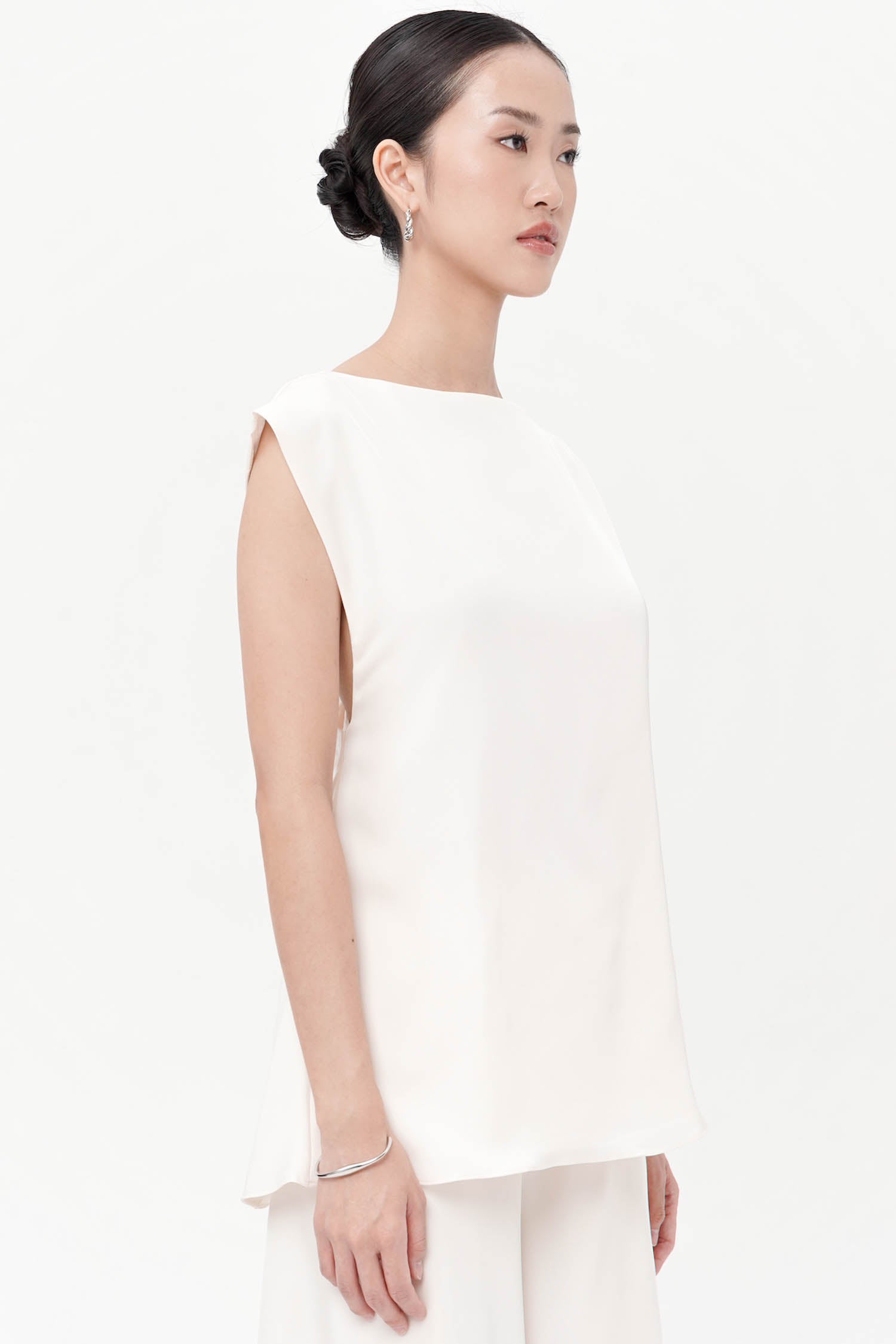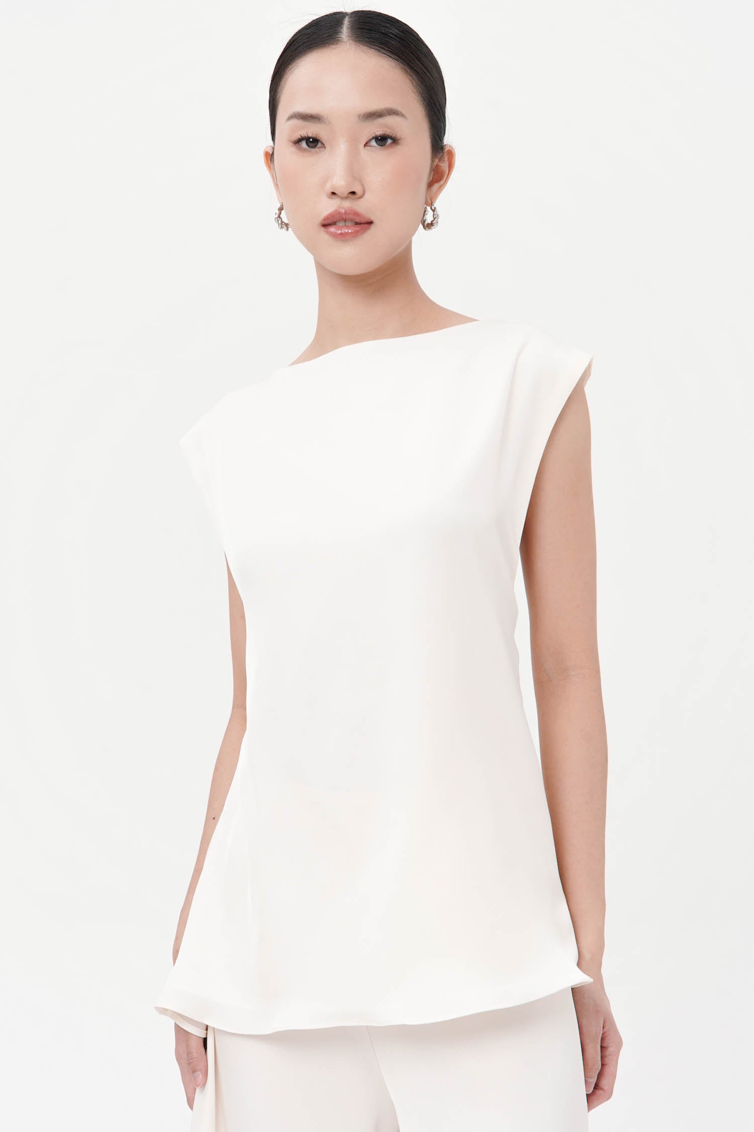 The Ailsa Twist Back Top embodies understated sophistication with a modern twist. Crafted from smooth twill, its clean front silhouette contrasts beautifully with the artful draped twist at the back—an unexpected detail that reveals subtle allure and effortless grace. The structured shoulders and fluid hemline create a refined balance between elegance and ease, making it a versatile piece that transitions seamlessly from day to evening. Available in Porcelain and Espresso, the Ailsa Top redefines minimalism with an architectural edge.