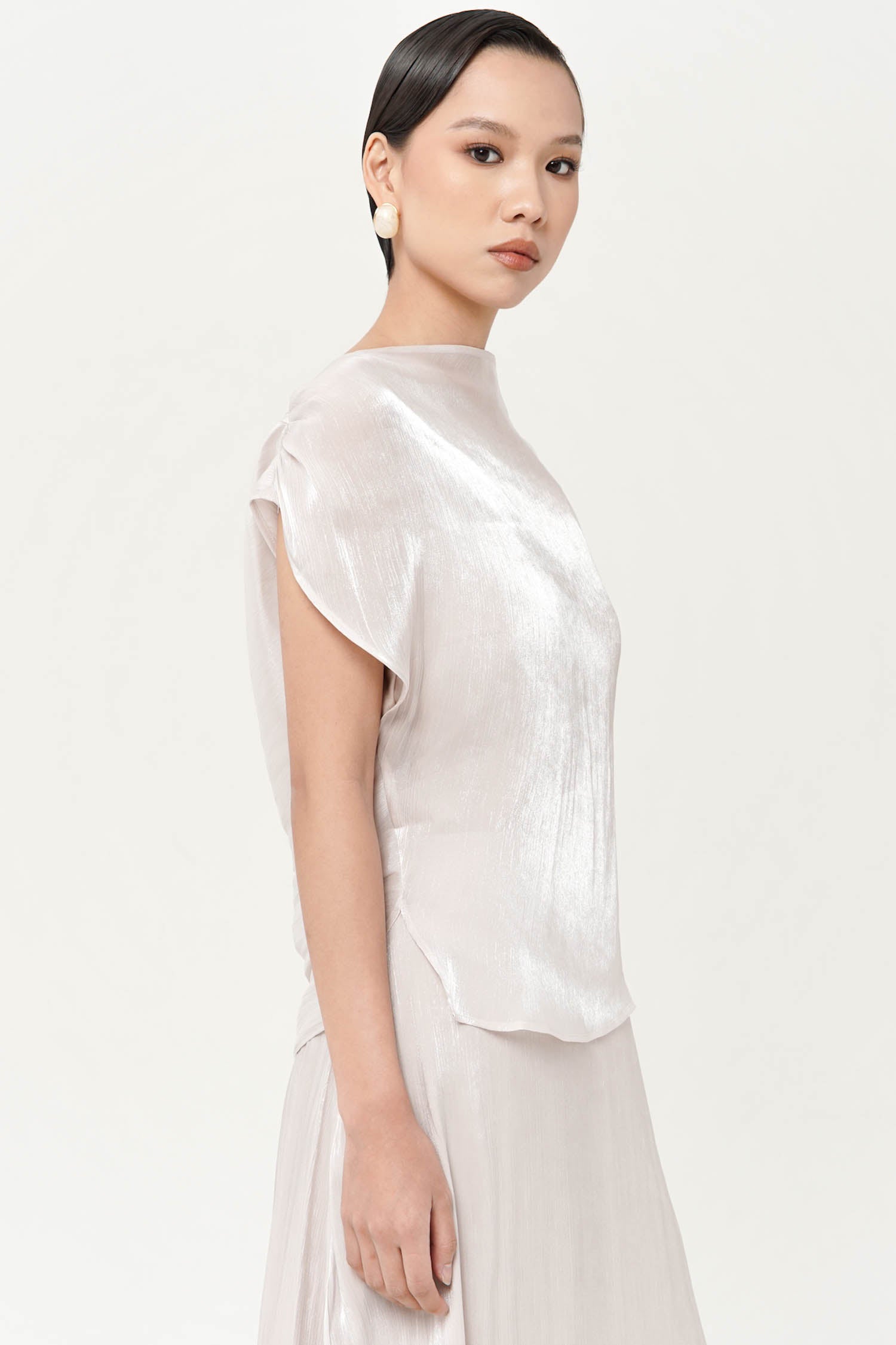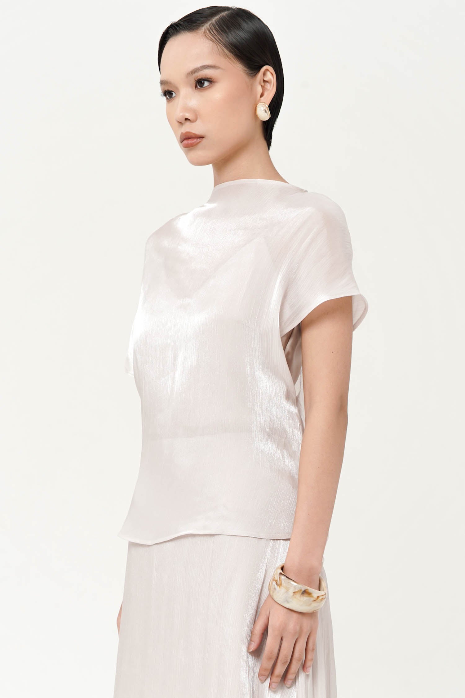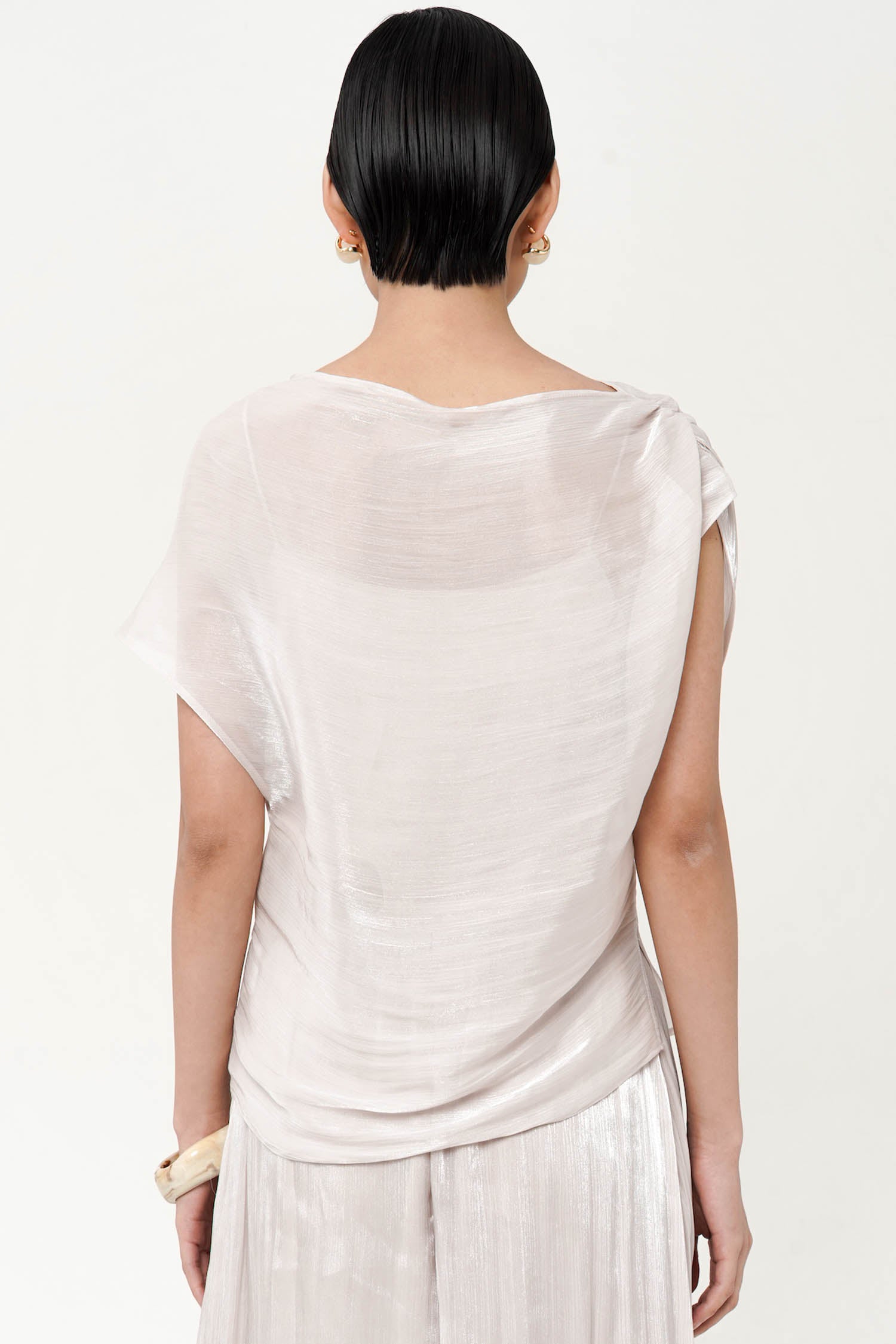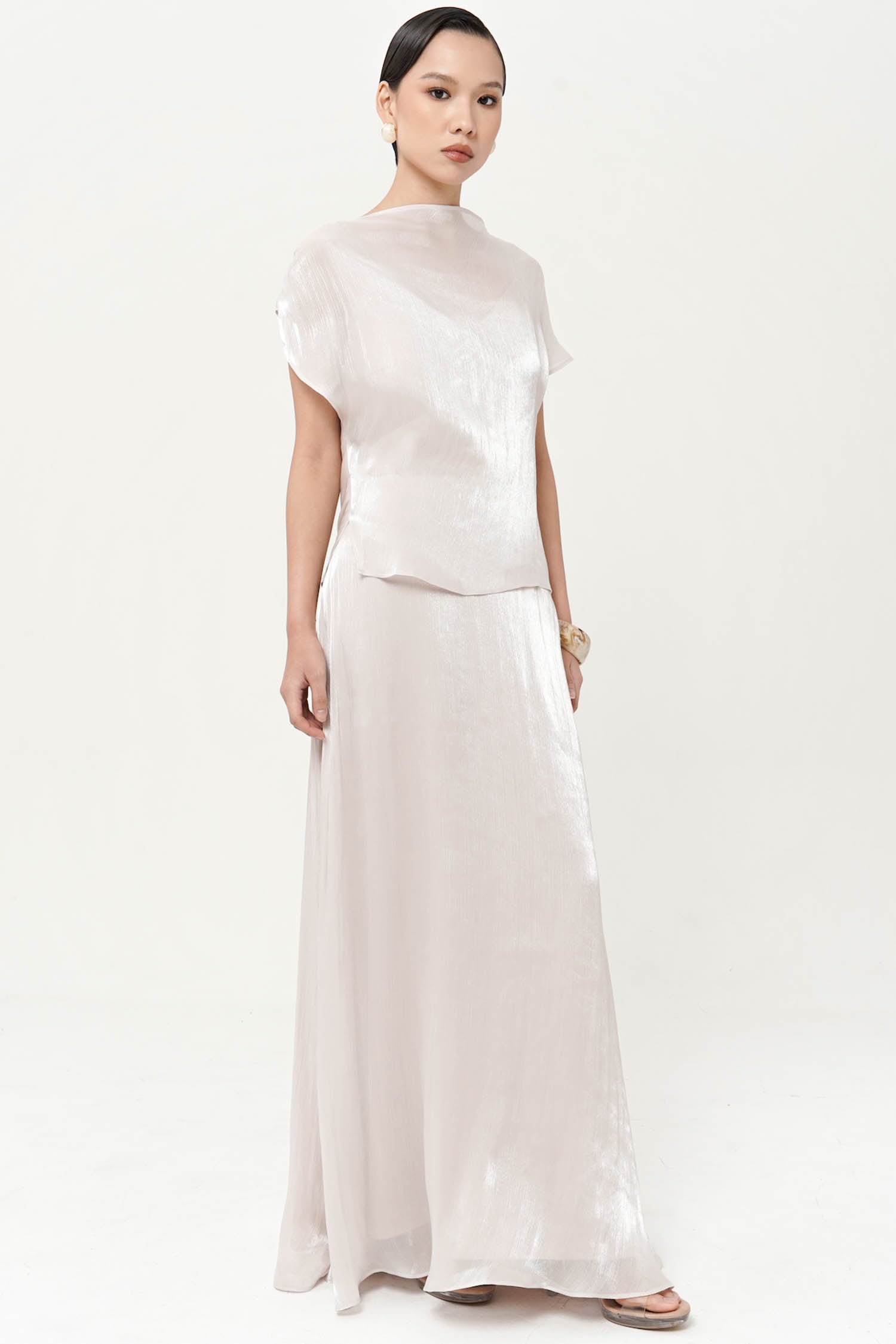 The Altair Two-Piece Top is a study in fluid refinement, crafted from silk shimmer polyester t...