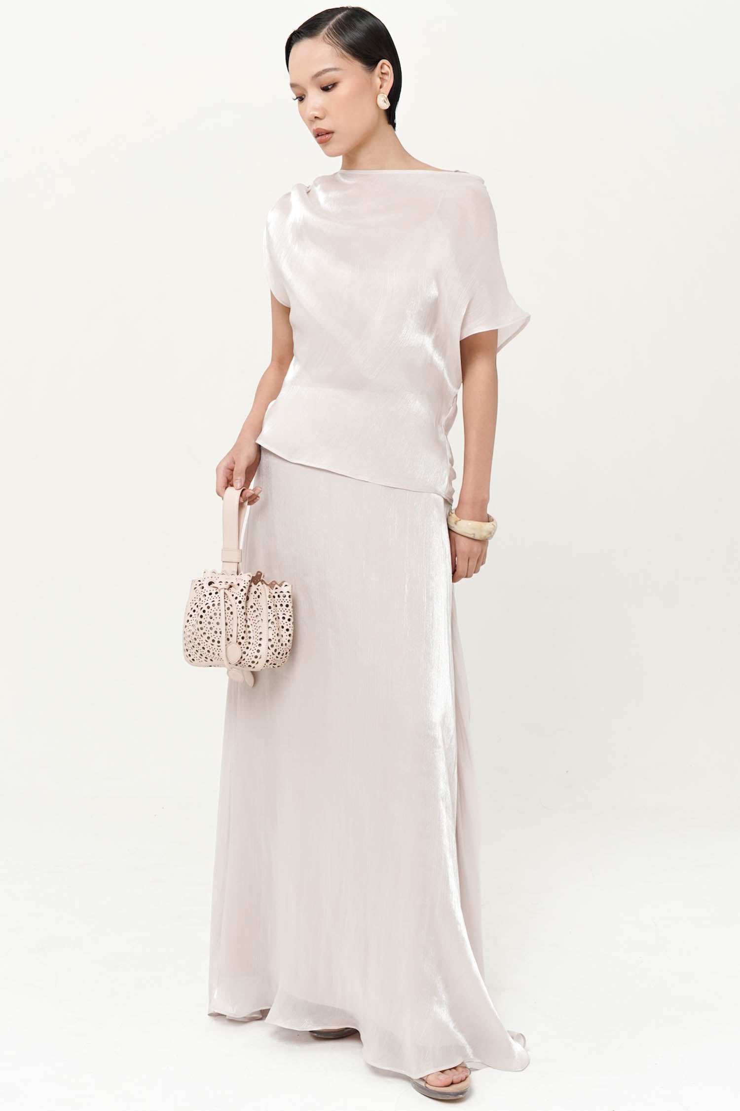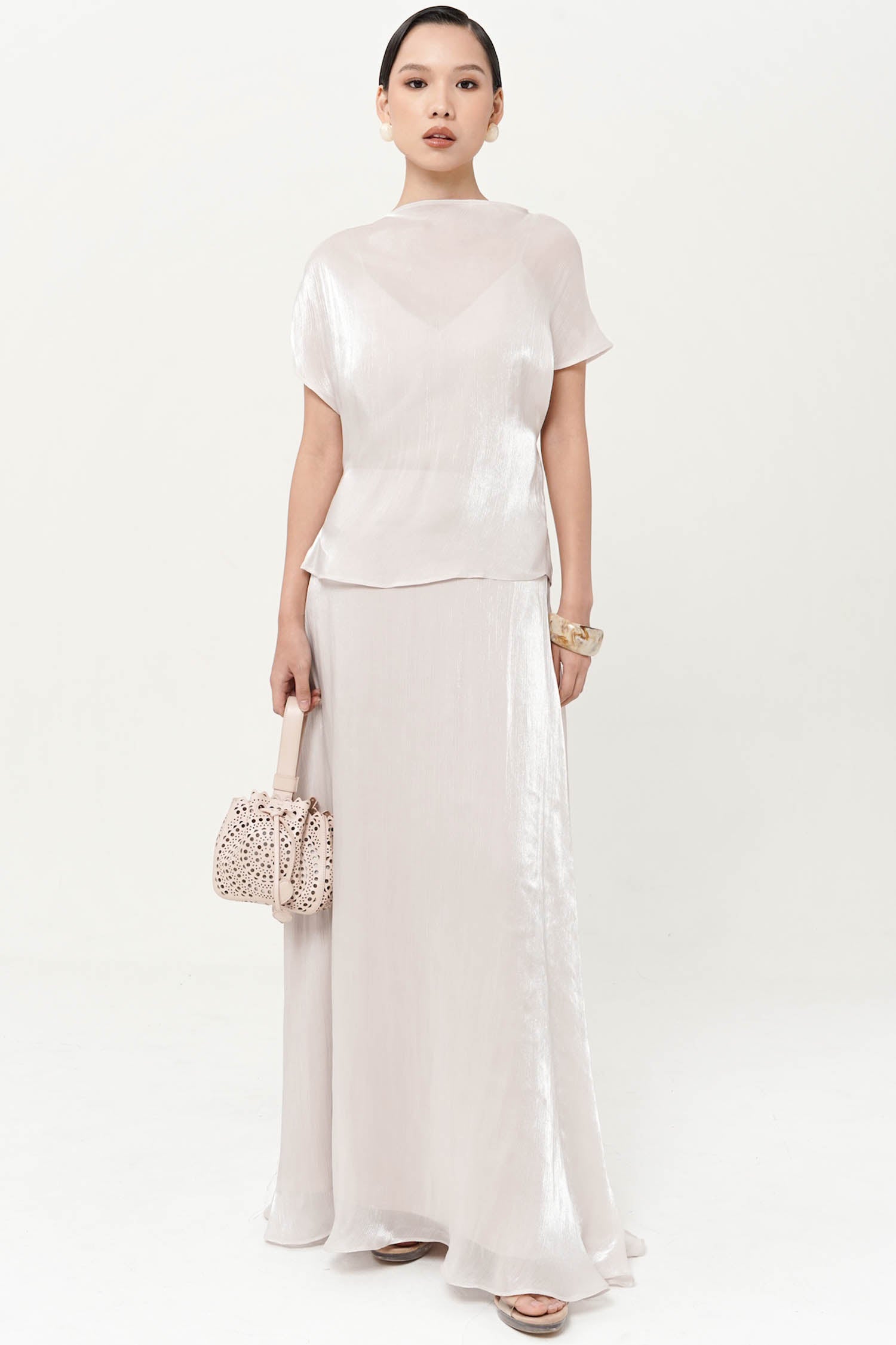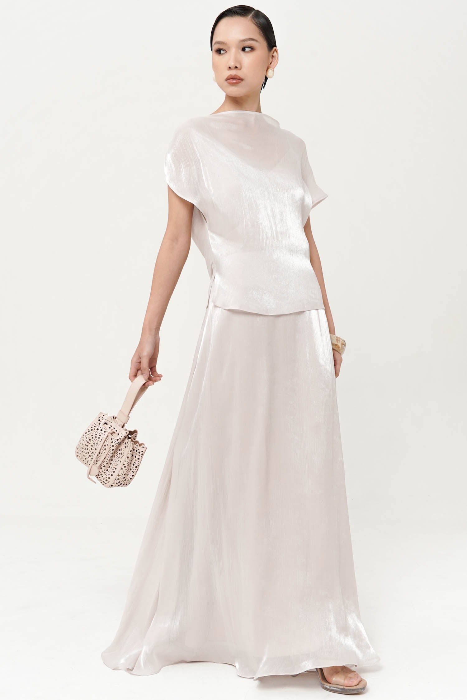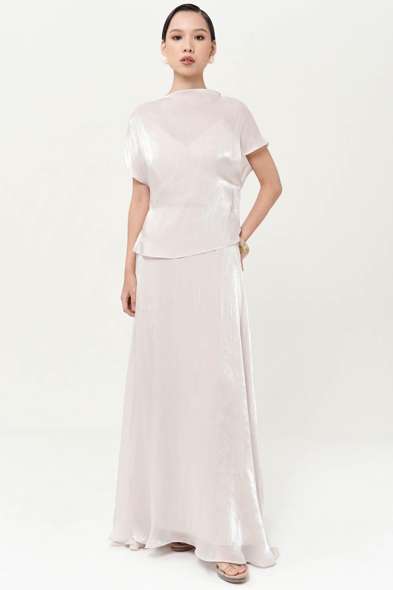 The Altair Two-Piece Top is a study in fluid refinement, crafted from silk shimmer polyester t...
