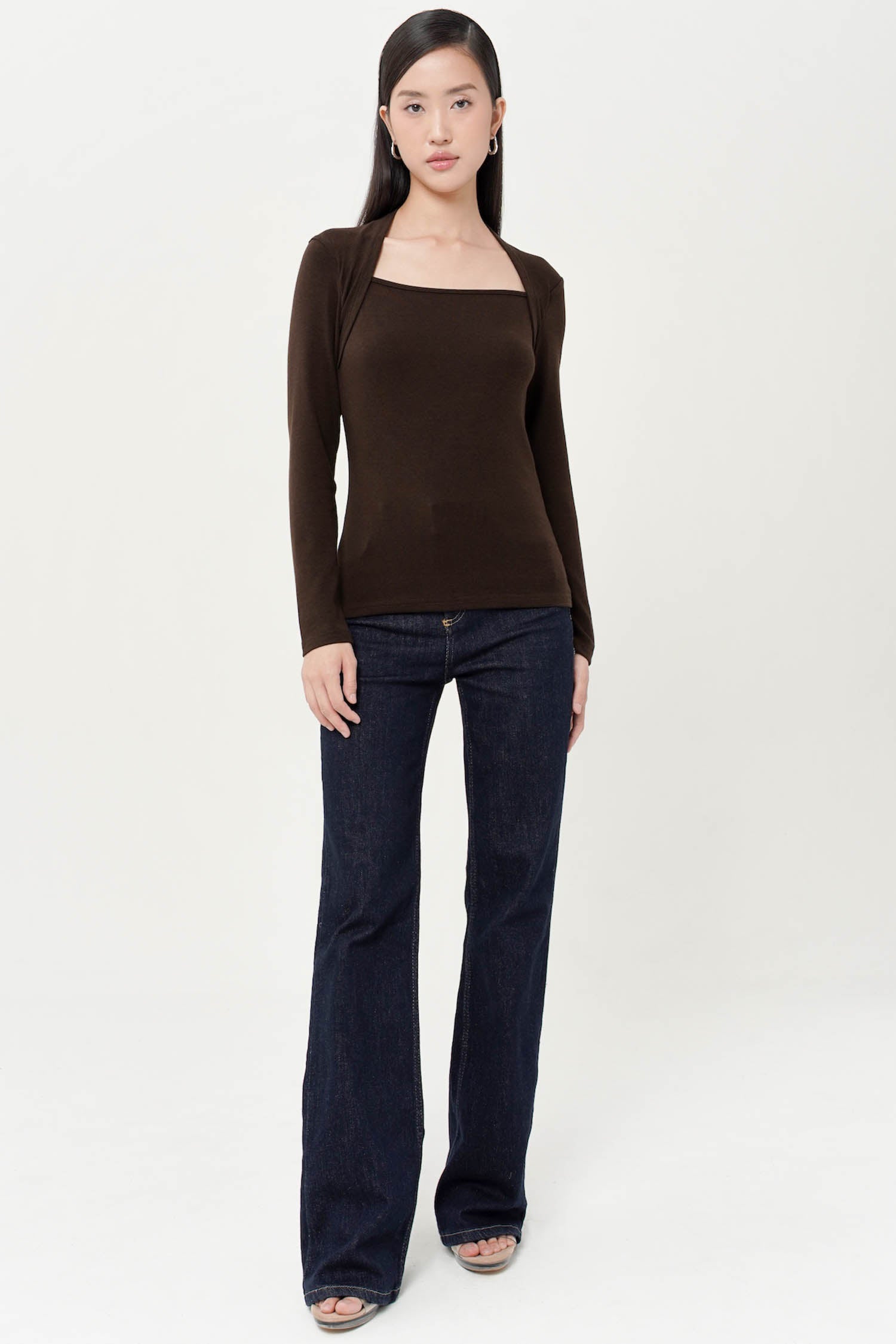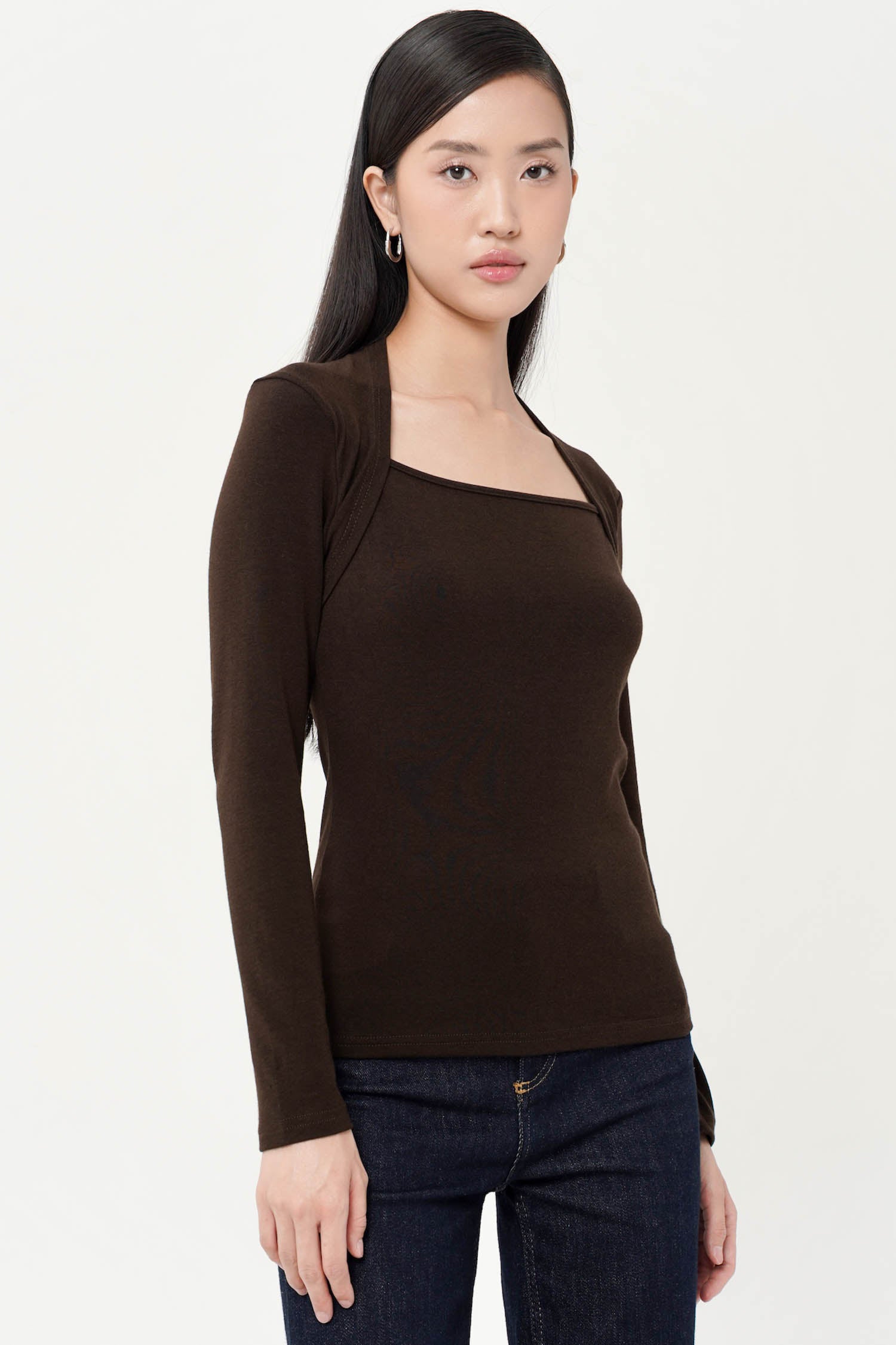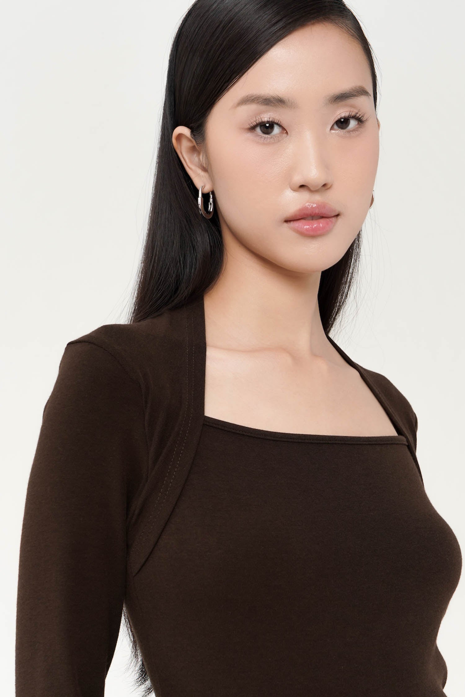 The Alteza Long Sleeve Top exudes modern minimalism with a refined silhouette that elevates everyday wear. Designed with a sleek square neckline framed by a structured bolero-inspired overlay, this piece strikes a balance between contemporary edge and timeless elegance. Crafted from soft polyester, it offers a flattering fit that transitions seamlessly from casual sophistication to elevated styling. Available in versatile Black, understated Taupe, and rich Espresso, the Alteza Top is a wardrobe essential that embodies effortless chic.
