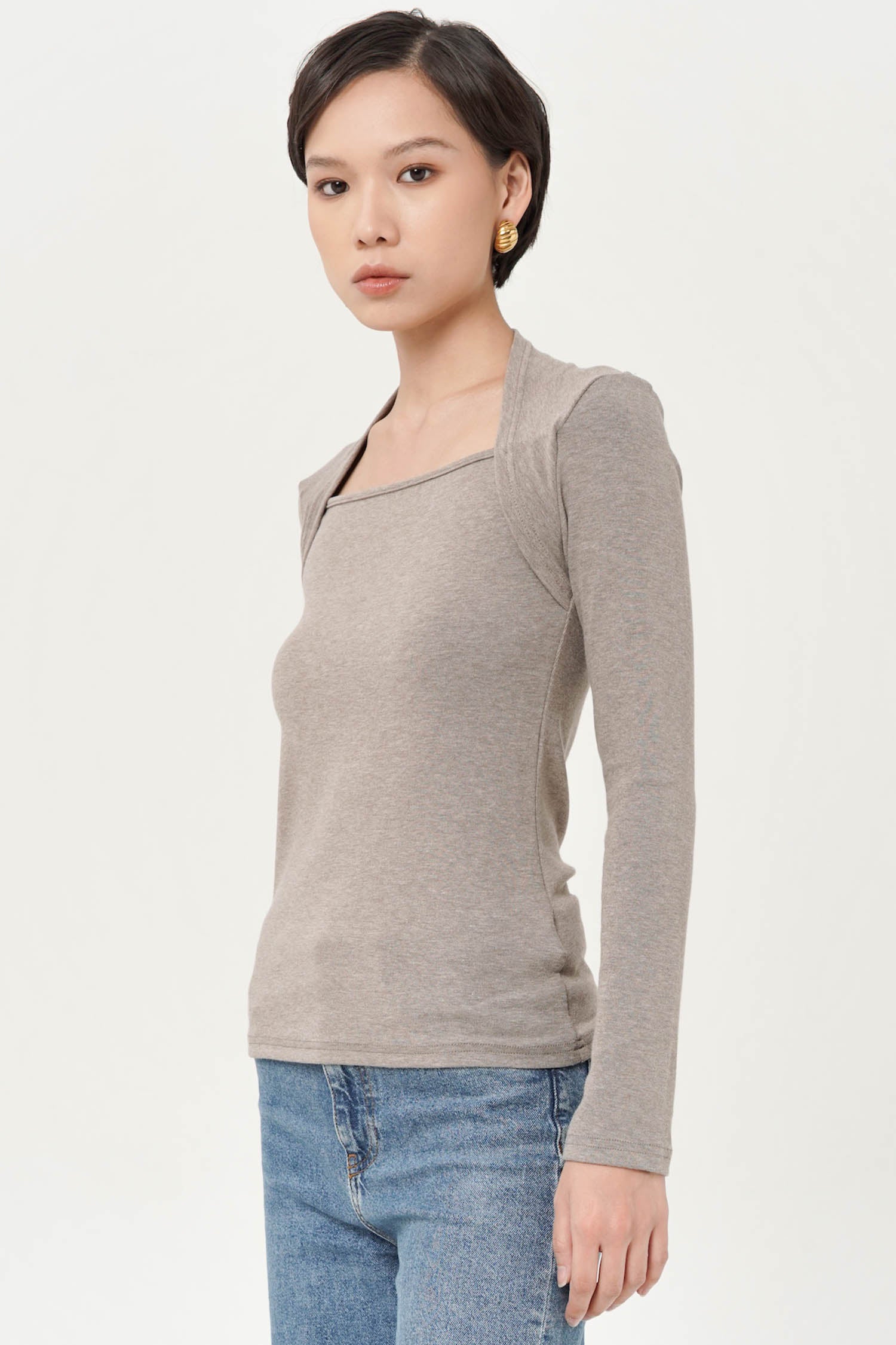 The Alteza Long Sleeve Top exudes modern minimalism with a refined silhouette that elevates everyday wear. Designed with a sleek square neckline framed by a structured bolero-inspired overlay, this piece strikes a balance between contemporary edge and timeless elegance. Crafted from soft polyester, it offers a flattering fit that transitions seamlessly from casual sophistication to elevated styling. Available in versatile Black, understated Taupe, and rich Espresso, the Alteza Top is a wardrobe essential that embodies effortless chic.