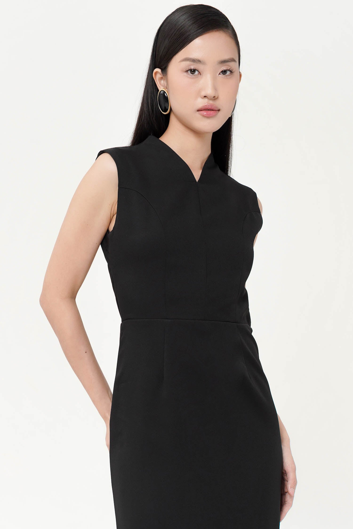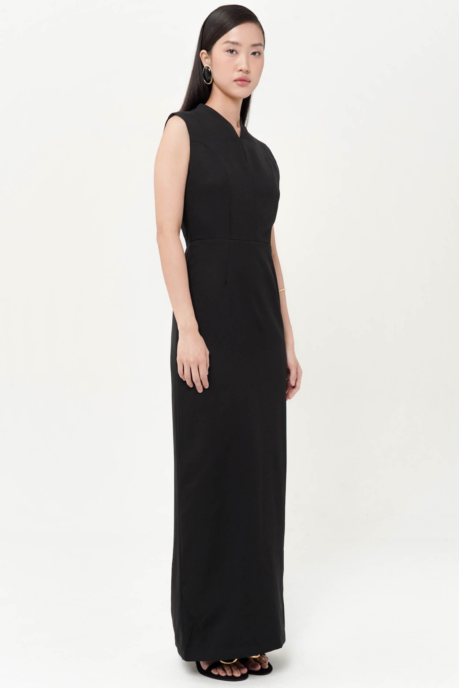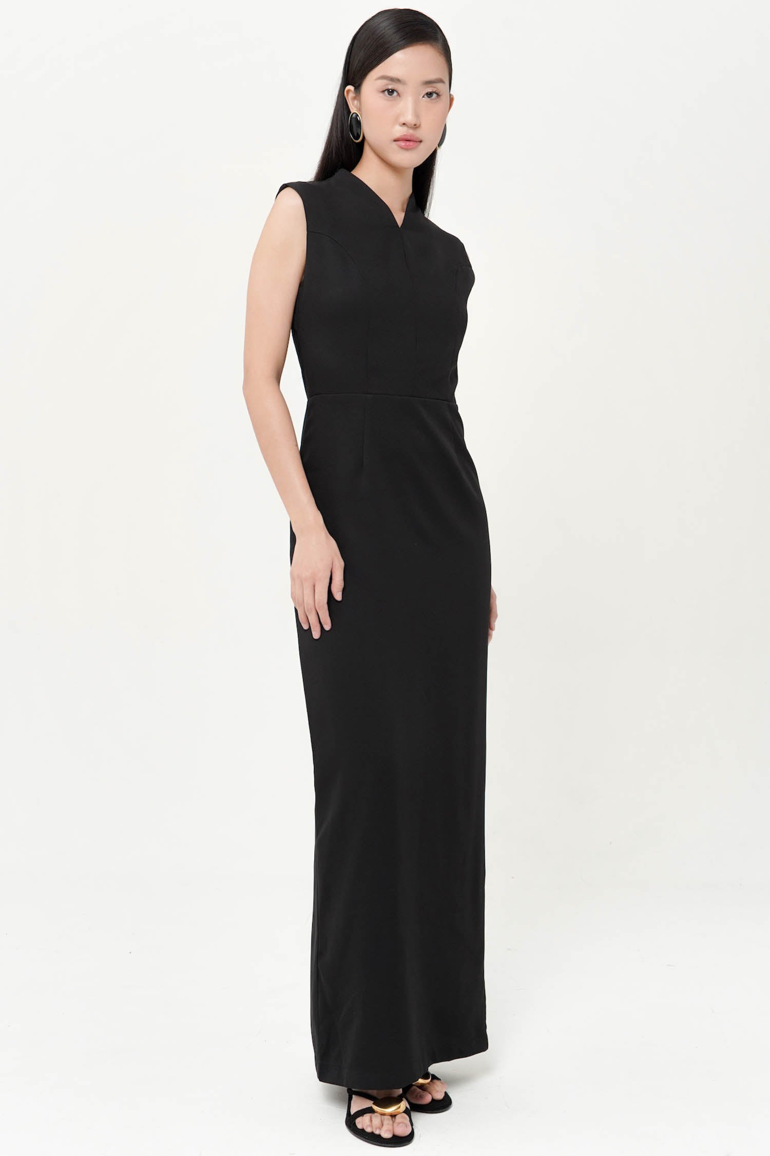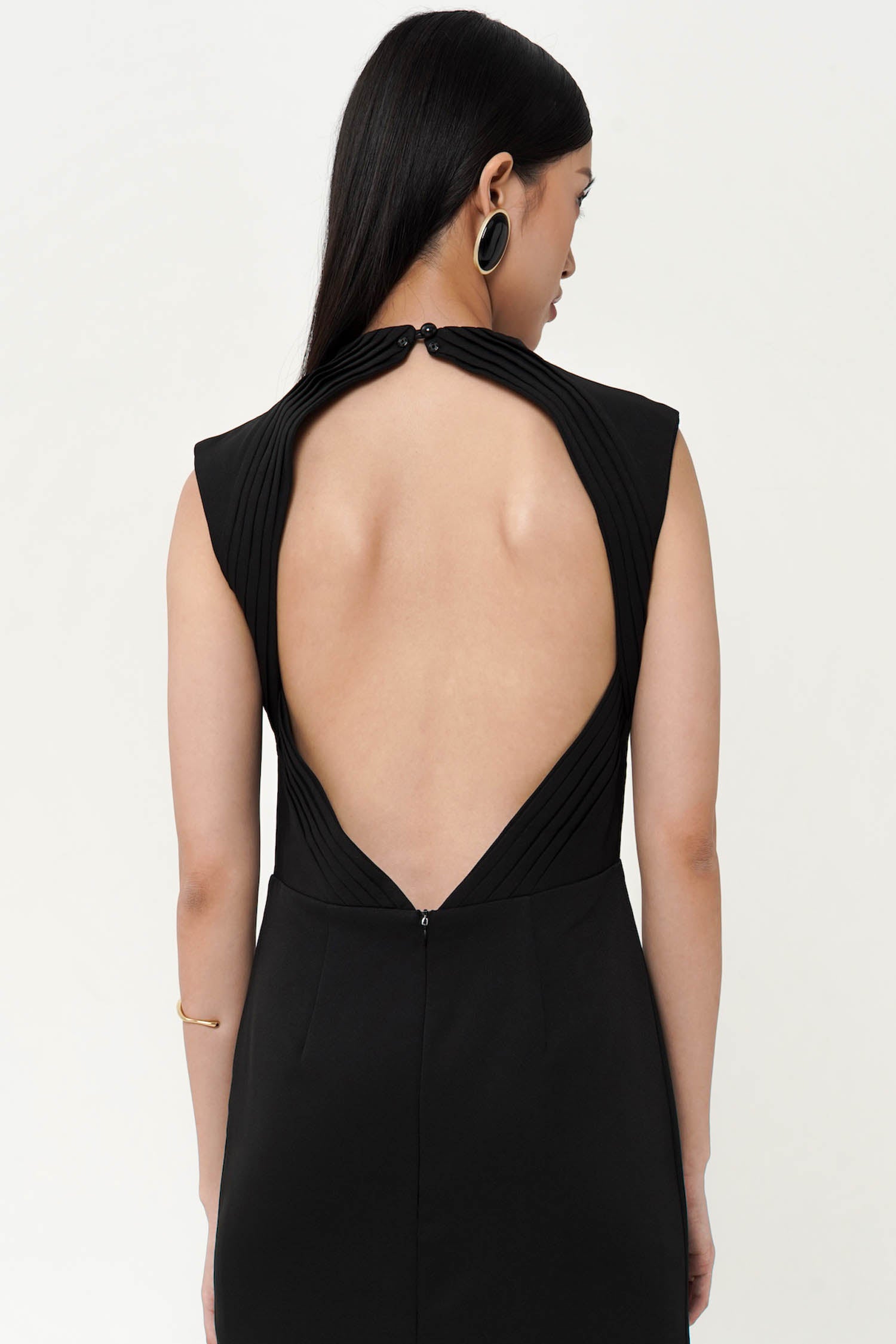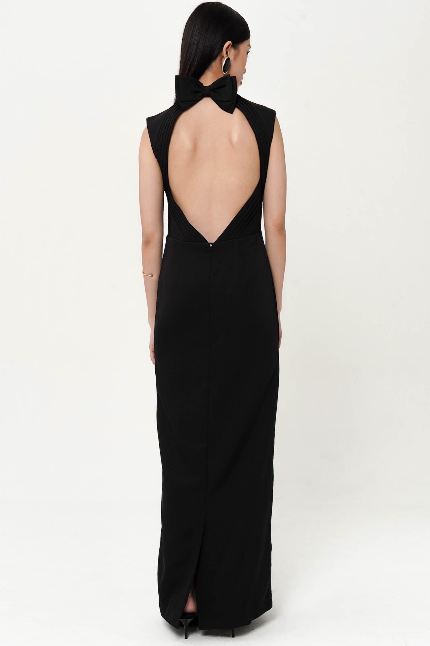 The Alyssa Back Ribbon Dress in Black embodies refined elegance with its graceful maxi length and striking backless design. Crafted to highlight sophistication, this dress features a delicate ribbon tie that adds a subtle yet captivating detail, perfect for making a poised statement at any evening event or special occasion.