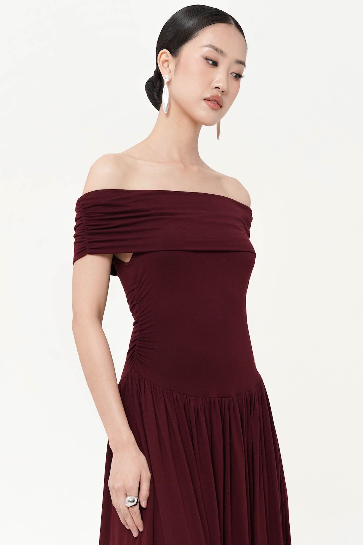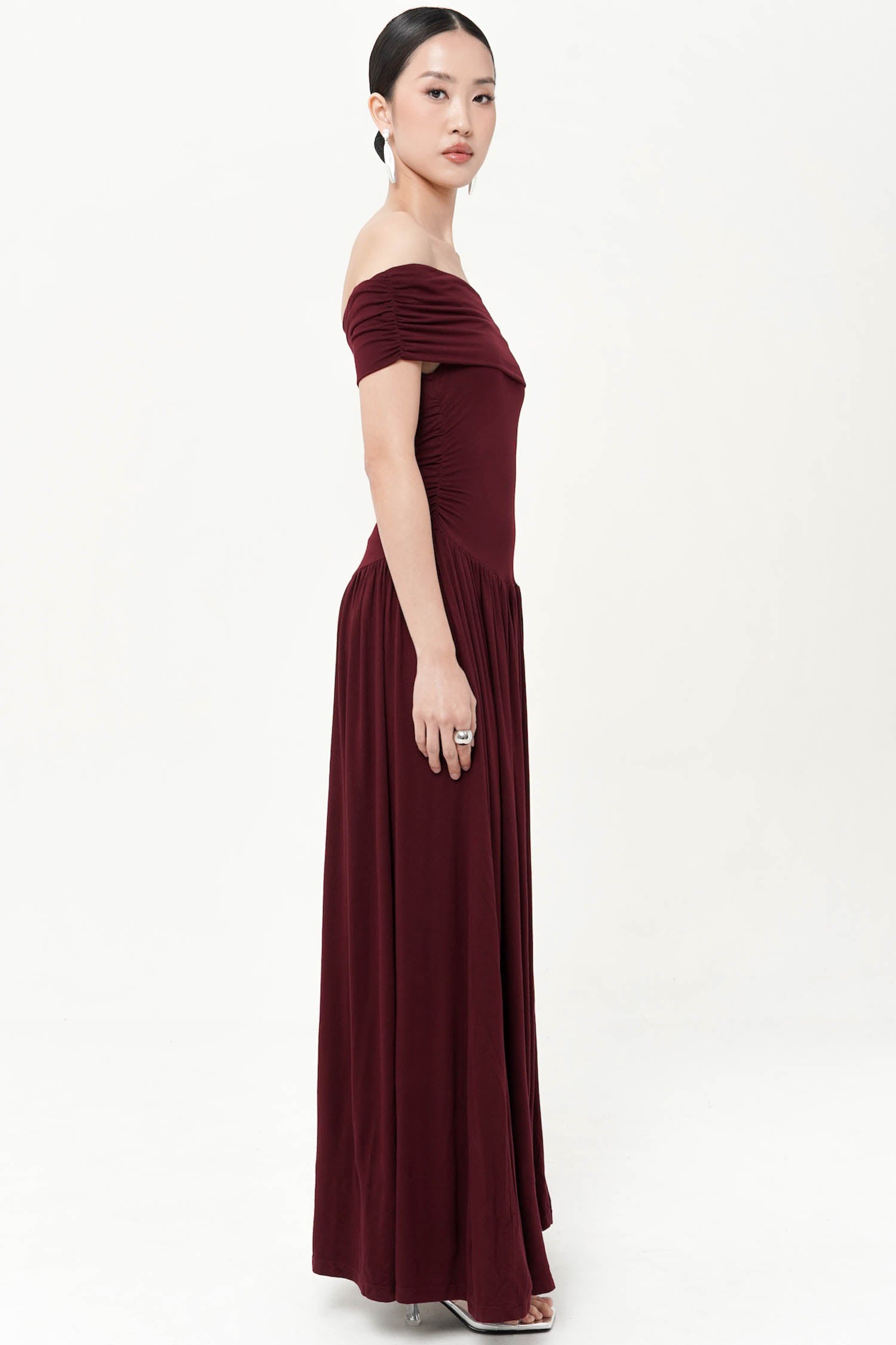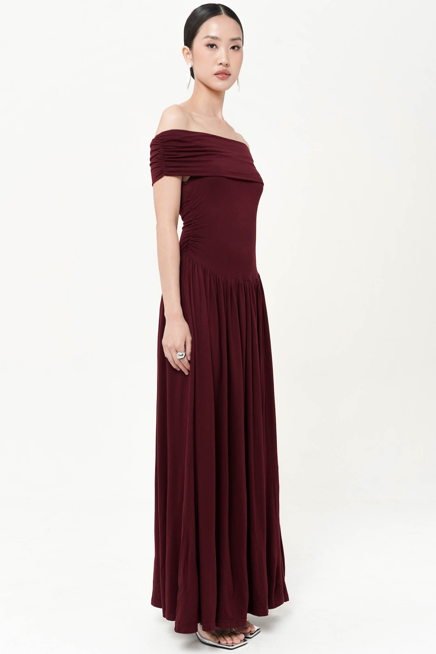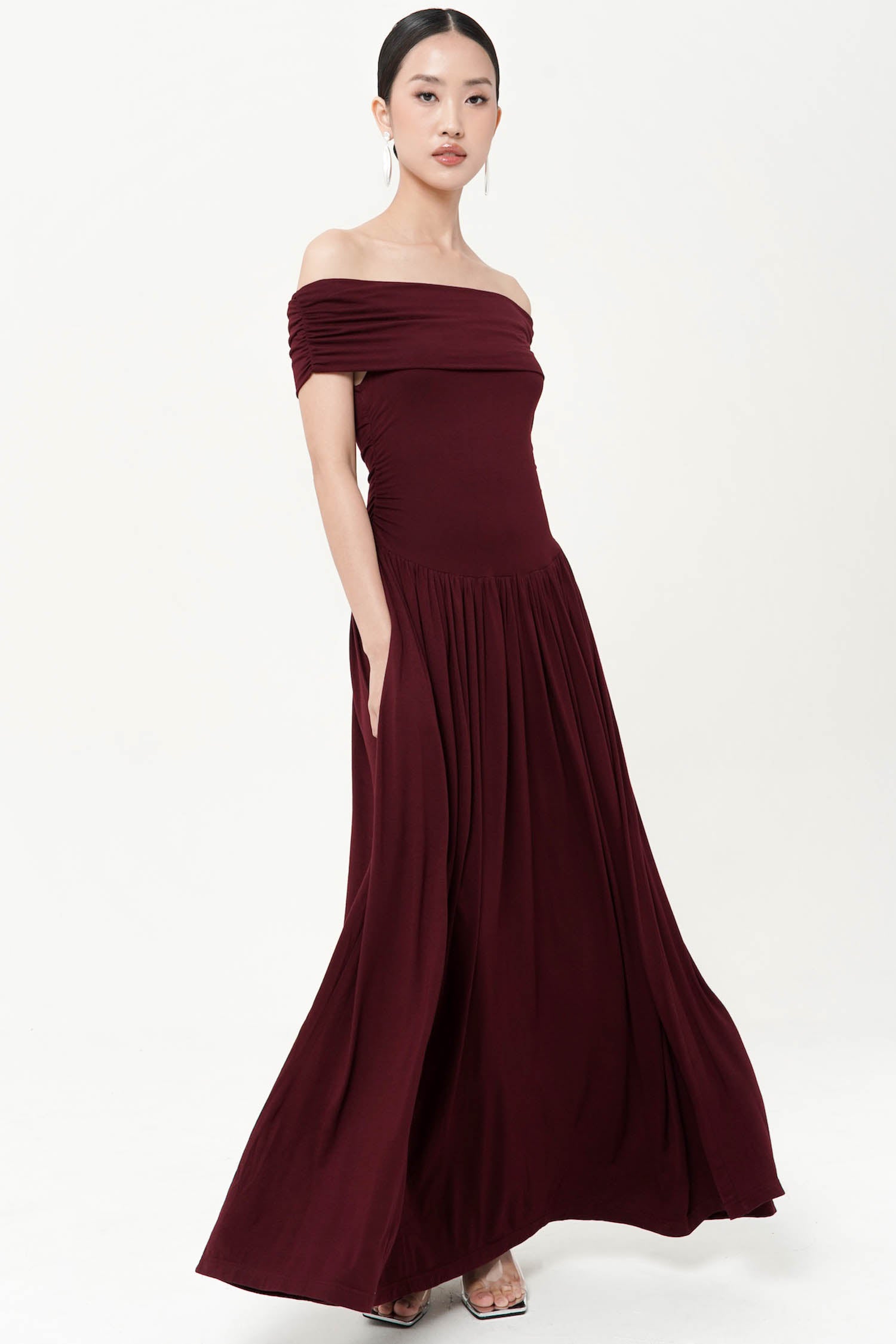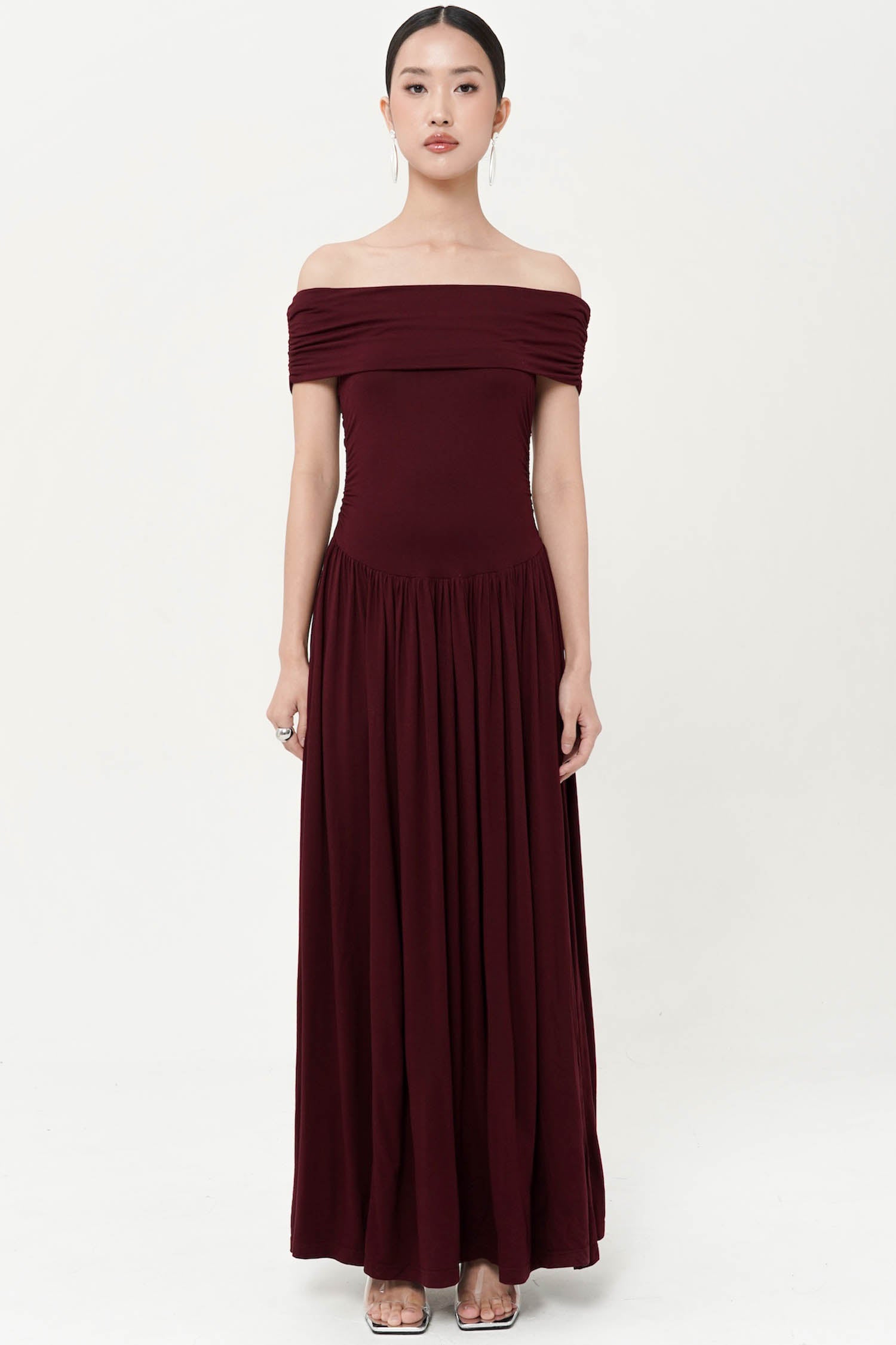 The Belinda Off Shoulder Maxi Dress offers timeless elegance with its graceful off-shoulder design and flowing silhouette. Crafted for evening moments, this simple yet sophisticated dress drapes beautifully, creating an effortlessly refined look. Perfect for special occasions, it balances understated charm with a modern touch to highlight your natural poise.