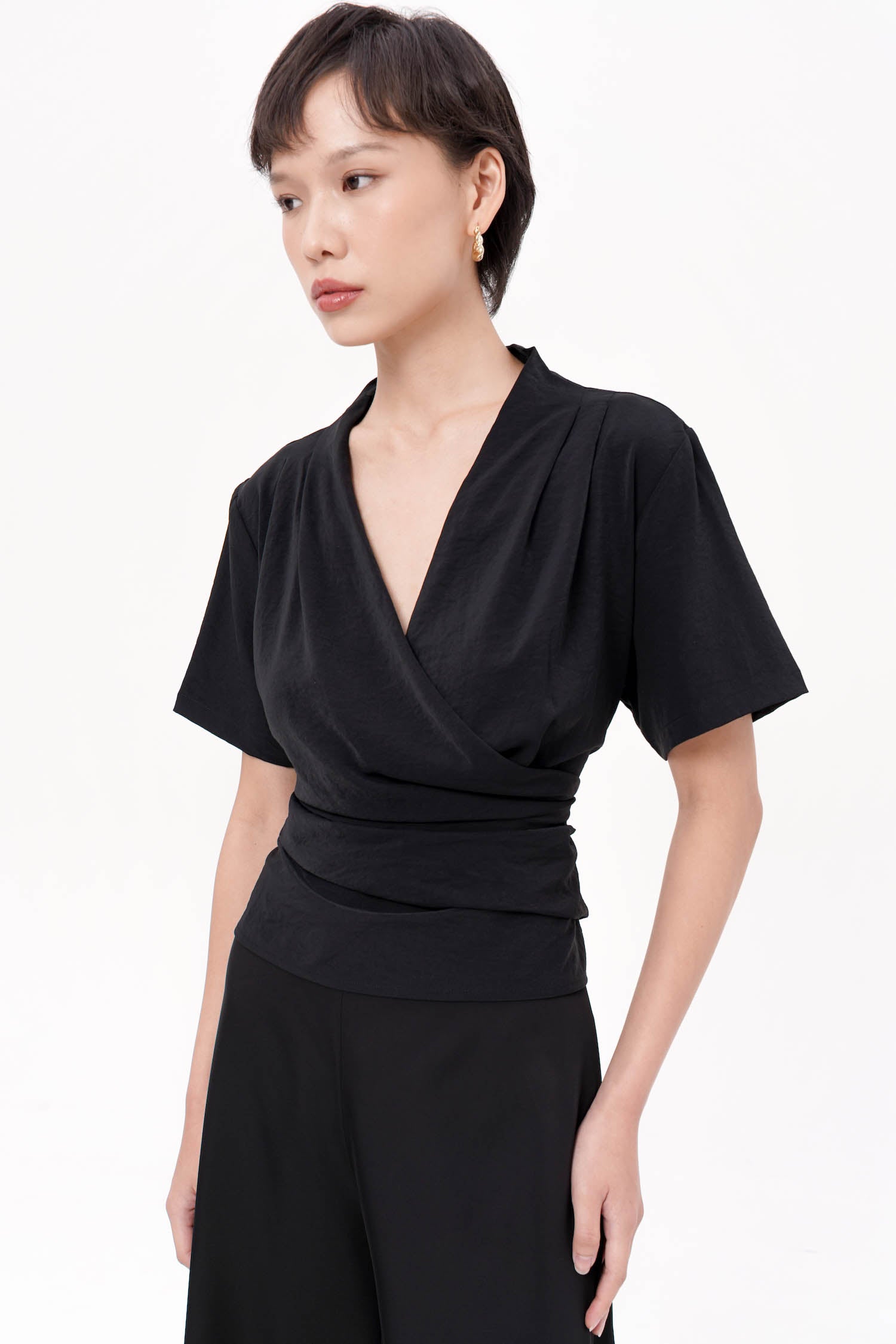 The Champ Wrap Top captures the essence of refined femininity through its elegant silhouette and thoug...