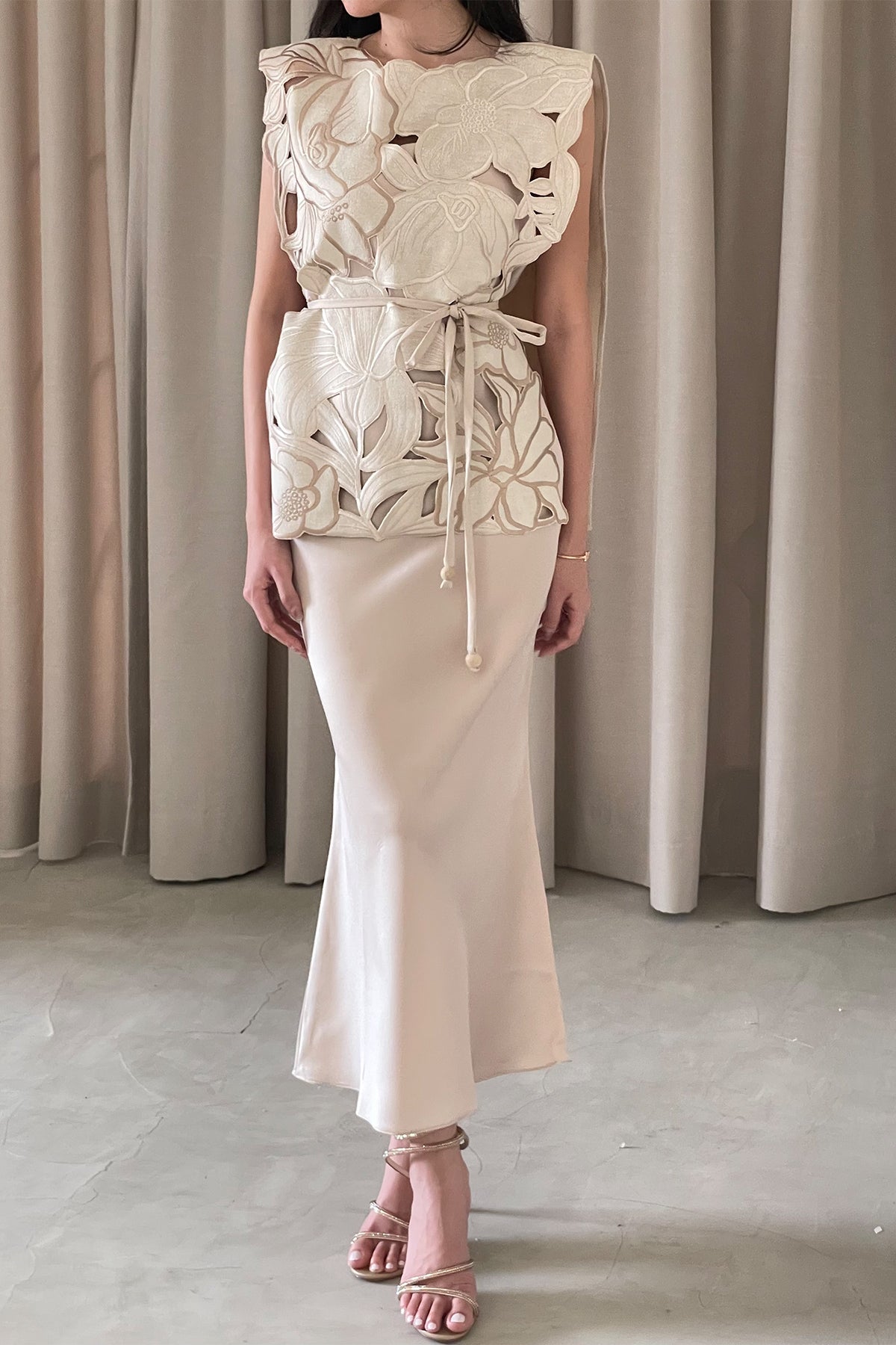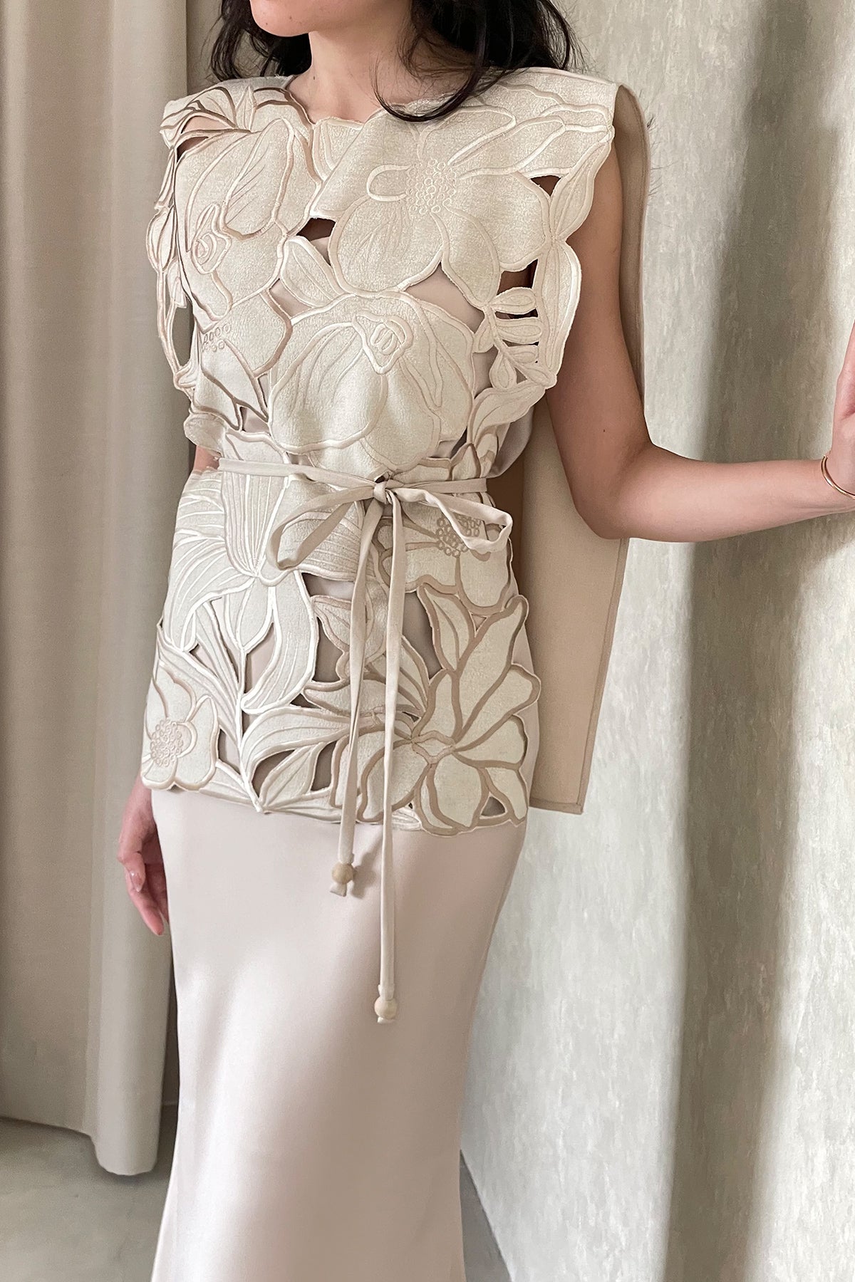 Indulge in elegance with the Clara Top Nude. This sophisticated top is adorned with delicate embroidered flowers, adding a touch of grace to its nude hue. Perfect for any occasion, it's a must-have for those seeking a taste of luxury and exclusivity.