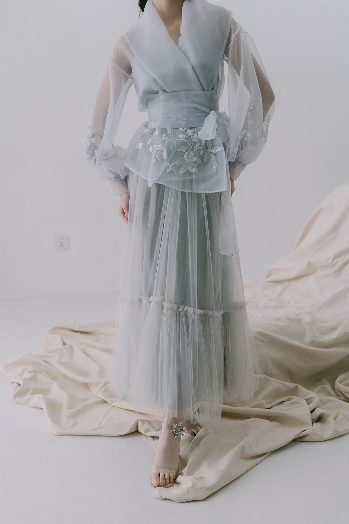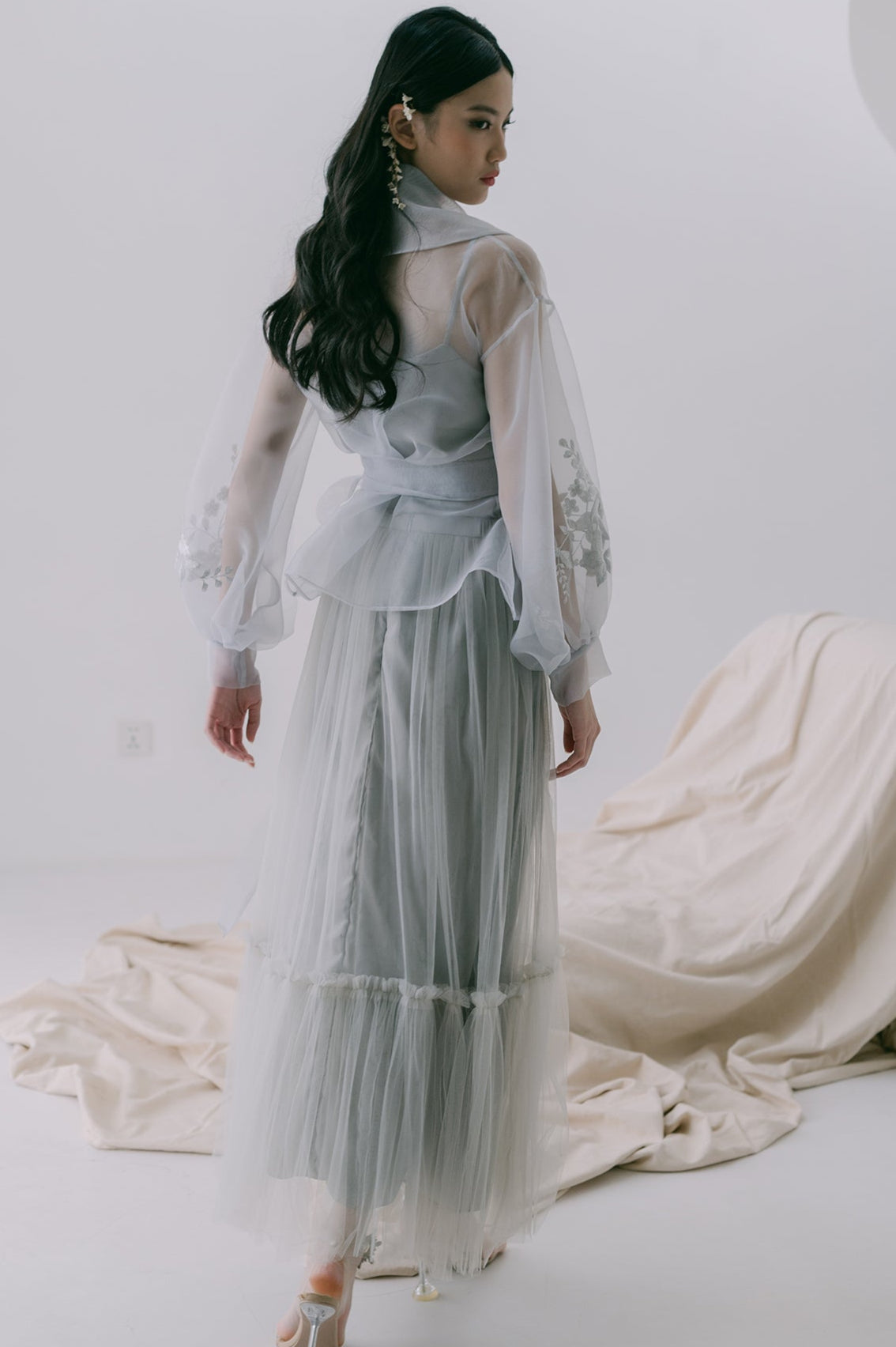Indulge in effortless elegance with the Damara Top and its stunning organza top . Featuring a combination of modestwear and luxury fashion, this blue ensemble exudes sophistication and exclusivity. Elevate your wardrobe with this must-have piece.