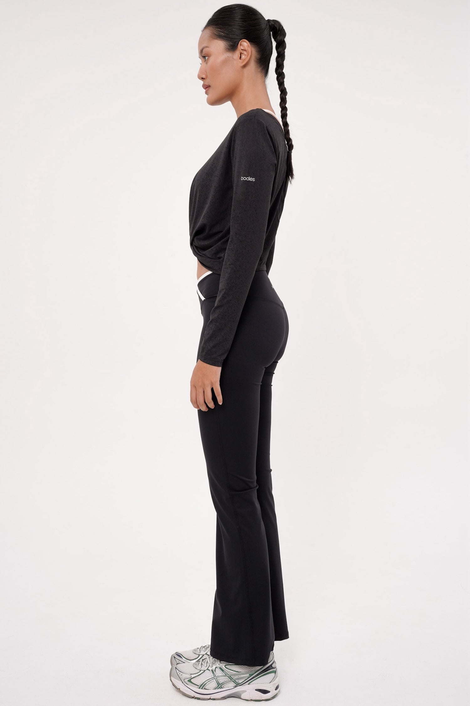 Effortlessly chic, the Dasha Long Sleeve Top brings modern simplicity to your everyday style. With its soft stretch fabric and subtle front twist detail, it flatters your shape while keeping you comfortable all day. Perfect for layering, lounging, or elevating your activewear look.
