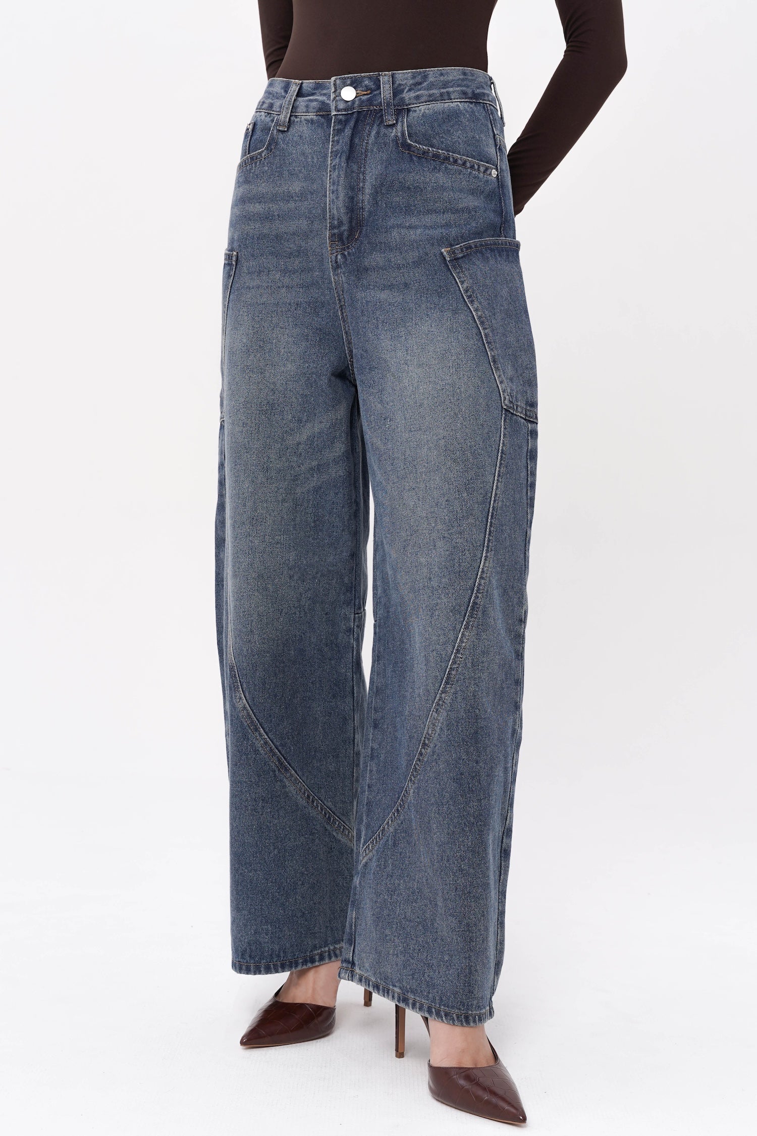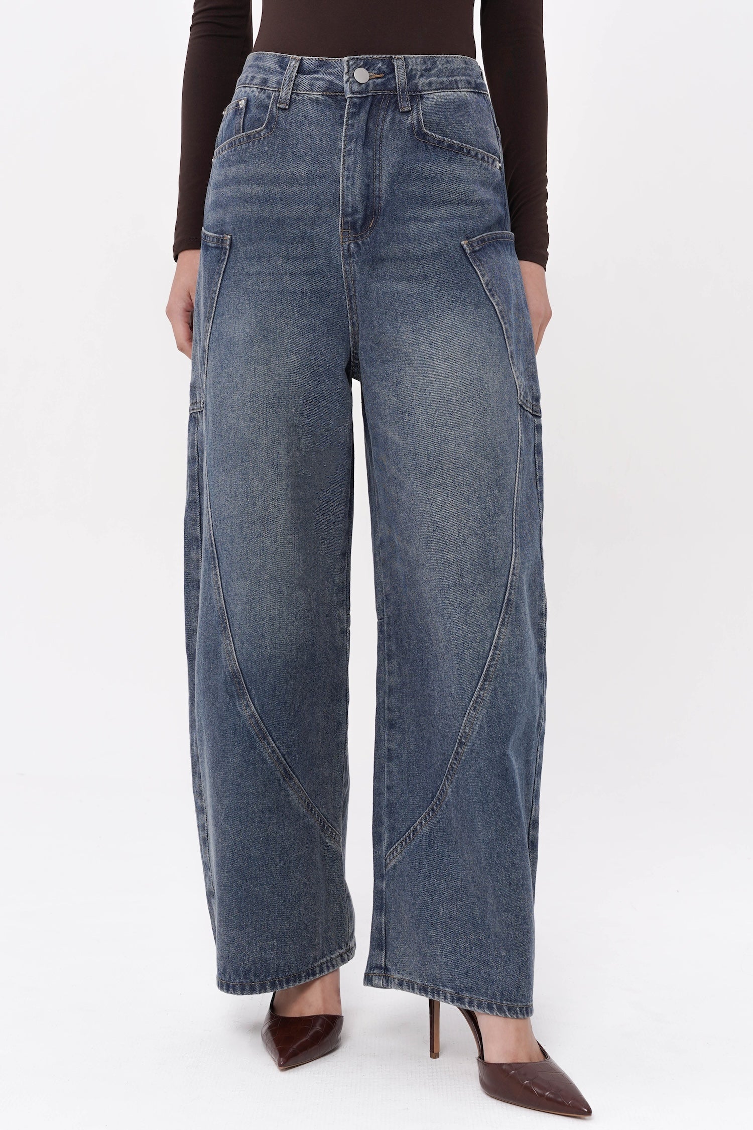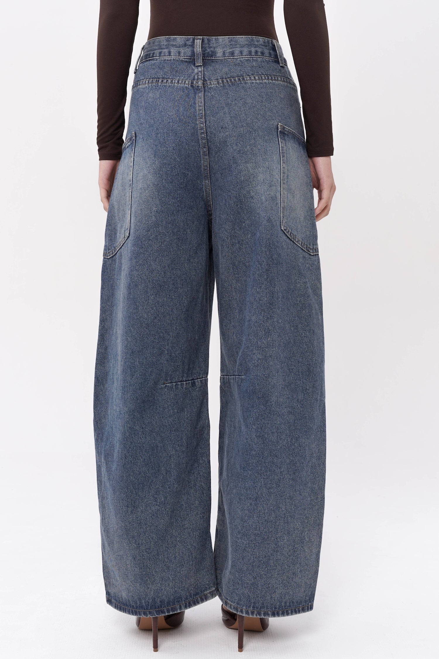 Crafted from structured denim, the Easton Barrel Jeans in Blue reinterpret classic denim through a sculptural, contemporary lens. Designed with a distinctive barrel-leg silhouette, they feature curved paneling that creates subtle dimensionality and a refined architectural shape. The high-rise waist and elongated lines offer a flattering balance of structure and ease, while the vintage-inspired blue wash lends timeless versatility. Both modern and understated, these jeans bring an elevated edge to everyday dressing.