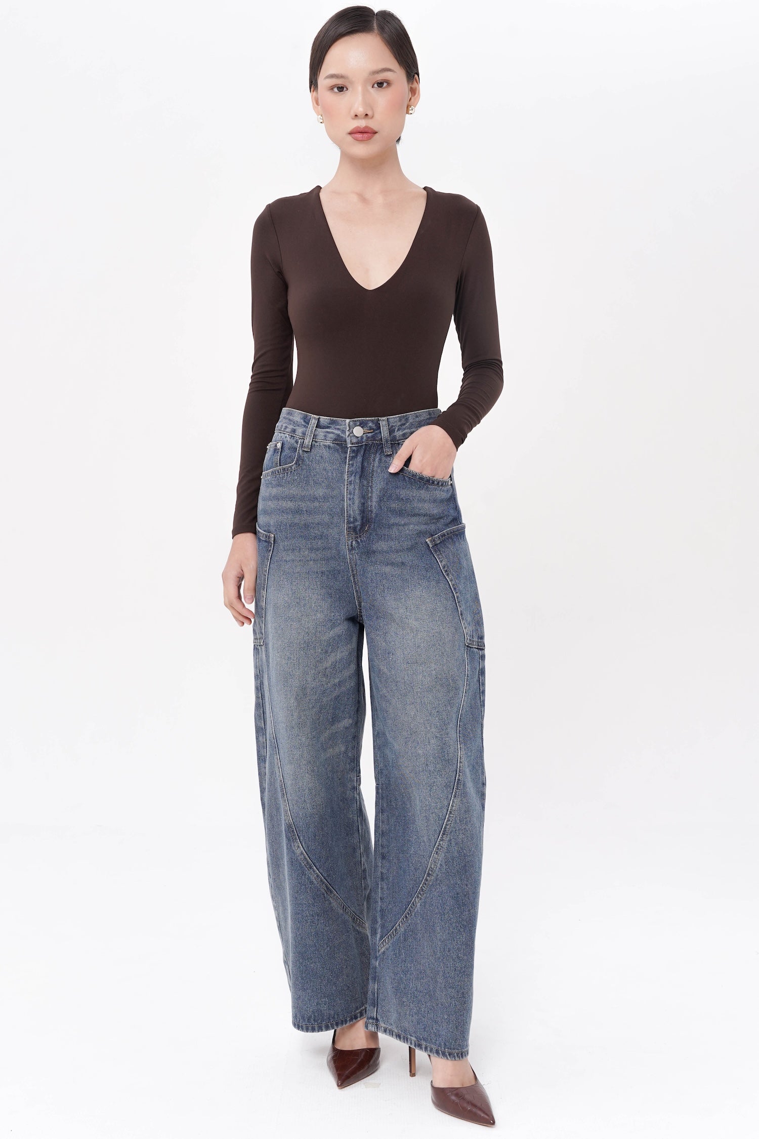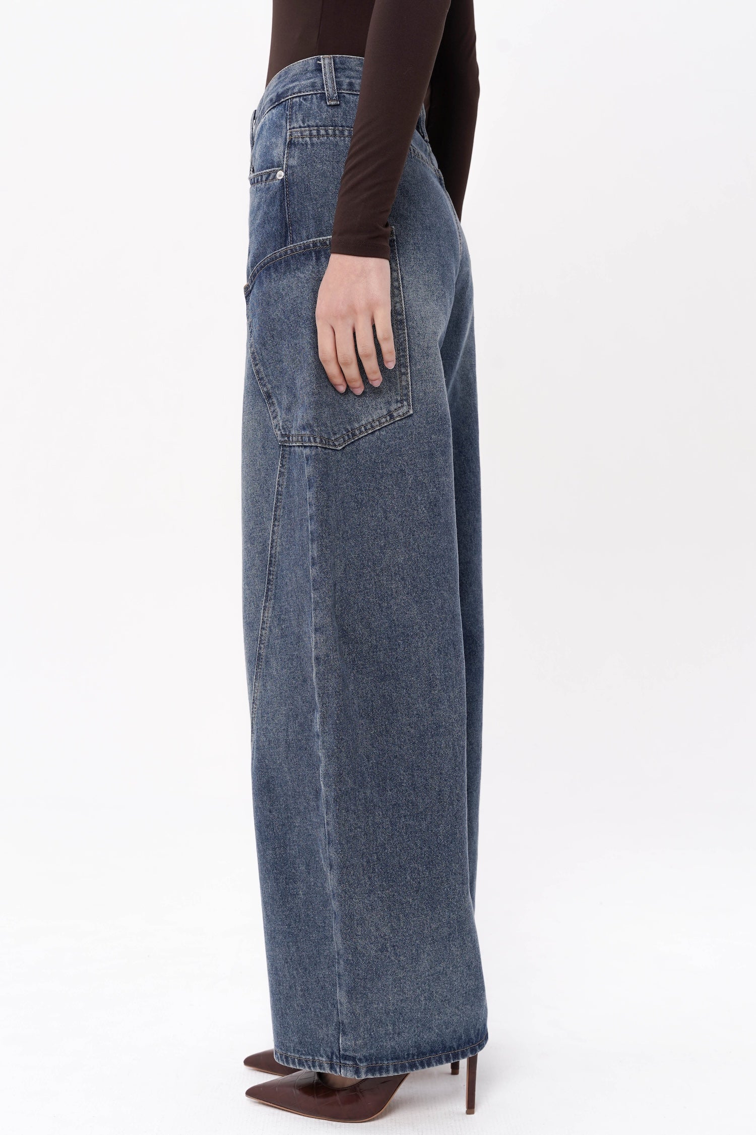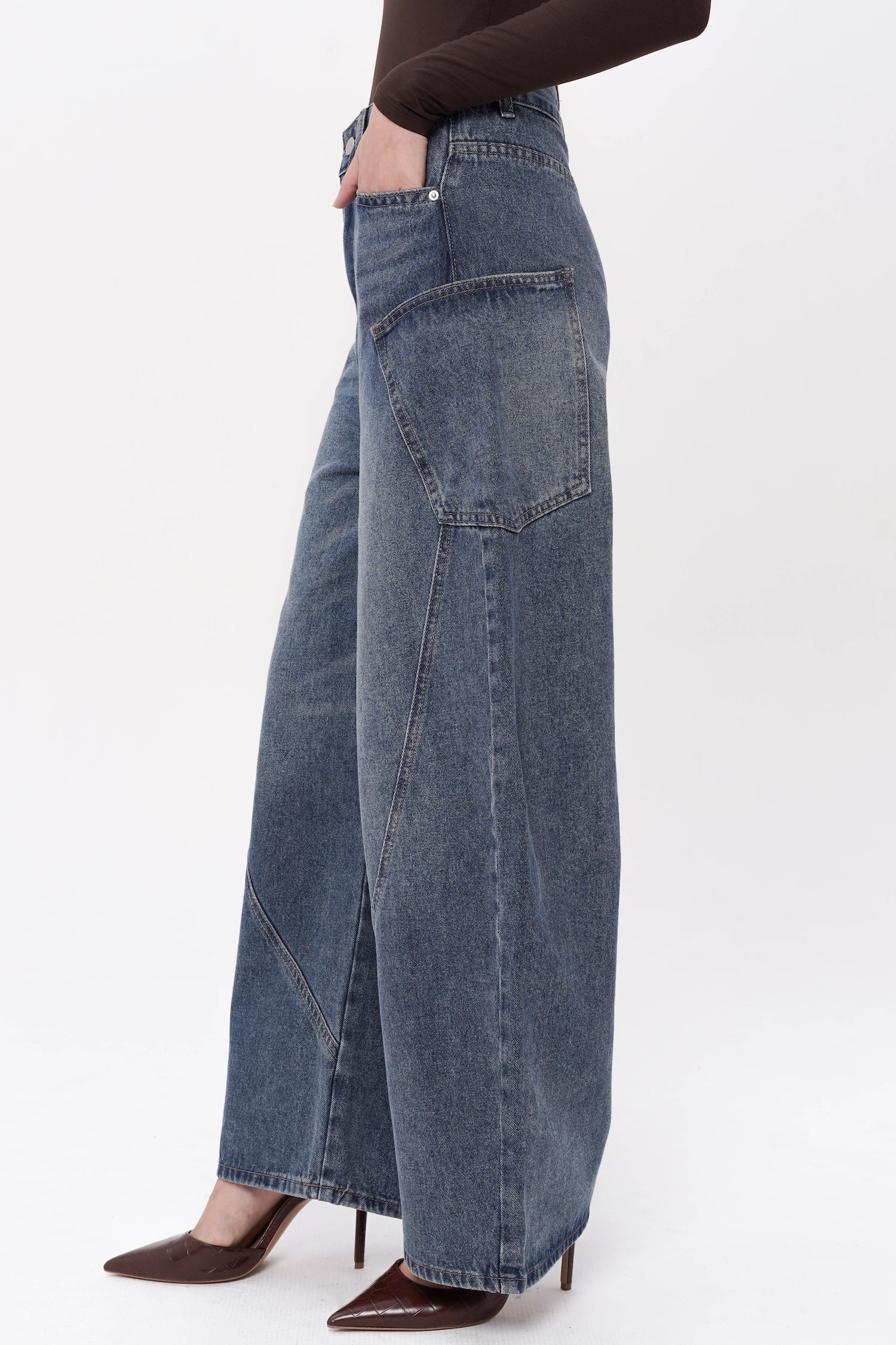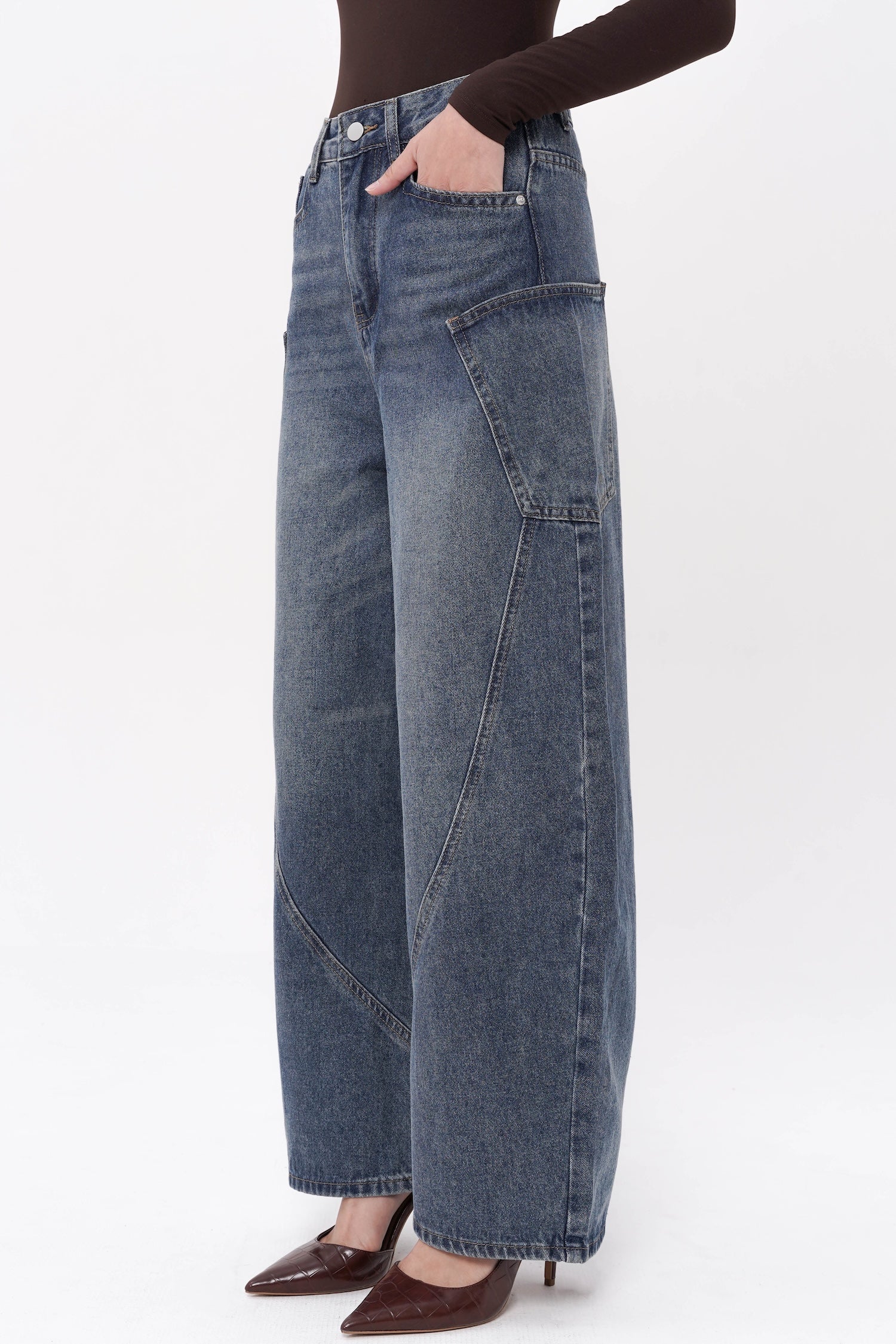 Crafted from structured denim, the Easton Barrel Jeans in Blue reinterpret classic denim through a sculptural, contemporary lens. Designed with a distinctive barrel-leg silhouette, they feature curved paneling that creates subtle dimensionality and a refined architectural shape. The high-rise waist and elongated lines offer a flattering balance of structure and ease, while the vintage-inspired blue wash lends timeless versatility. Both modern and understated, these jeans bring an elevated edge to everyday dressing.