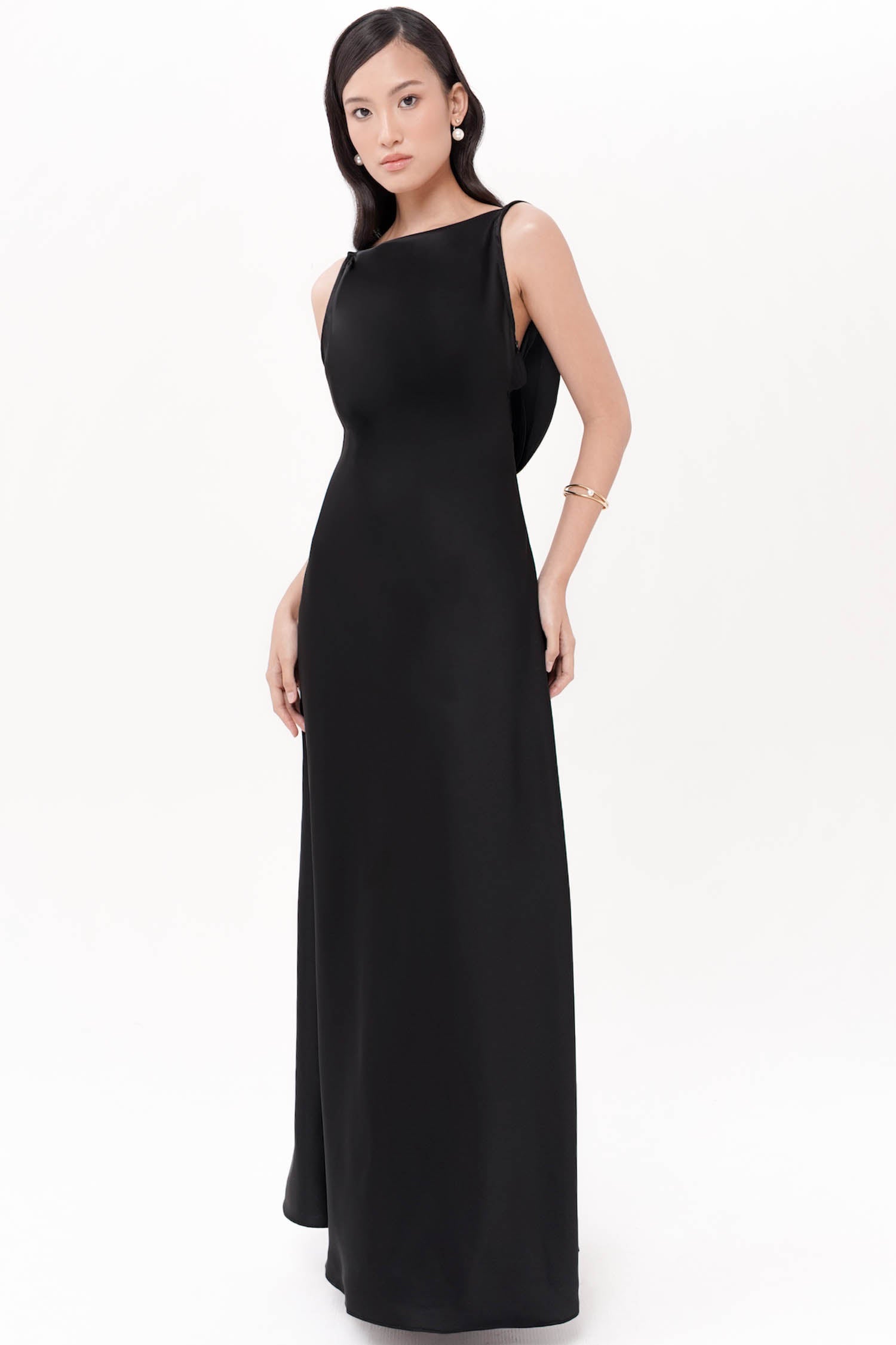 Efate Open Back Long Gown In Black (Back In Stock!)