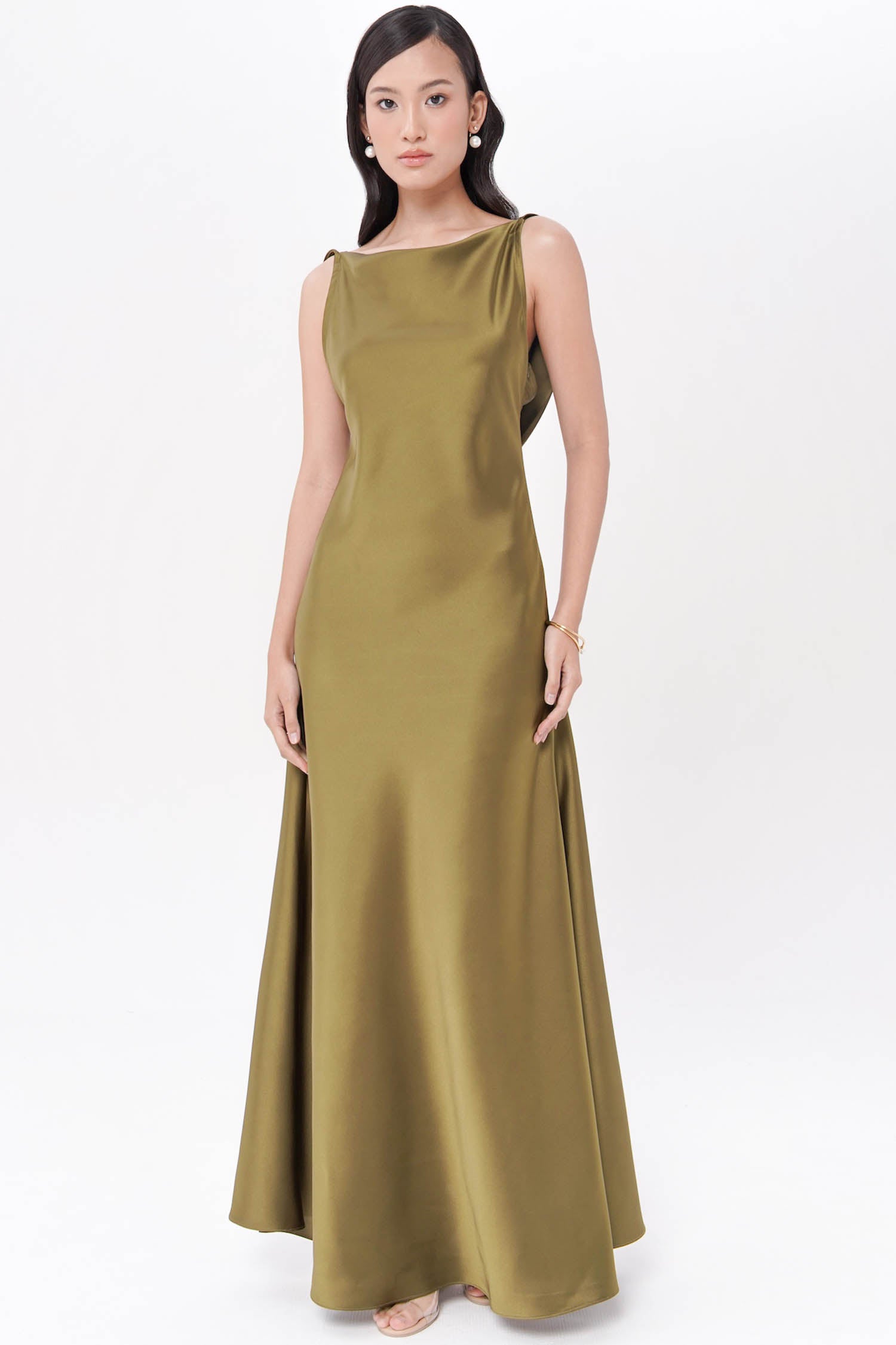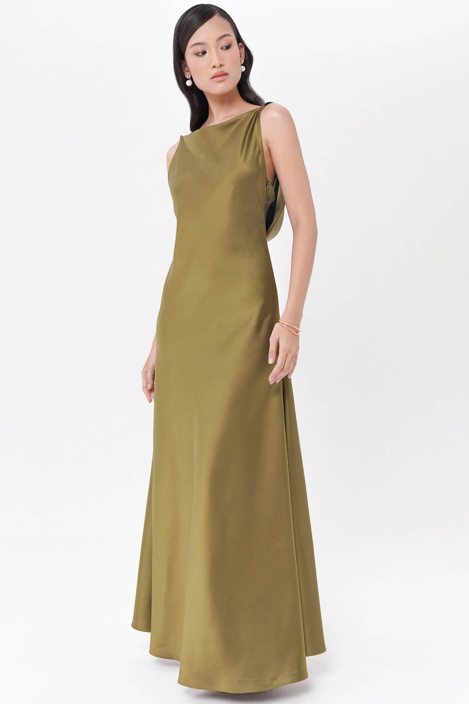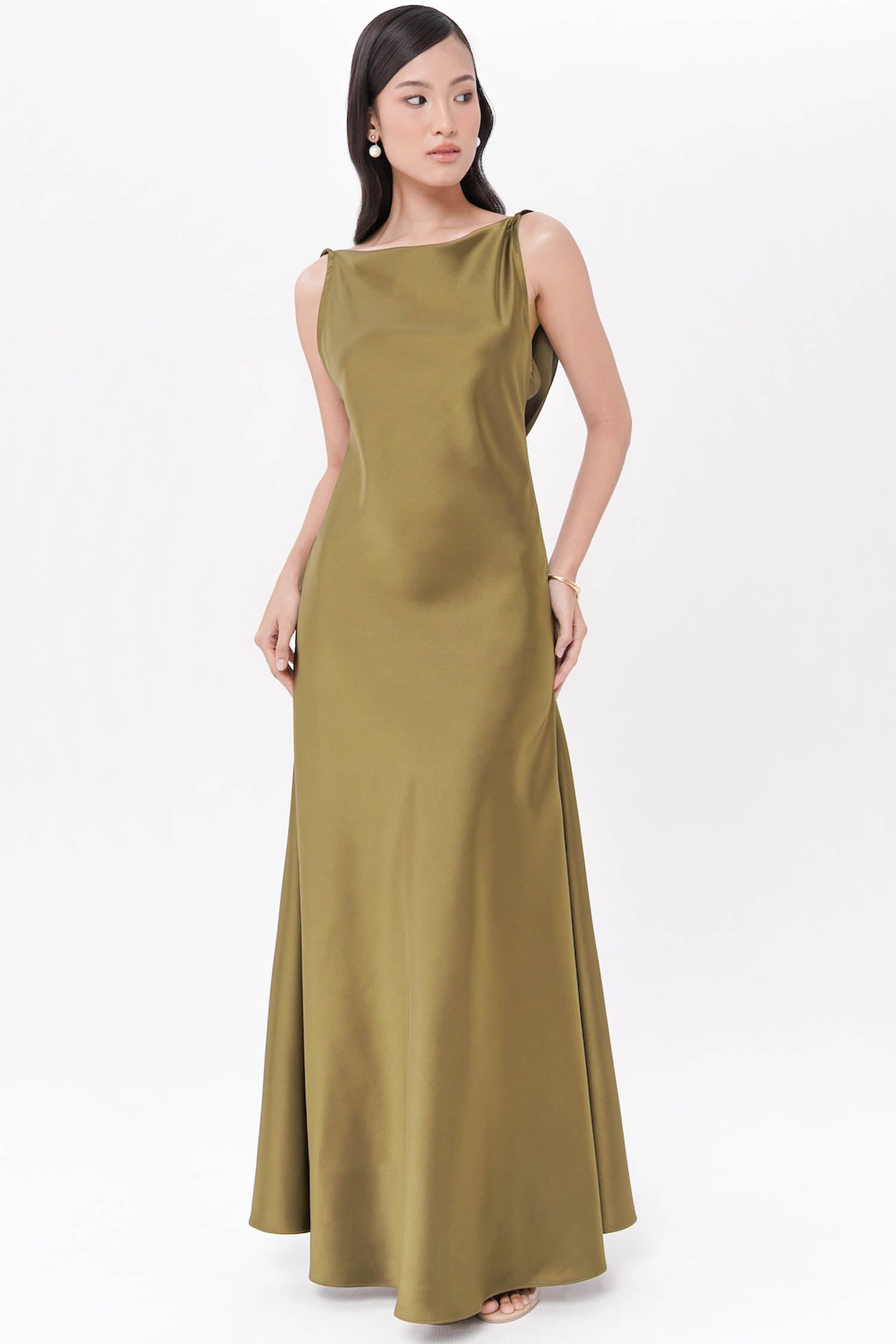 Introducing the stunning Efate Open Back Long Gown, a perfect blend of elegance and allure. This exquisite gown is designed to make a statement at any formal event, showcasing a captivating open back detail that adds a touch of sophistication. Crafted from luxurious satin, this gown drapes beautifully, ensuring that you feel comfortable and confident all evening long.