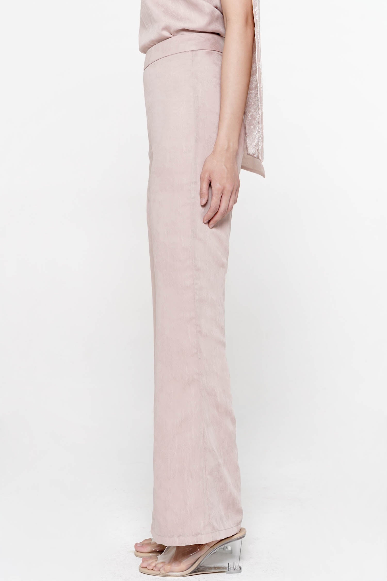 The Elowen Flare Pants exude understated elegance with their elongated silhouette and refined tailoring, crafted from smooth polyester that offers both structure and fluid comfort. Designed with a flattering high-waisted fit that gently contours the waist and hips before flowing into a graceful flare, these trousers create a lengthening effect that enhances the overall sophistication of any ensemble. The clean lines and minimalist finish allow for effortless styling, whether paired with the coordinating Elowen top or elevated with statement separates for formal occasions. Available in Butter and Dusty Pink, the Elowen Flare Pants embody timeless femininity with a modern, polished sensibility.