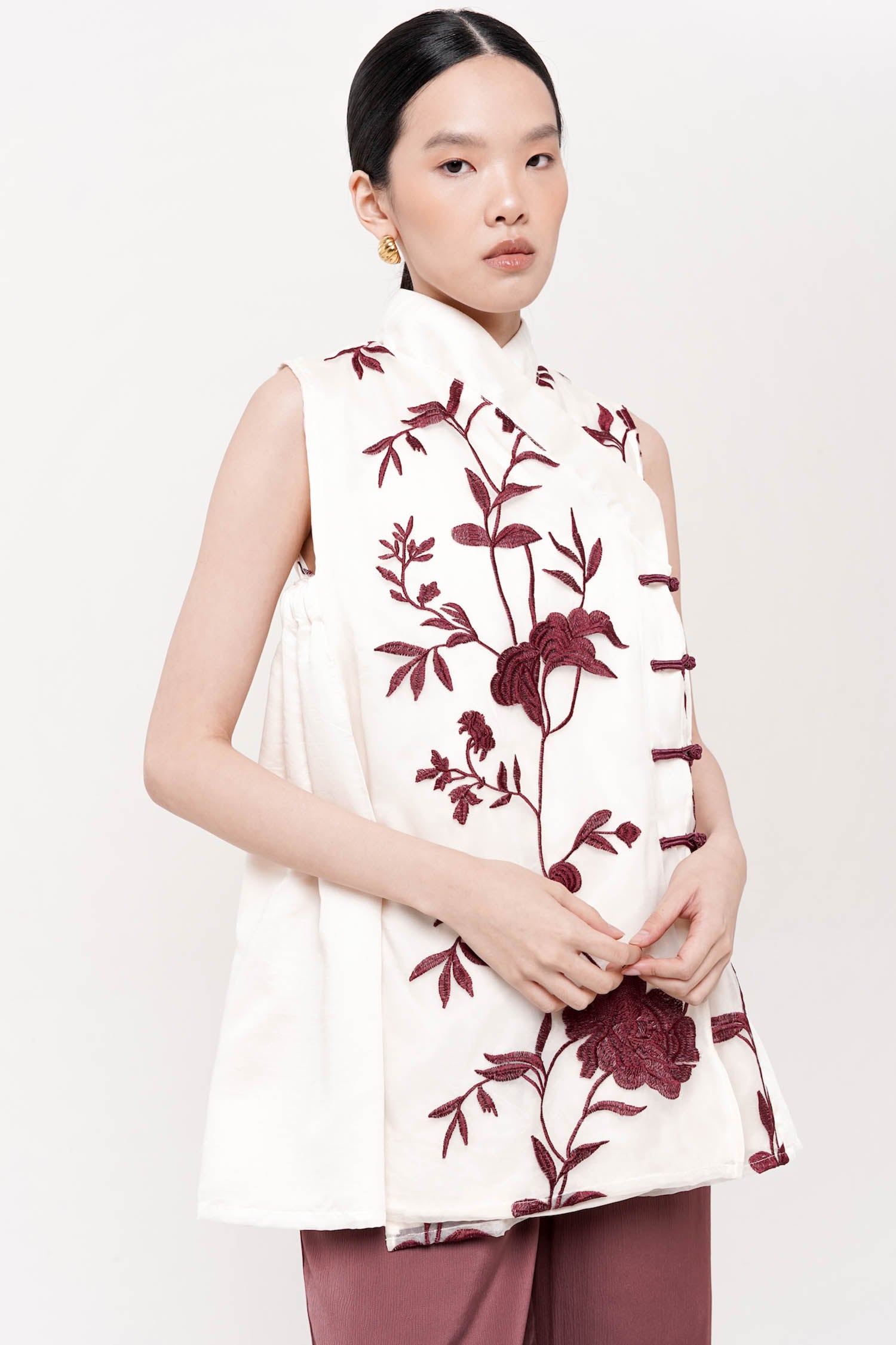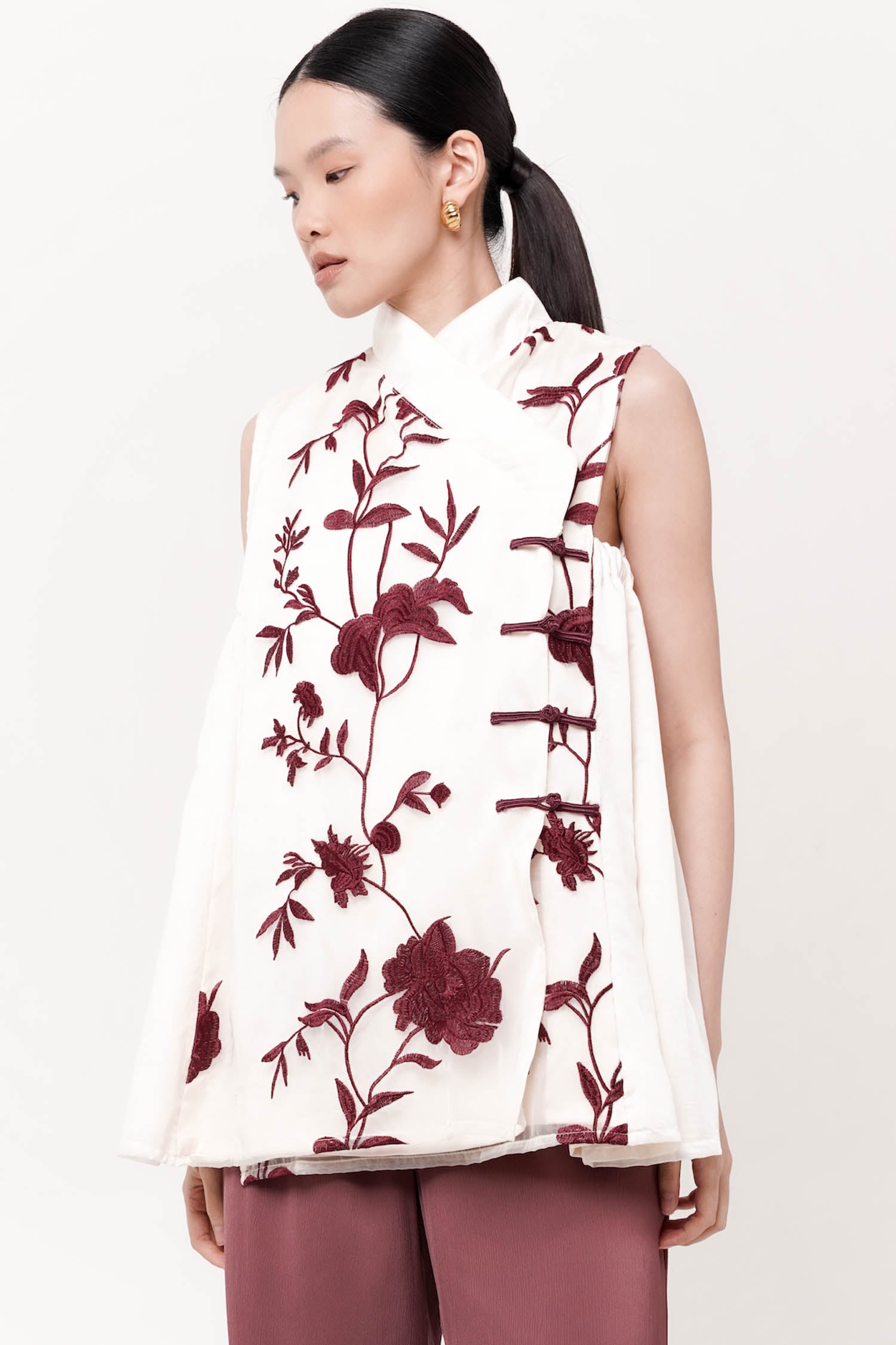 FEI SHEER LONG TOP IN MAROON