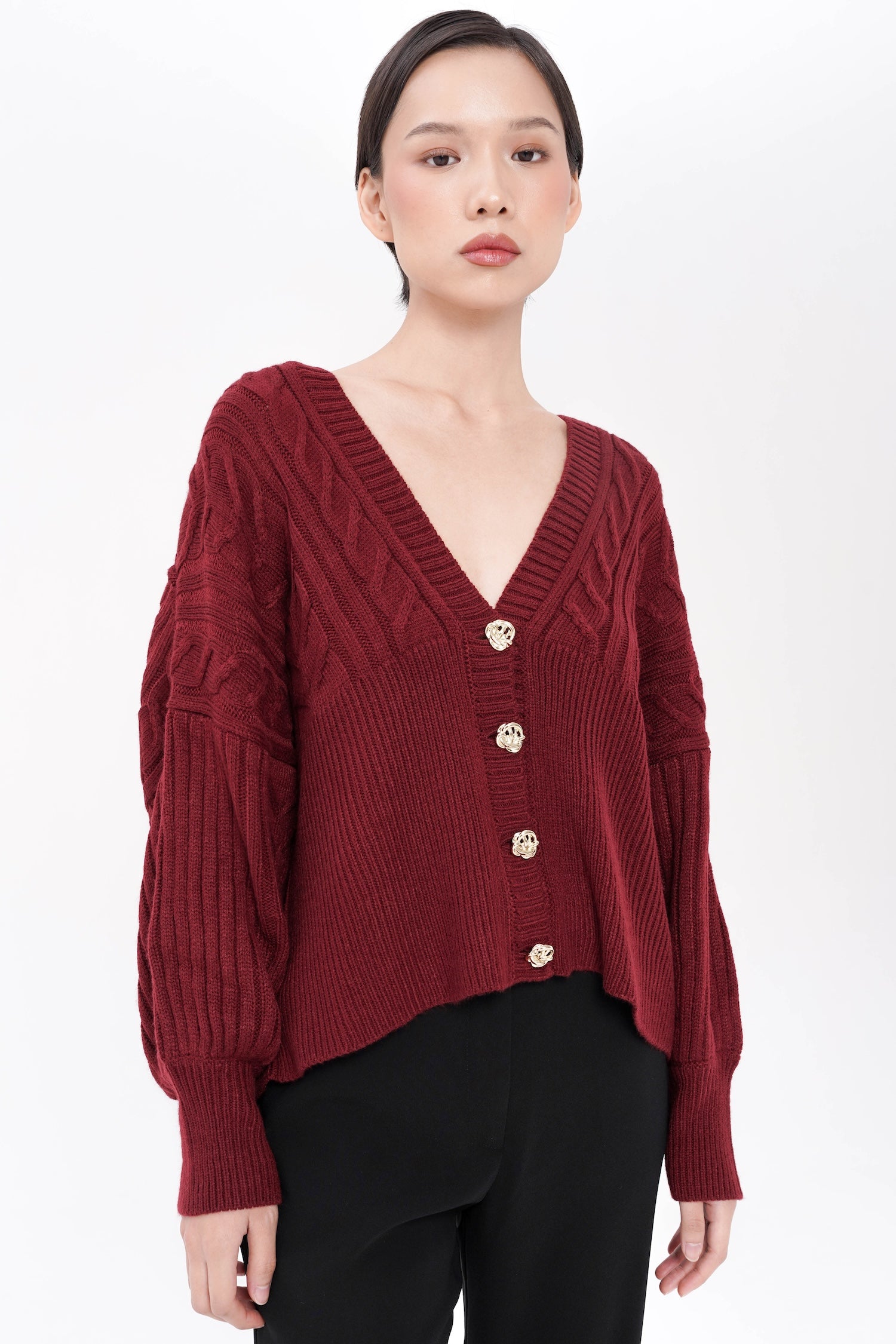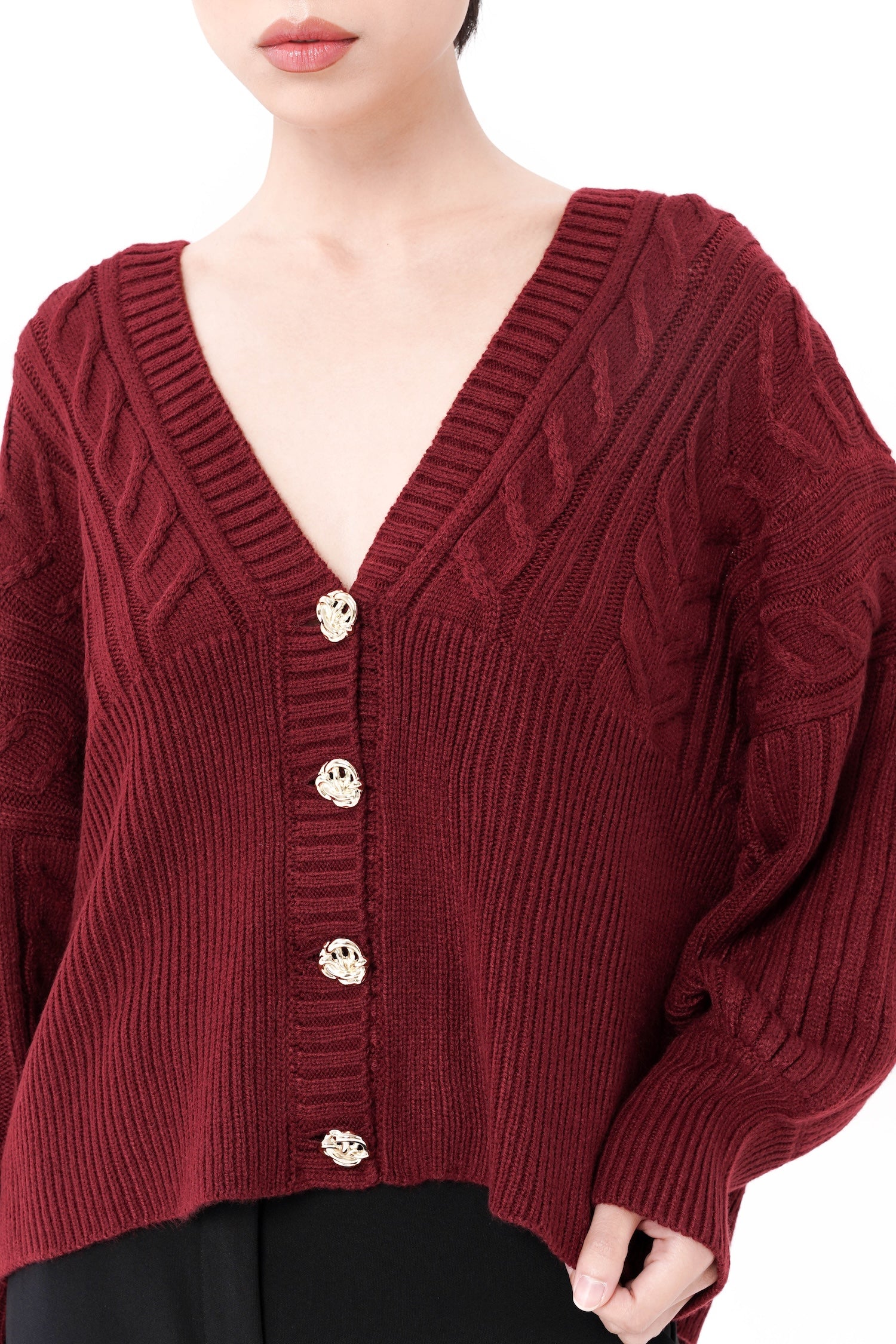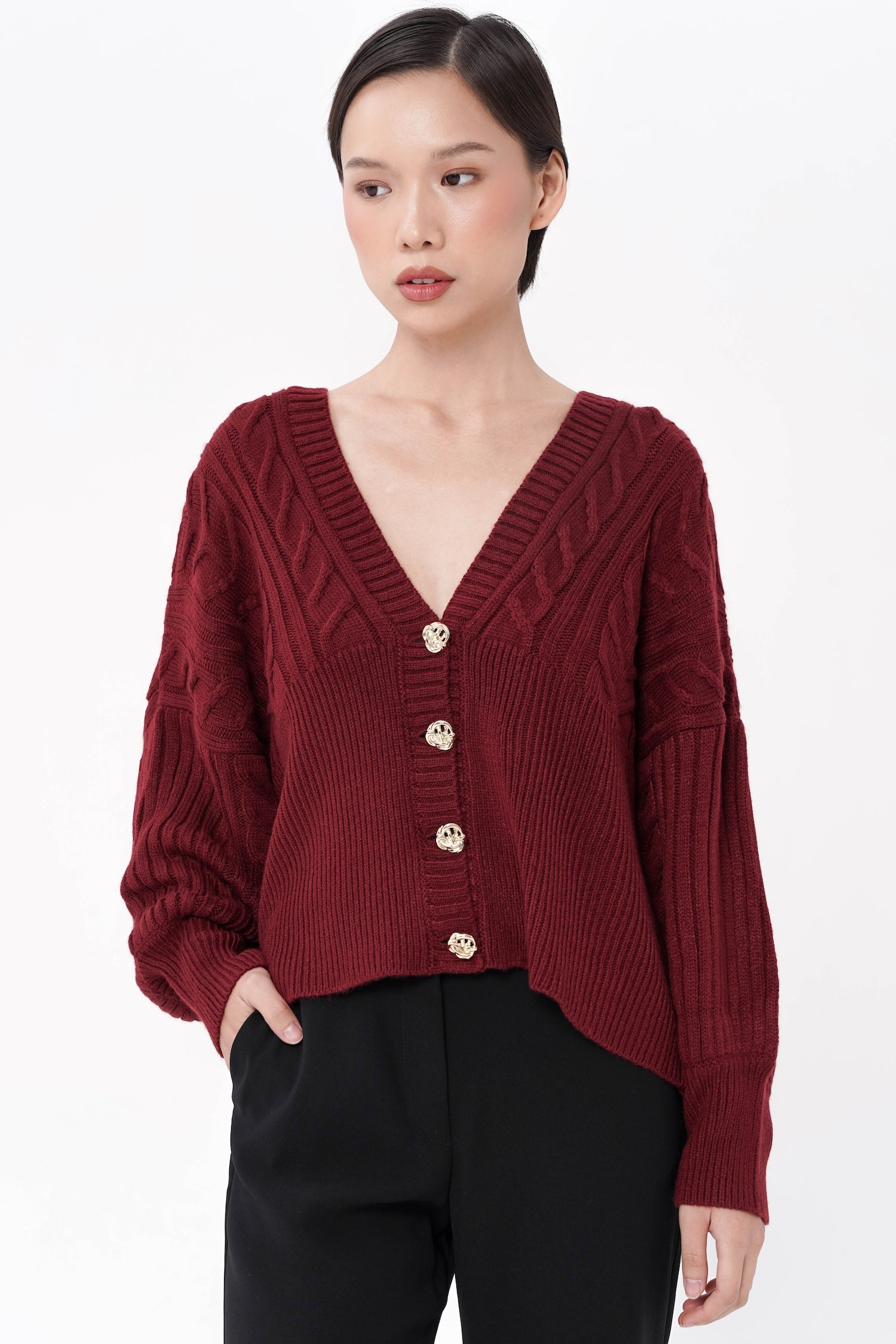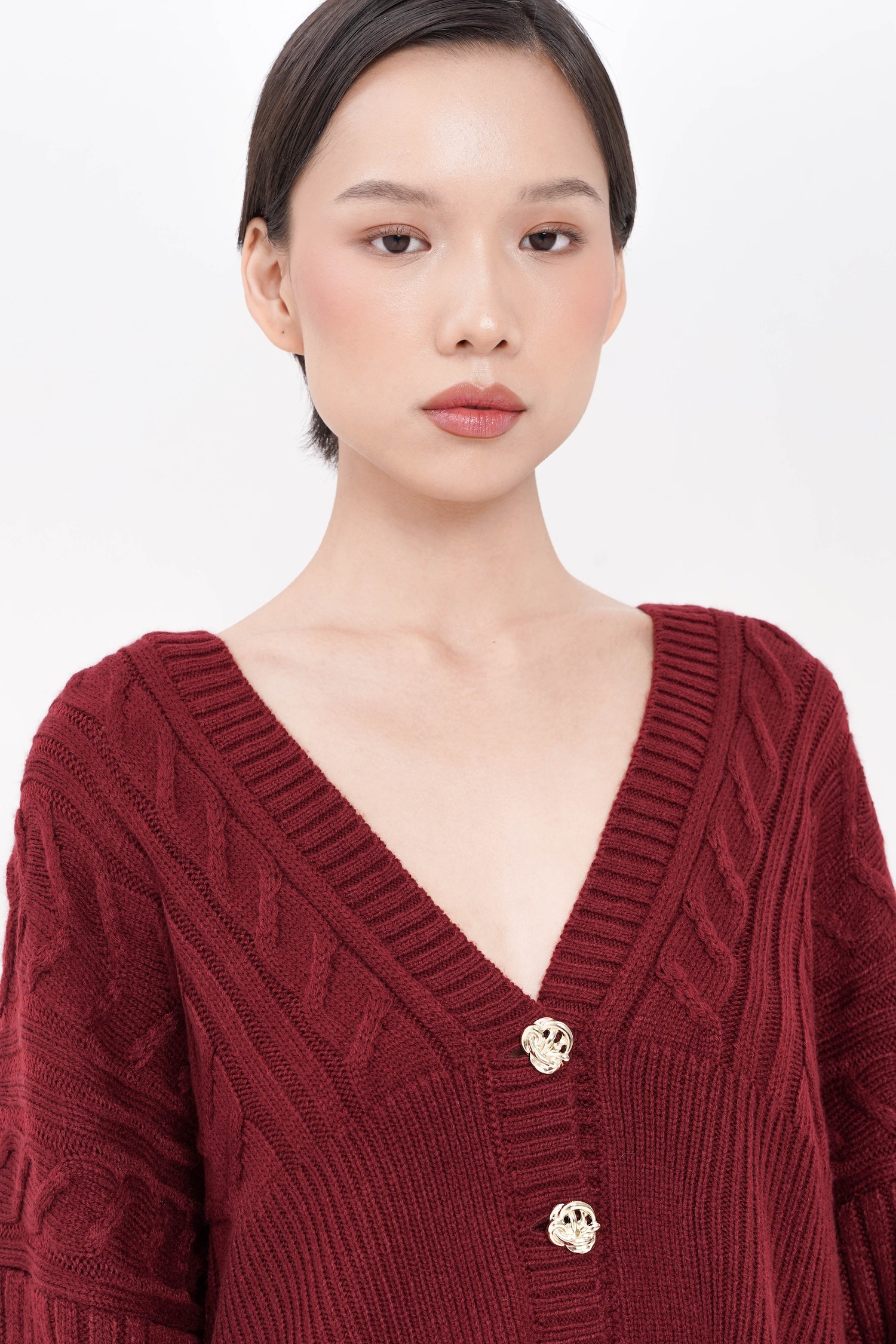 The Gambit Cable Knit Cardigan is a timeless layering piece crafted from soft, breathable cotton, designed with an intricate cable-knit pattern that adds rich texture and depth to its relaxed silhouette. Its gently oversized sleeves and flattering V-neckline bring a modern ease, beautifully complemented by distinctive gold-toned buttons that elevate the cardigan’s refined character. Available in Espresso, Dark Grey, and Maroon, this versatile knit offers a polished yet effortless charm—perfect for adding warmth and sophistication to any ensemble.