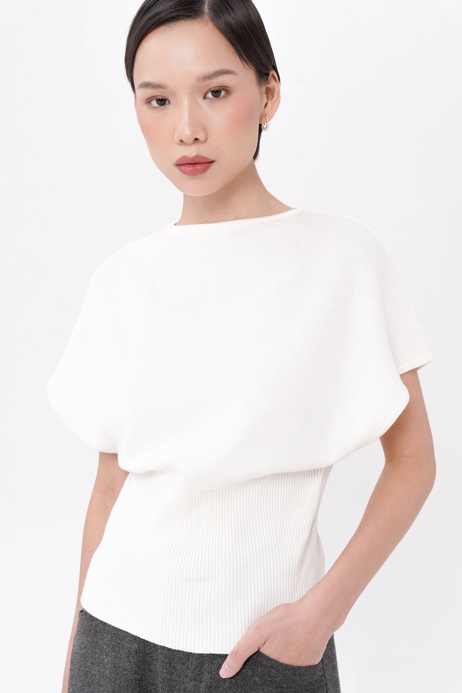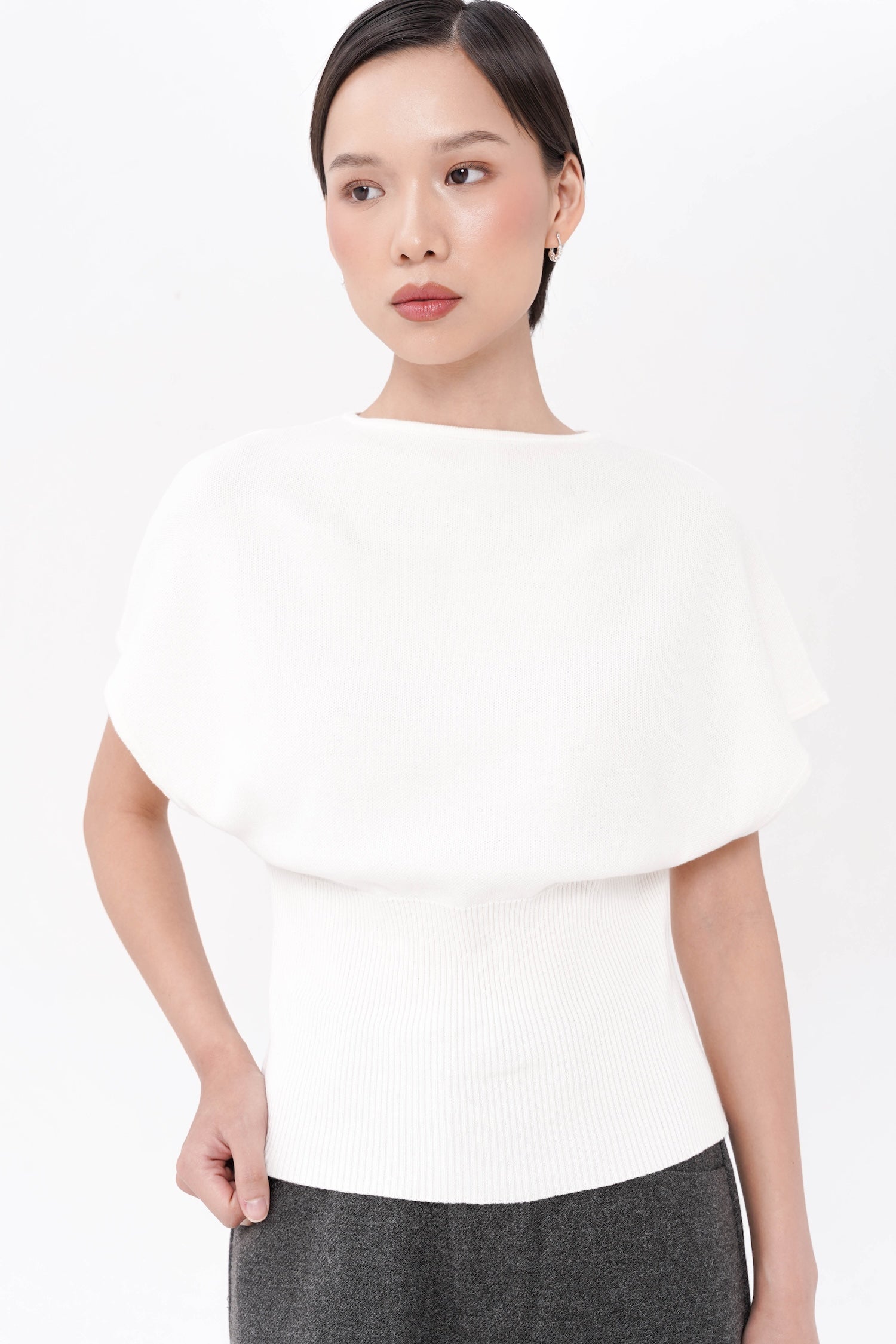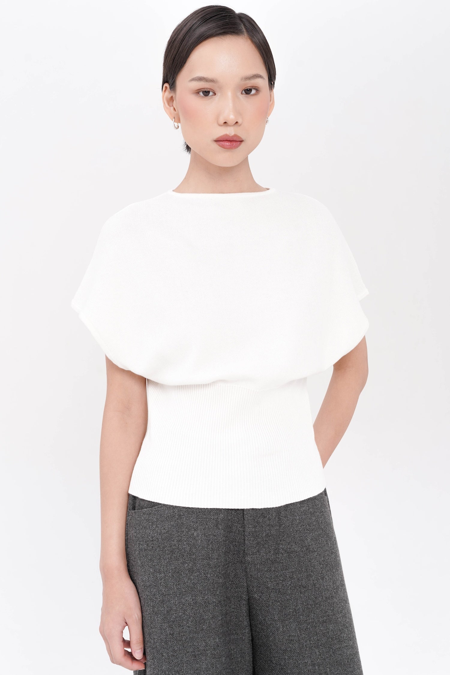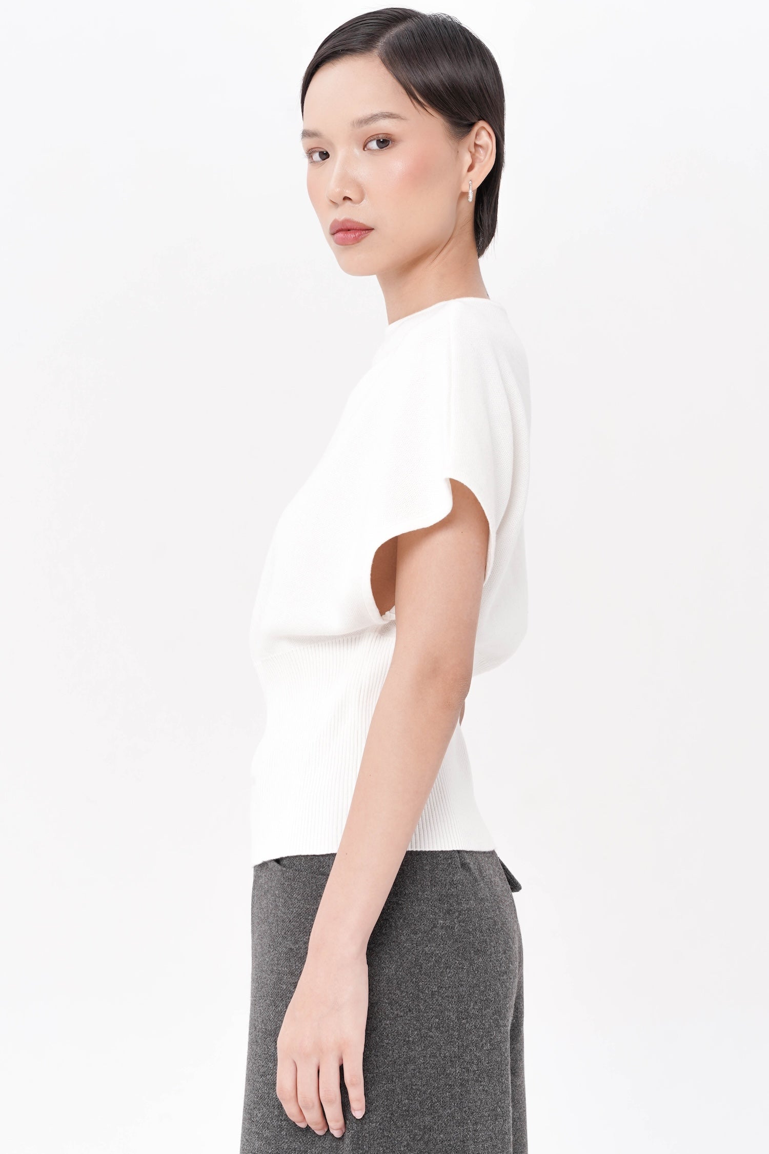 The Gertie Cinched Waist Top offers understated sophistication through its soft cotton knit construction and subtly cinched waist that shapes the figure with ease. Its relaxed cap sleeves and smooth, minimalist finish create a modern, versatile silhouette suited for both casual refinement and polished layering. Available in Grey, Black, and White.