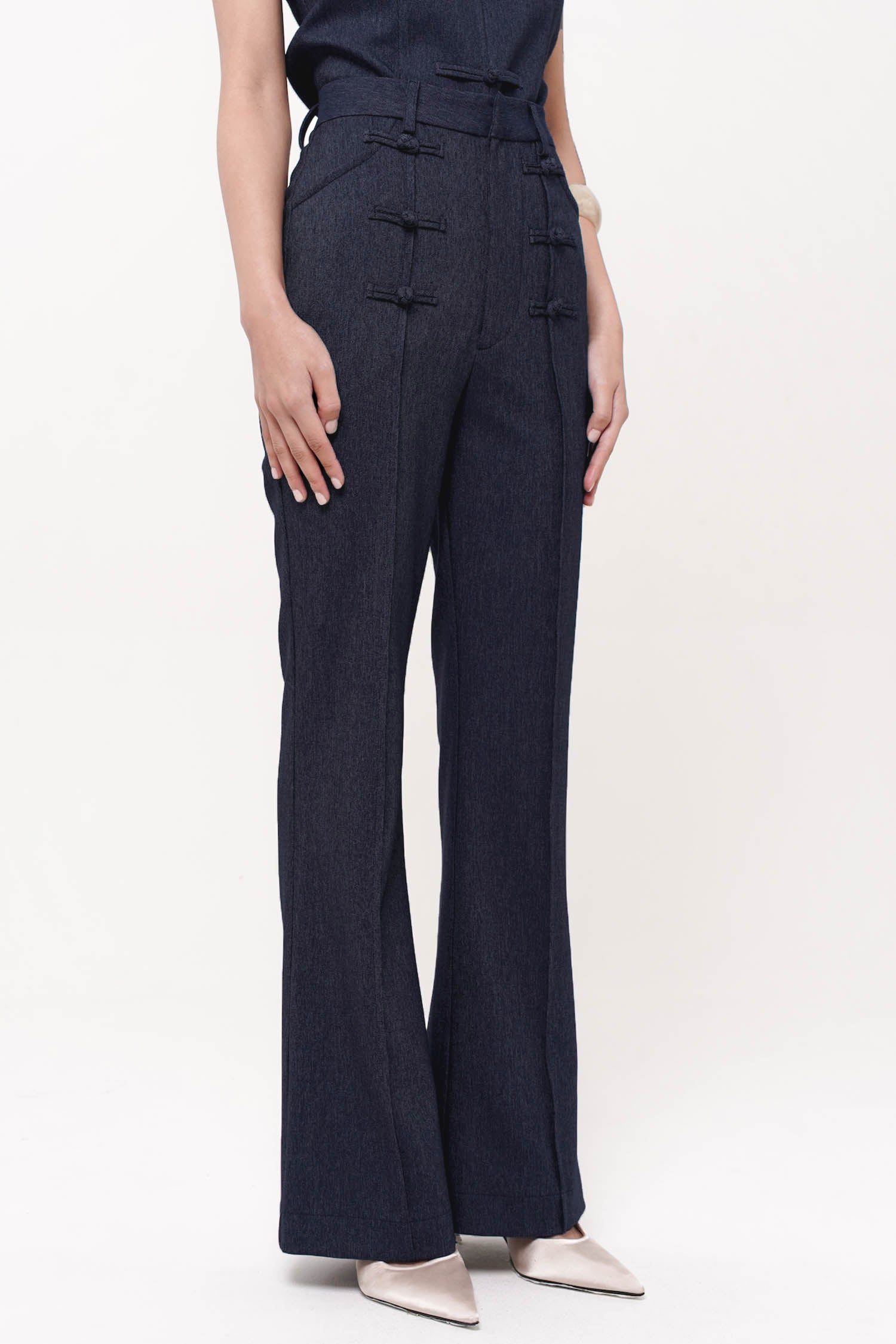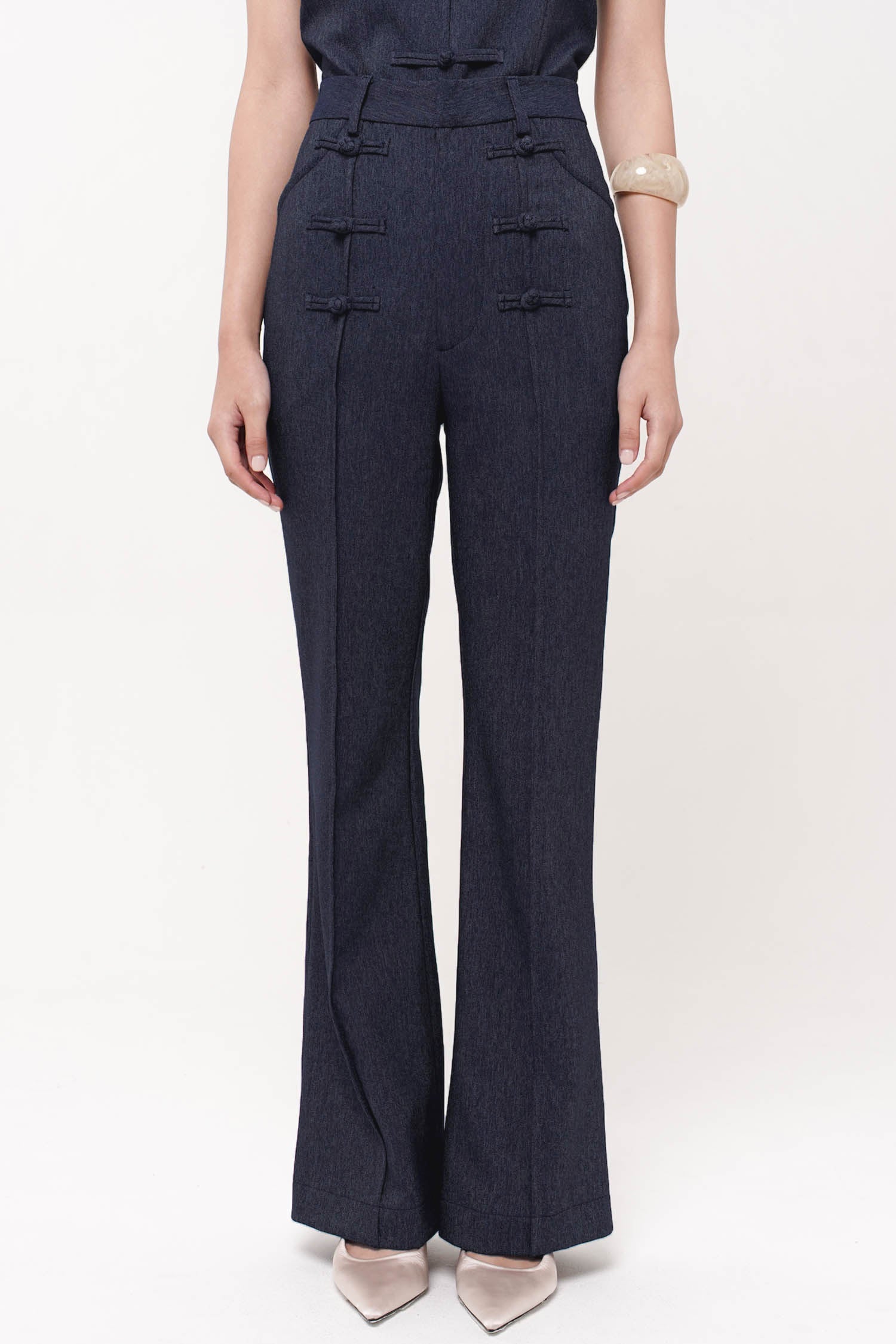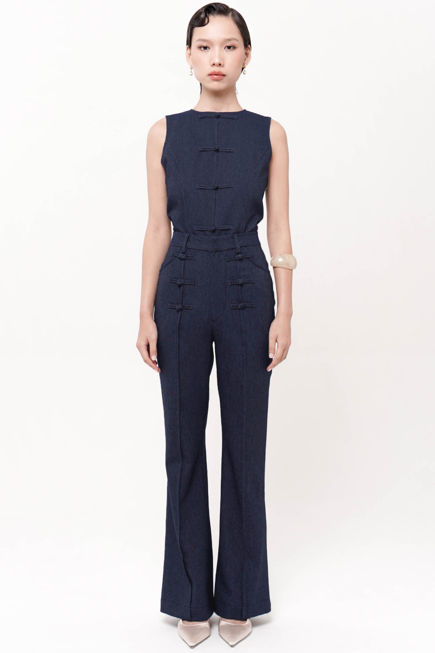 The Jiang Pants in Denim are designed with a sleek, elongated silhouette that embodies understated sophistication. Crafted from quality denim, the high-waisted cut and clean lines flatter the figure while offering structure and comfort in equal measure. Thoughtful detailing and a refined finish allow the pants to transition seamlessly from day to evening, pairing effortlessly with the Jiang Vest or other tailored tops for a confident, contemporary look rooted in timeless elegance.