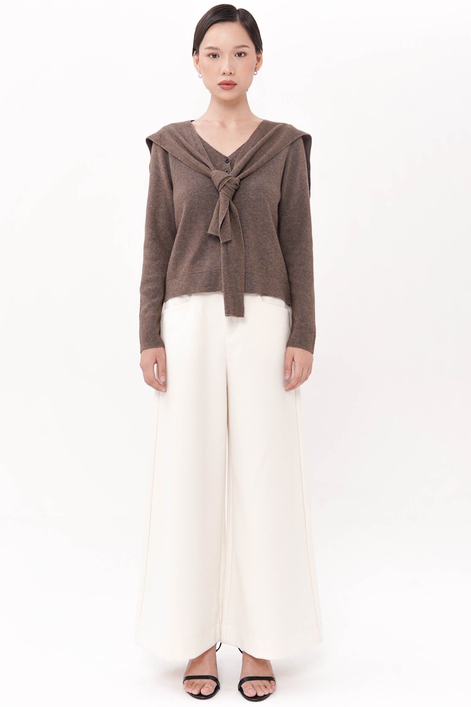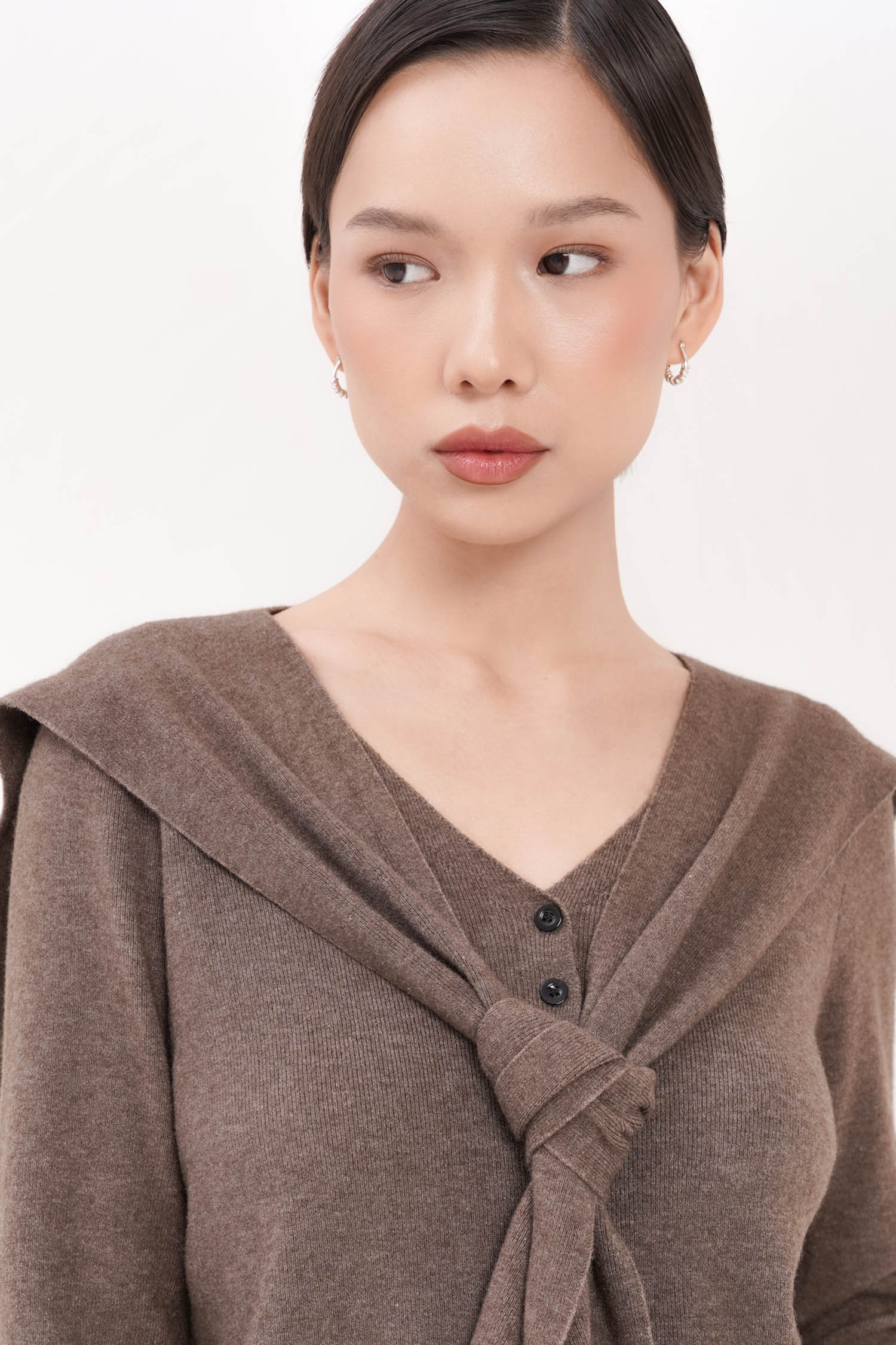 The Kobi Long Sleeve Top offers a refined interplay of texture and layering, crafted from soft polyester knit that delivers both comfort and elevated ease. Designed with a clean V-neckline and a gently relaxed silhouette, it features a detachable faux cardigan that drapes effortlessly over the shoulders, adding dimension and a polished layered effect without the weight of additional pieces. Thoughtful button detailing along the front enriches the minimalist design, making the top versatile for transitional styling—from relaxed sophistication in daily wear to subtly elevated evening looks. Available in Brown and Dark Grey, the Kobi Long Sleeve Top embodies modern elegance with a touch of inventive charm.