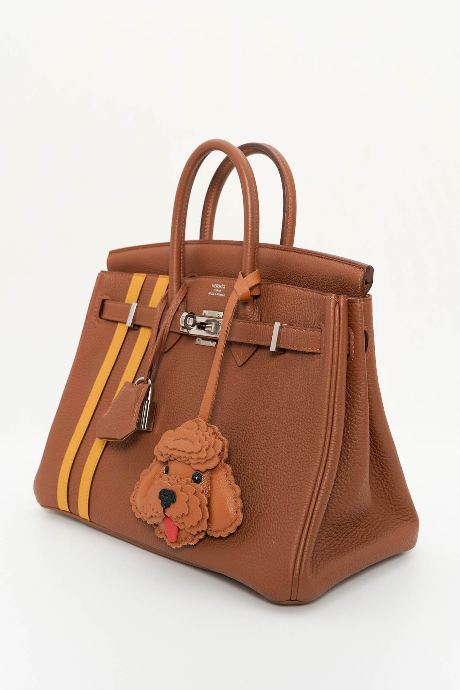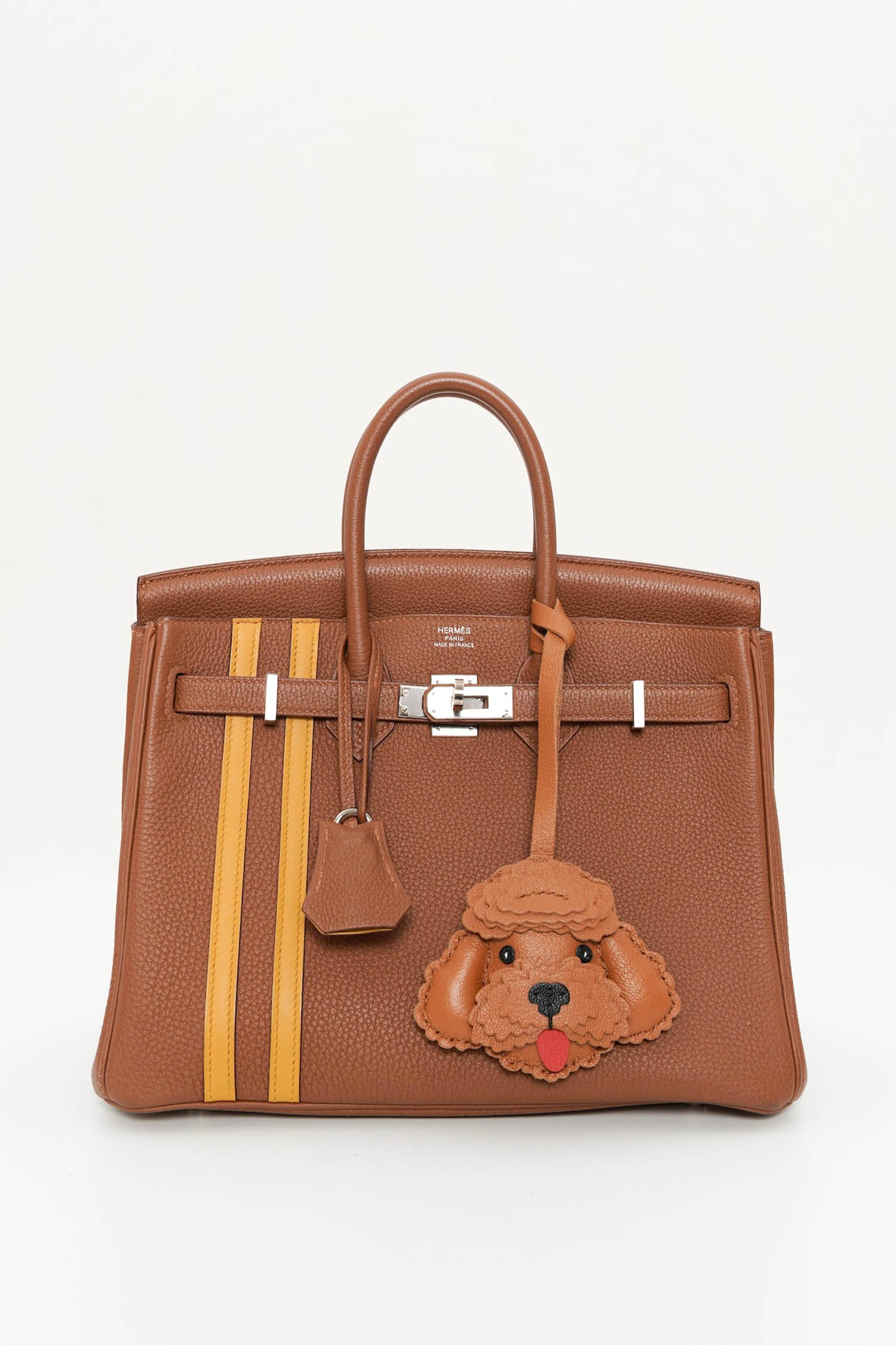 Celebrate classic elegance with a hint of Parisian flair in the Le Fleur Poodle Leather Bag Charm. Featuring intricate detailing and soft layering that mimics the poodle's signature curls, this piece is carefully hand-cut from premium genuine leather. Available in White, Taupe, and Brown, it offers a luxurious and playful finish—whether adorning a tote, travel bag, or gifting to a canine enthusiast.