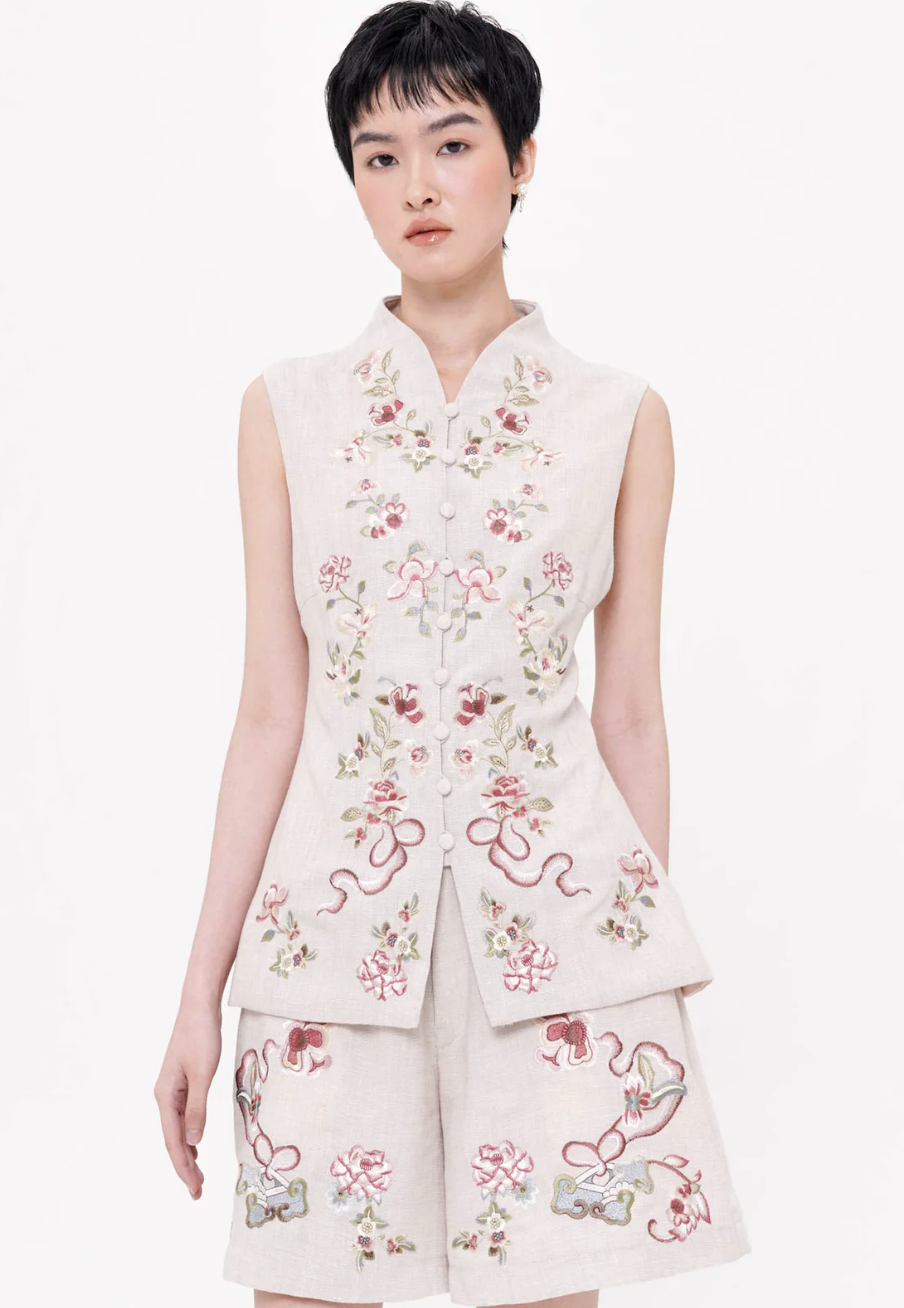 The Lian Embroidered Shorts bring a graceful softness to contemporary dressing, combining comfort with artisanal detail. Crafted from lightweight linen, the design features subtle floral embroidery along the hem, adding a touch of refined femininity to an otherwise clean and relaxed silhouette. The tailored shape and gentle volume create an effortless balance between structure and ease, making it ideal for both casual elegance and coordinated statement looks. Thoughtfully finished for comfort and wearability, these shorts offer a modern expression of heritage-inspired design. Available in Oat and Ash Brown.