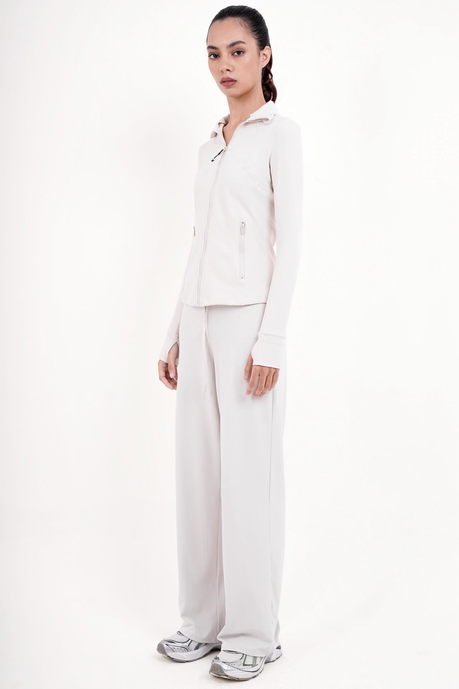 Functional Minimalist Details : Full front zipper, secure zip pockets, and thumbhole cuffs provide convenience and a clean, modern finish.